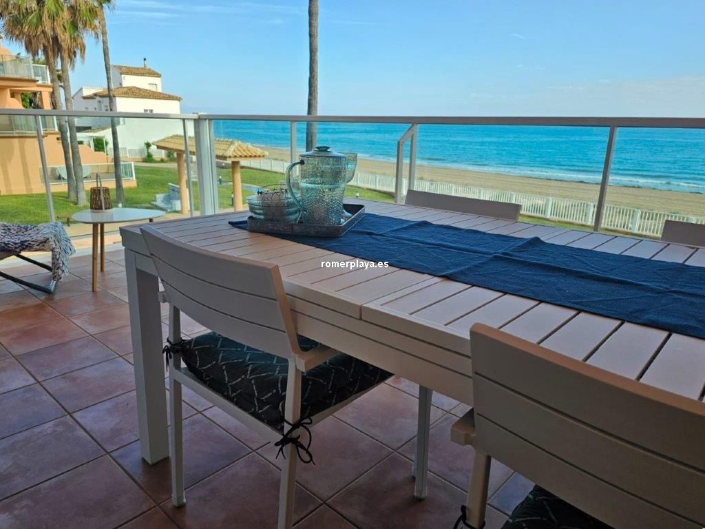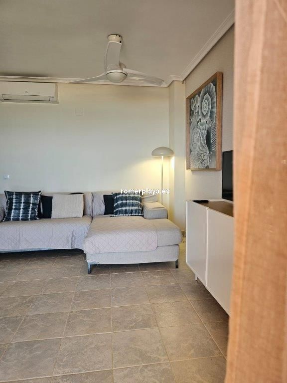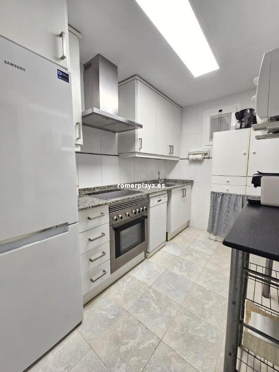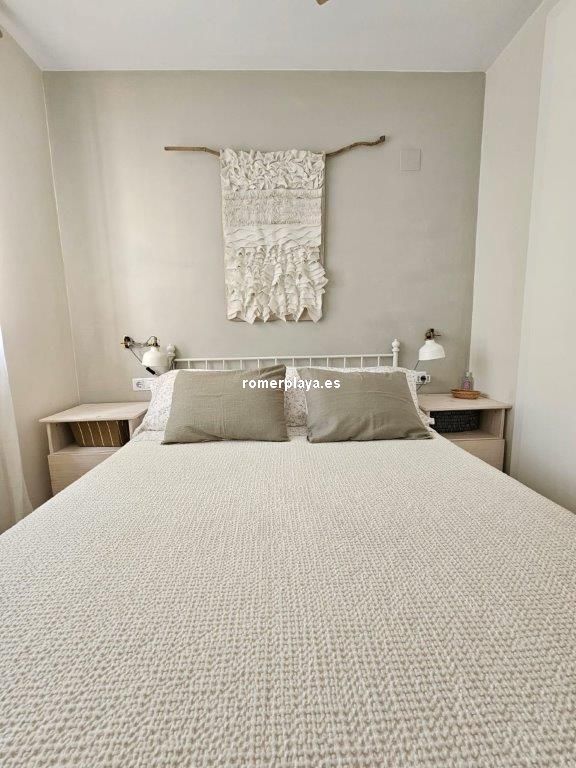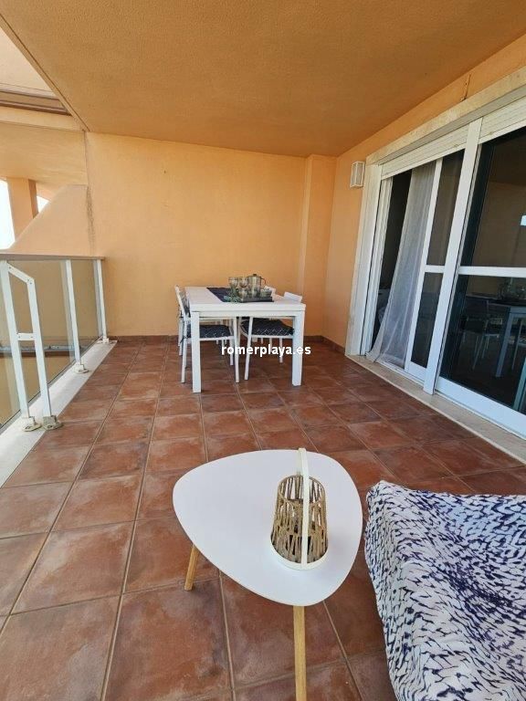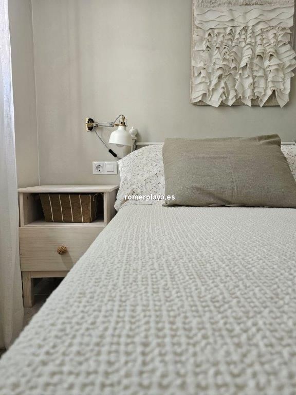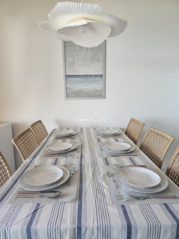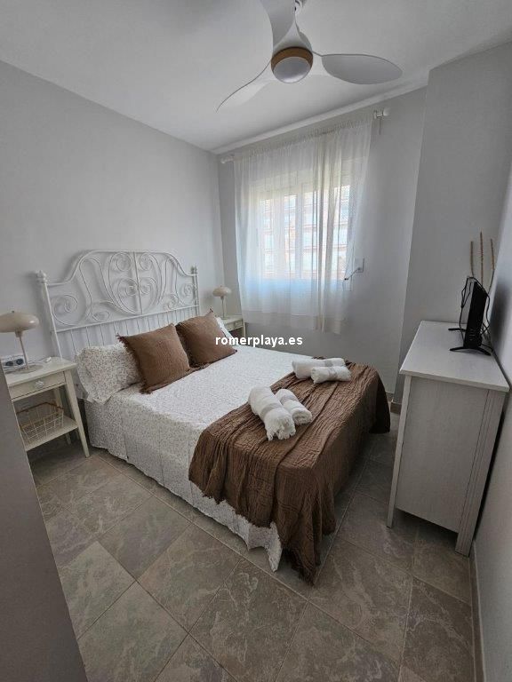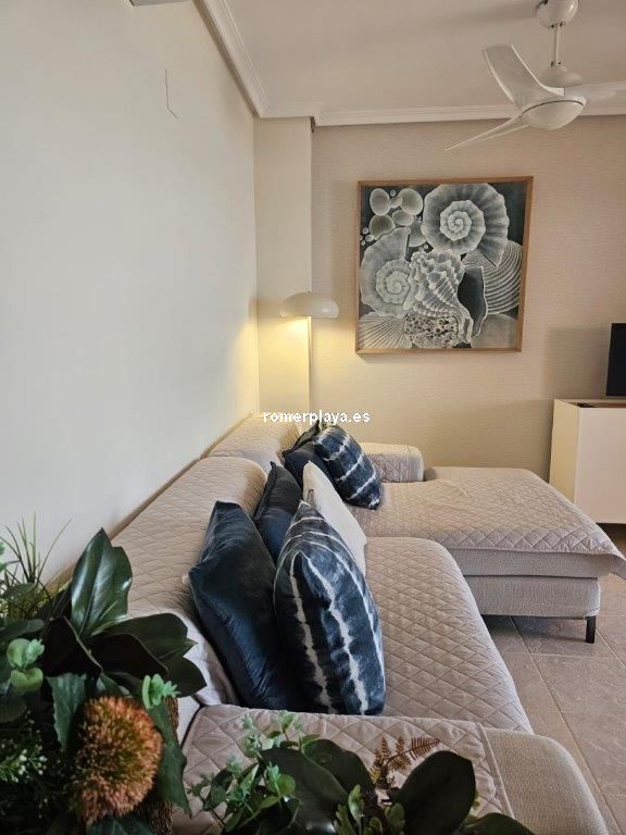 Apartamento en 1ª planta de 3 dormitorios 2 baños con vistas frontales al mar. Completamente equipado, cocina independiente con galería, plaza de garaje incluida. Ascensor , aire acondicionado frio calor.