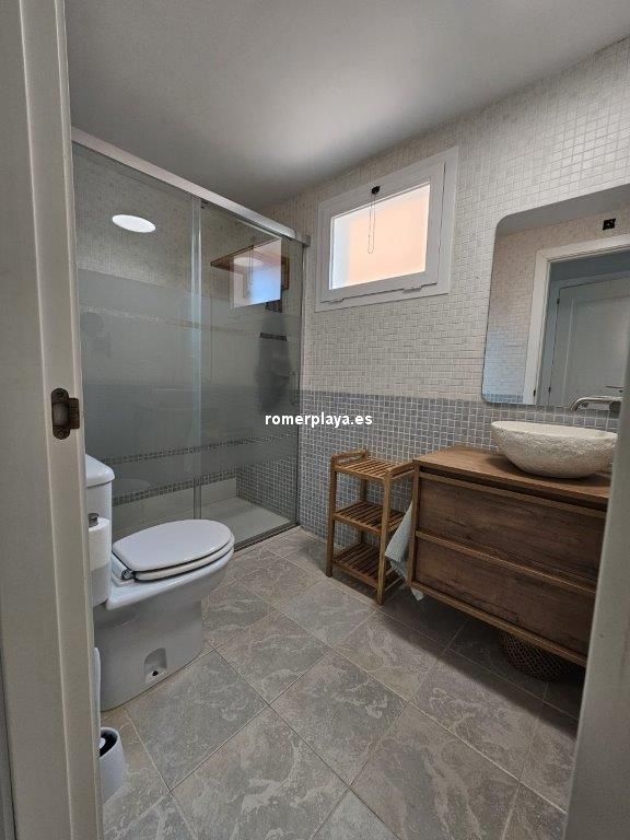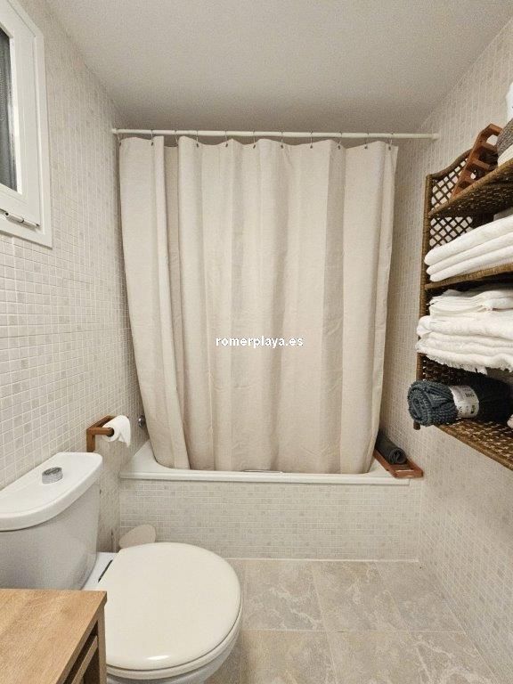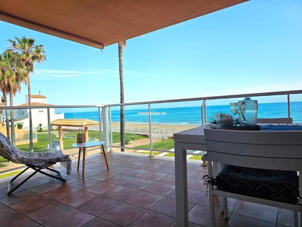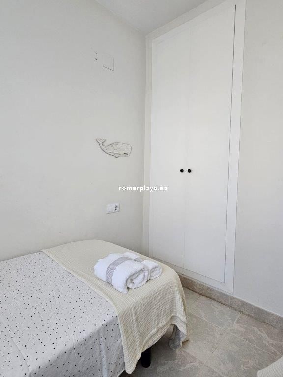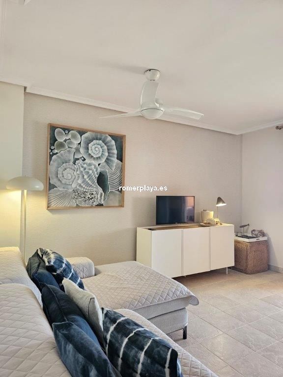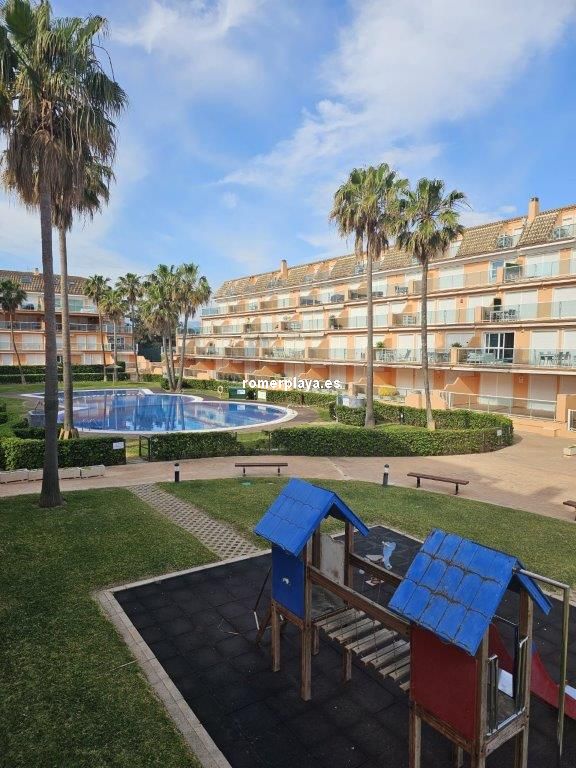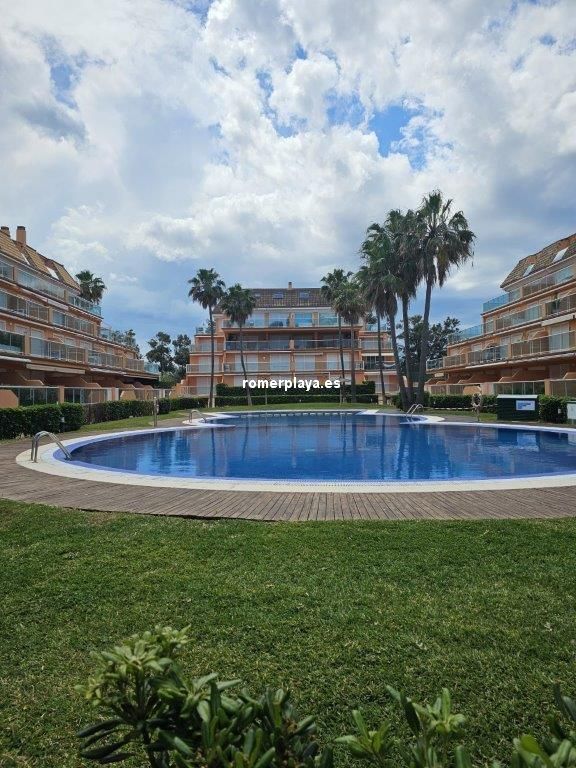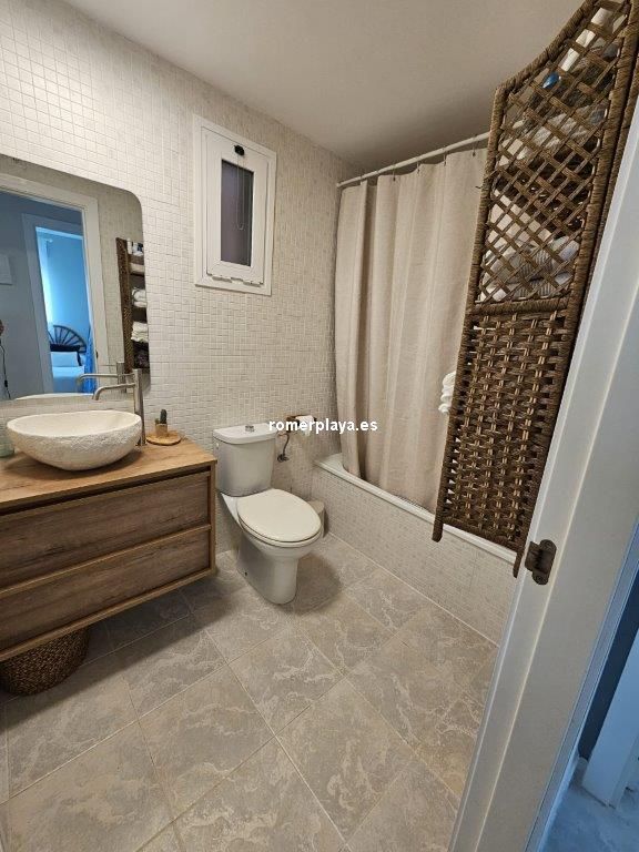 Apartamento en 1ª planta de 3 dormitorios 2 baños con vistas frontales al mar. Completamente equipado, cocina independiente con galería, plaza de garaje incluida. Ascensor , aire acondicionado frio calor.