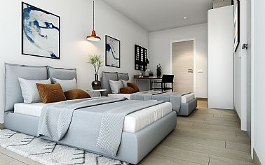 Adosado de nueva construcción en dos plantas con 3 dormitorios dobles, 2 baños, aseo, cocina abierta con lavadero, salón comedor, porche, terraza y solarium.