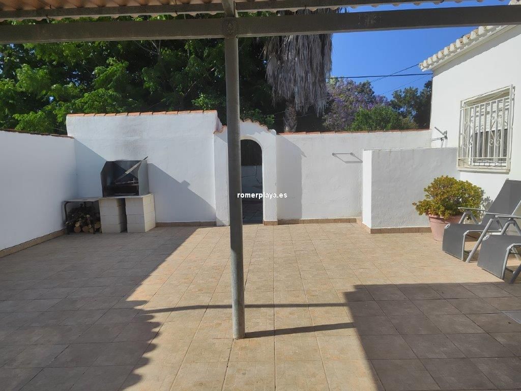 Vivienda adosada en km5,5 de las marinas a 300 metros de la playa, una playa de arena en la que encontramos un chiringuito en el tiempo de verano, escuela de sur, restaurantes muy buenos y la parada de bus la tenemos a 500 metros, cerca tenemos farmacia y supermercado el consum, la vivienda tiene 90 metros y consta de 2 habitaciones con armarios empotrados, un baño completo, cocina independiente y gran salón comedor con salida a porche y terreno de 325 metros, hay un lavadero, trastero , hay ducha exterior con agua caliente, la vivienda necesita reforma según la necesidad del comprador, en el terreno hay un pozo, y también hay aparcamiento.Semi-detached house located 5.5 km from Las Marinas, 300 metres from the beach, a sandy beach where you will find a beach bar in summer, a surf school, excellent restaurants and a bus stop 500 metres away. There is a pharmacy and a Consum supermarket nearby. The house is 90 square metres and consists of 2 bedrooms with built-in wardrobes, a full bathroom, separate kitchen and large living/dining room with access to the porch and 325 m² of land. There is a laundry room, storage room and outdoor shower with hot water. The property needs renovating according to the buyer's requirements. There is a well on the land and parking is also available.