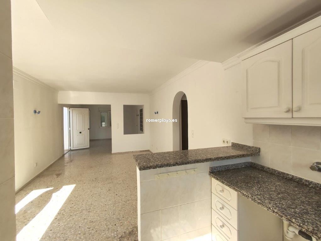En una sola planta dispone de 3 dormitorios con armarios empotrados, salon comedor con cocina americana y un baño.