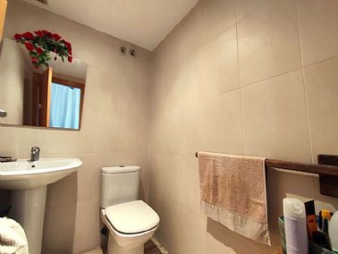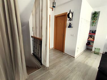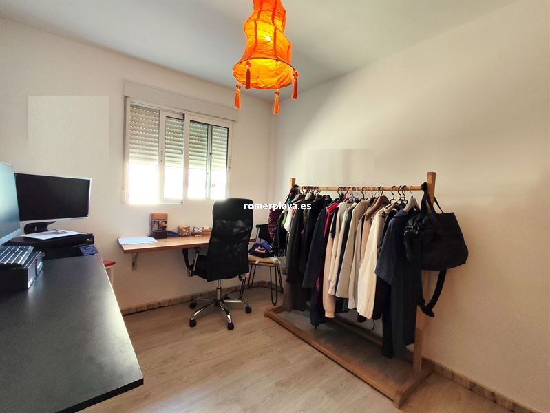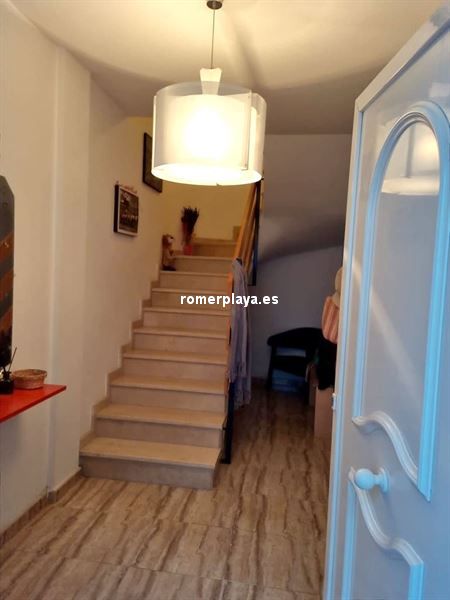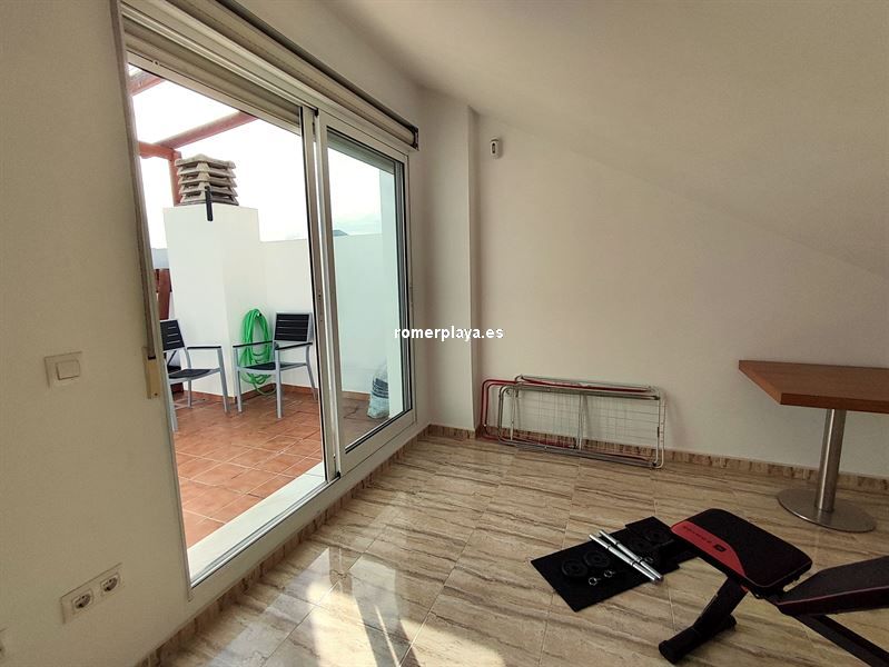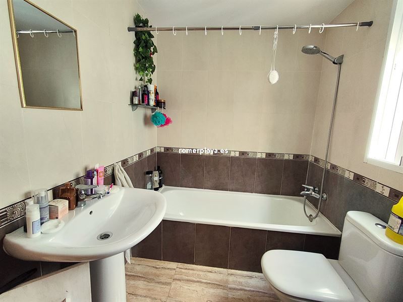 Amplio adosado unifamiliar. Planta baja con recibidor , garaje con puerta automática para dos coches, espacio a la esquina para guardar cosas. Primera planta con salón comedor , cocina con galería y un aseo. Segunda planta con tres dormitorios y dos baños . Dormitorio de matrimonio en suite. Tercera planta con buhardilla ( convertible en un dormitorio, oficina o sala de juegos) , con salida a la terraza que hace esquina y tiene algo de vista al mar.