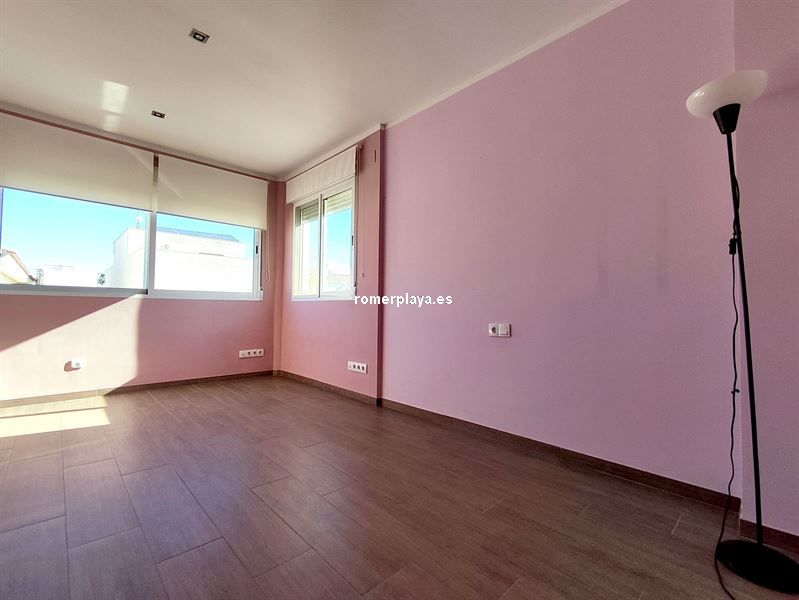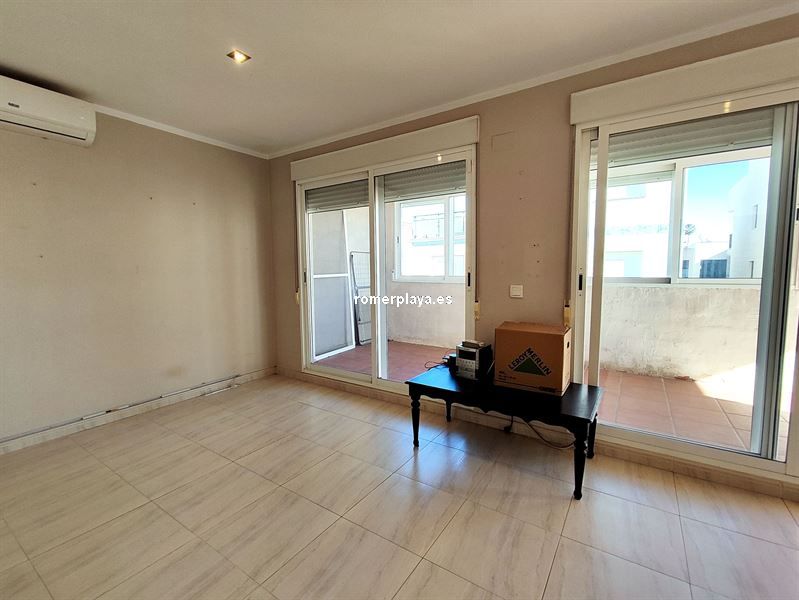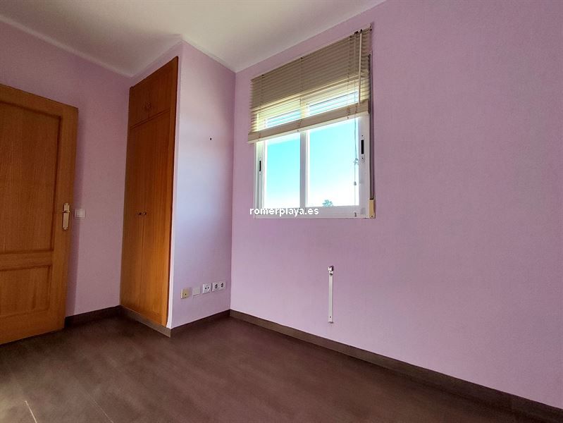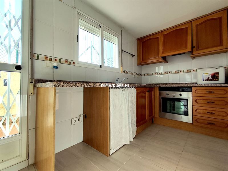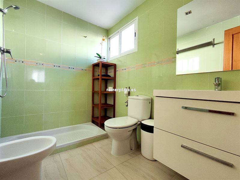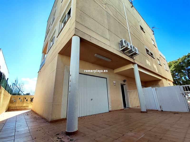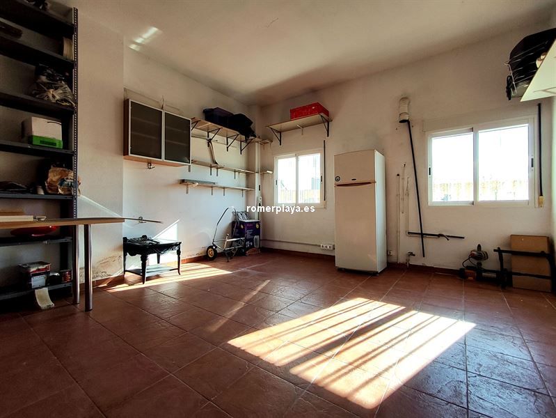 Amplio chalet pareado en playa de Miramar, tan salo 300 metros de arena blanca. Vivienda de 206 m² de tres plantas y ascensor. Planta baja con amplio garaje de 27 m2 , baño con plato de ducha, cocina de verano con salida a la terraza-patio, que rodea toda vivienda apr. 80 m2. Primera planta con amplio salón- comedor con salida a la terraza de unos 16 m2, gran cocina equipada y un baño completo. Salón –comedor dispone aire acondicionado con bomba de calor. Segunda planta con tres dormitorios , dos de ellos dobles y dos baños grandes. Dormitorio principal con baño en suite, aire acondicionado y vestidor. Armarios empotrados en dormitorios. Se vende tal cual se ve en las fotos. En la azotea terraza pisable con puerta de entrada.