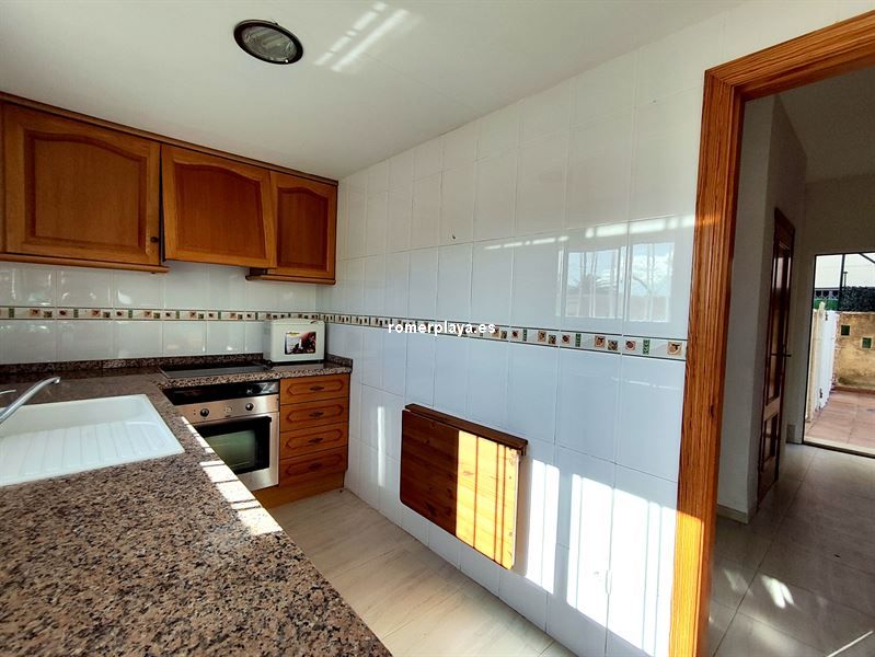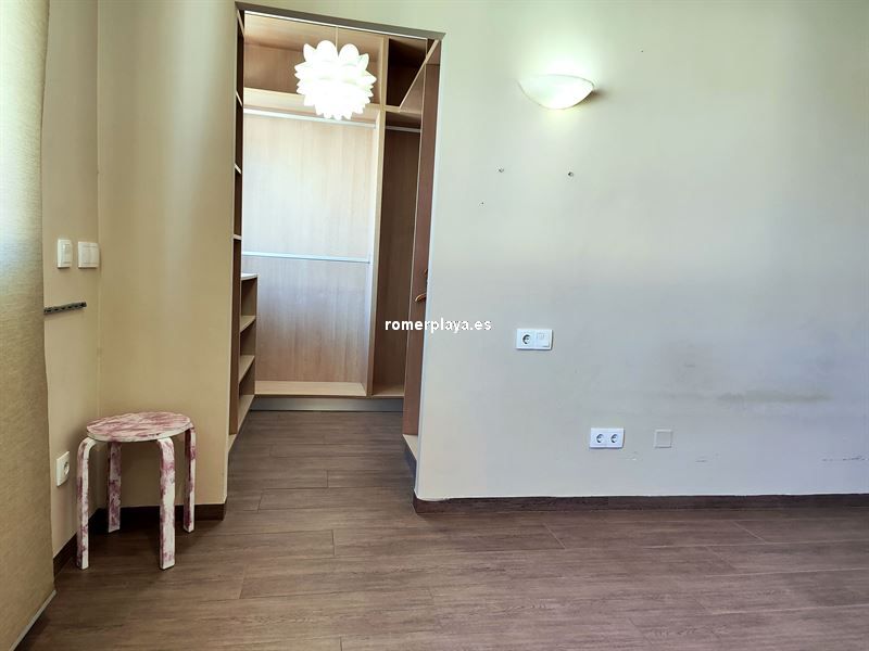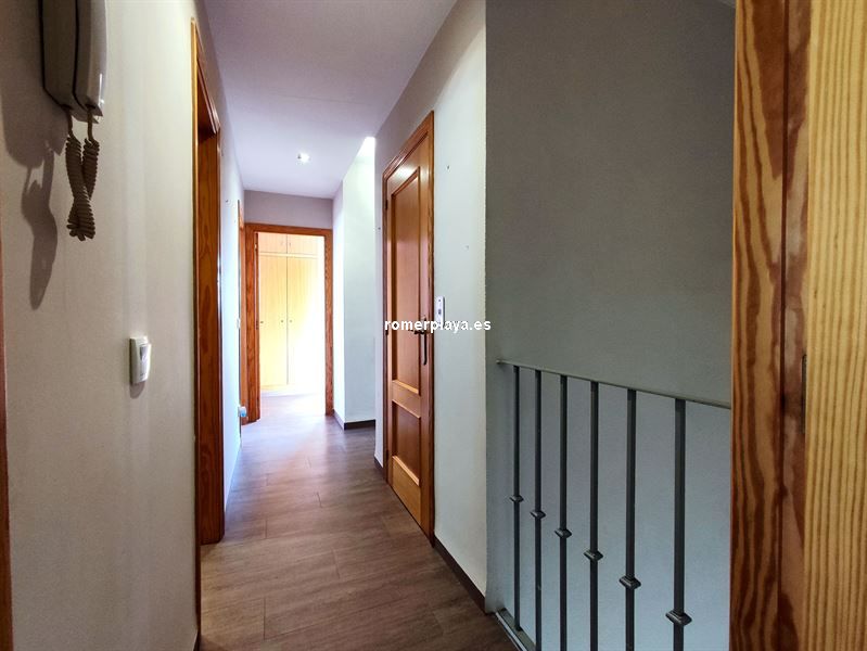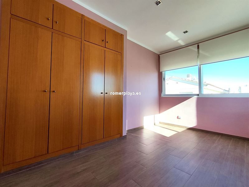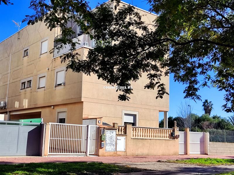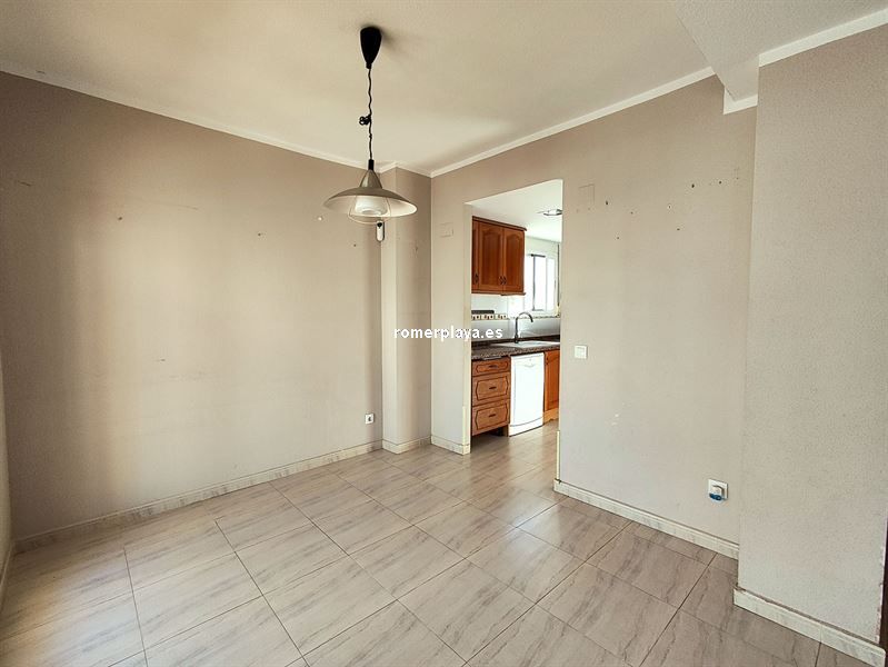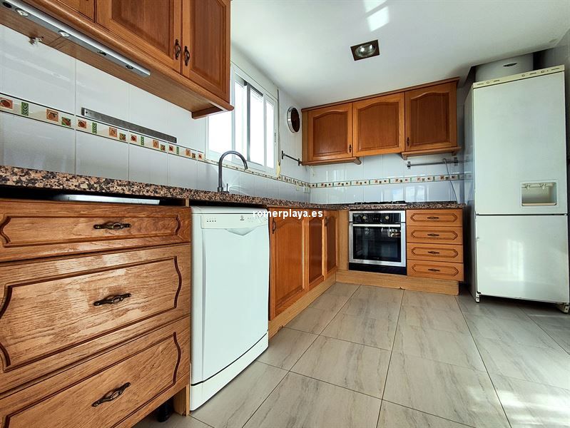Amplio chalet pareado en playa de Miramar, tan salo 300 metros de arena blanca. Vivienda de 206 m² de tres plantas y ascensor. Planta baja con amplio garaje de 27 m2 , baño con plato de ducha, cocina de verano con salida a la terraza-patio, que rodea toda vivienda apr. 80 m2. Primera planta con amplio salón- comedor con salida a la terraza de unos 16 m2, gran cocina equipada y un baño completo. Salón –comedor dispone aire acondicionado con bomba de calor. Segunda planta con tres dormitorios , dos de ellos dobles y dos baños grandes. Dormitorio principal con baño en suite, aire acondicionado y vestidor. Armarios empotrados en dormitorios. Se vende tal cual se ve en las fotos. En la azotea terraza pisable con puerta de entrada.