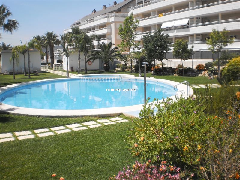 Urbanización con piscina, jardín, zona infantil, 2 pistas de pádel y servicio de conserjería, a 100m de la playa, a un paso del pueblo.