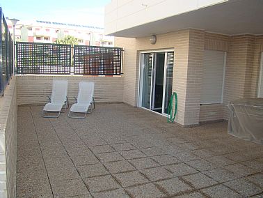 Apartamento en planta baja distribuido en 3 habitaciones, 2 baños completos (uno con plato de ducha), cocina independiente equipada, salón comedor y terraza 50m.