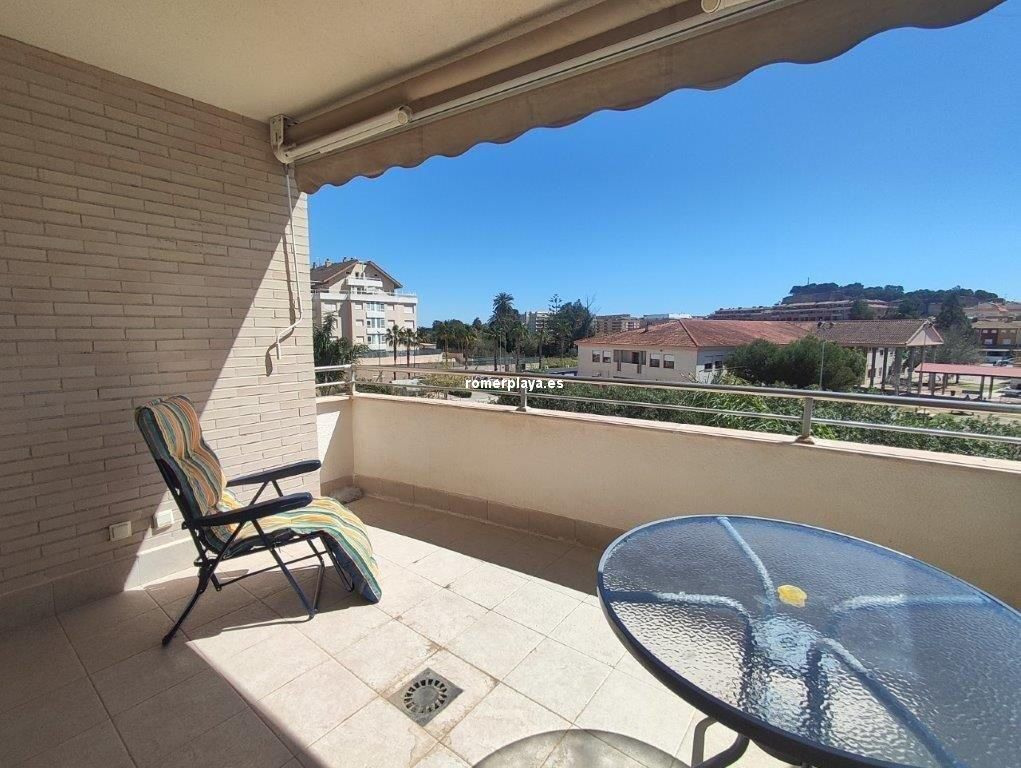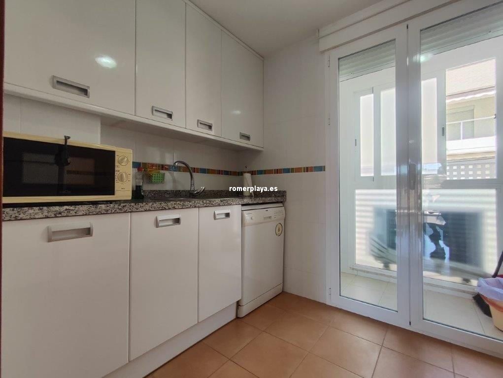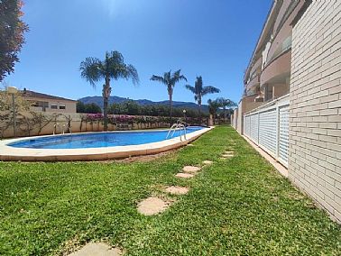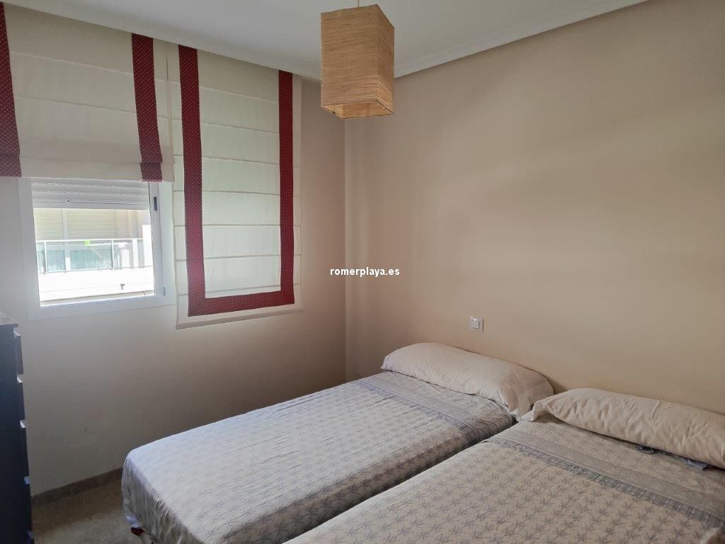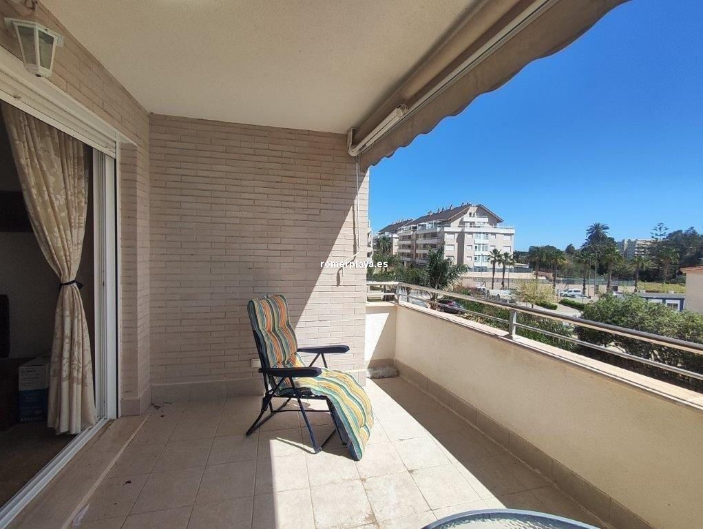 En el Km 1 de las Marinas, a un paso del pueblo y de la playa, tenemos esta urbanización a con todo tipo de servicios, supermercados, cafeterías, restaurantes, y una zona de playa donde puede alquilar las tumbonas, para disfrutar de un día de playa. En la misma zona de playa hay un chiringuito y zona infantil de juegos acuáticos. Es una urbanización no muy grande y muy tranquila, con pocos vecinos, el jardín es mediterráneo muy cuidado y disponen de piscina de niños y adultos. Es una planta segunda, con ascensor, la vivienda muy bien mantenida y con poco uso, tiene unos 75 metros distribuidos en dos dormitorios dobles, armarios empotrados y dos baños, uno de ellos en suit, cocina independiente completamente equipada (lavavajillas, nevera, horno, vitrocerámica, etc) , galería acristalada con la lavadora, y un salón comedor con salida a una terraza desde donde tenemos vistas a las zonas comunes, el Montgo y el Castillo de Denia. Con una fabulosa orientación de sol de mañana (este). Y se vende parcialmente amueblado Junto con la vivienda se vende una plaza de garaje subterránea para un vehículo.
