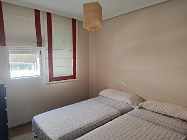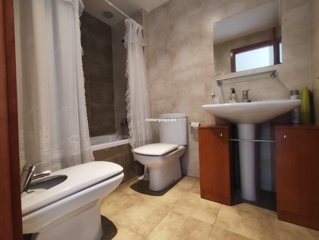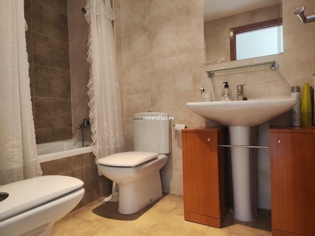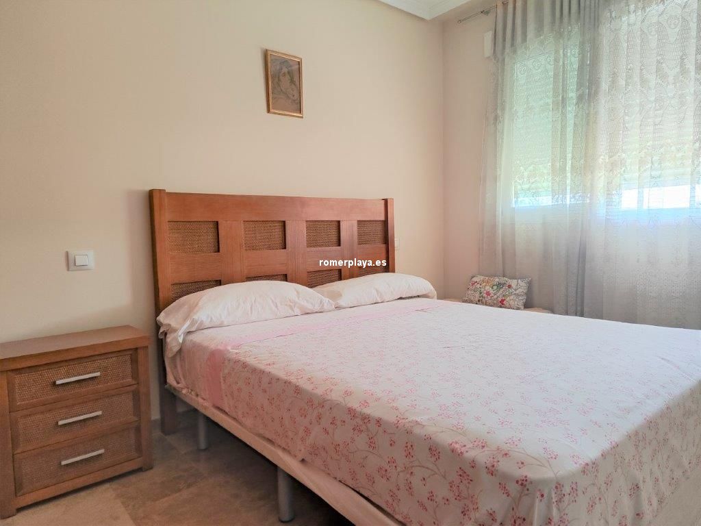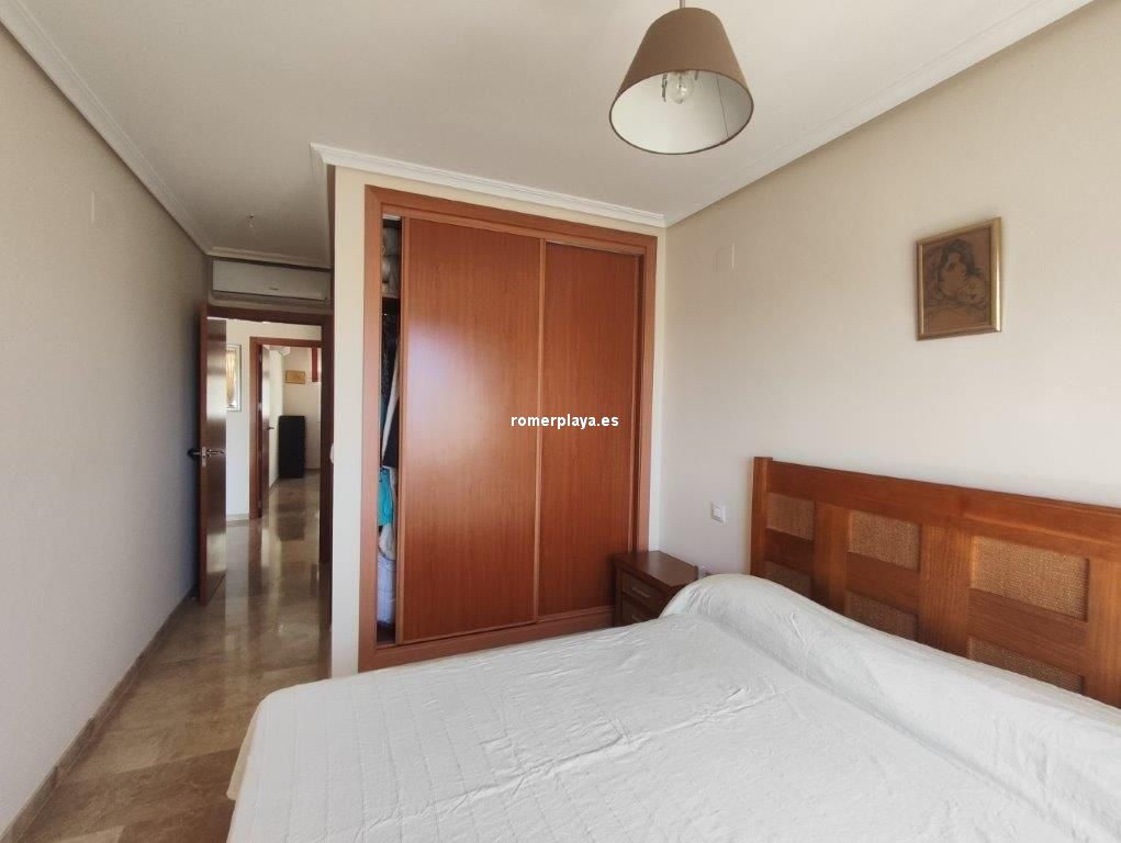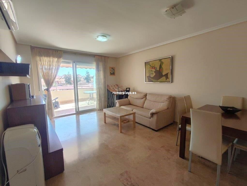 En el Km 1 de las Marinas, a un paso del pueblo y de la playa, tenemos esta urbanización a con todo tipo de servicios, supermercados, cafeterías, restaurantes, y una zona de playa donde puede alquilar las tumbonas, para disfrutar de un día de playa. En la misma zona de playa hay un chiringuito y zona infantil de juegos acuáticos. Es una urbanización no muy grande y muy tranquila, con pocos vecinos, el jardín es mediterráneo muy cuidado y disponen de piscina de niños y adultos. Es una planta segunda, con ascensor, la vivienda muy bien mantenida y con poco uso, tiene unos 75 metros distribuidos en dos dormitorios dobles, armarios empotrados y dos baños, uno de ellos en suit, cocina independiente completamente equipada (lavavajillas, nevera, horno, vitrocerámica, etc) , galería acristalada con la lavadora, y un salón comedor con salida a una terraza desde donde tenemos vistas a las zonas comunes, el Montgo y el Castillo de Denia. Con una fabulosa orientación de sol de mañana (este). Y se vende parcialmente amueblado Junto con la vivienda se vende una plaza de garaje subterránea para un vehículo.