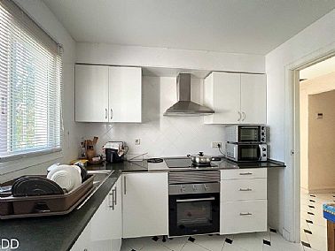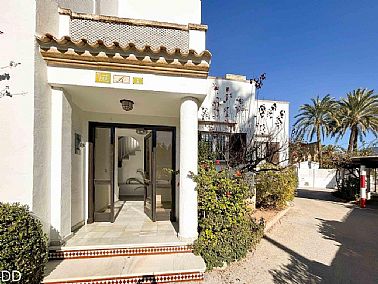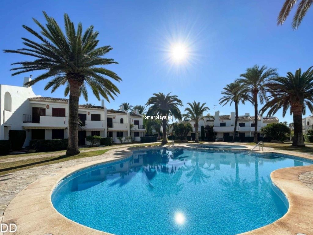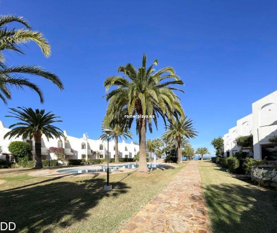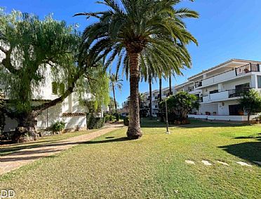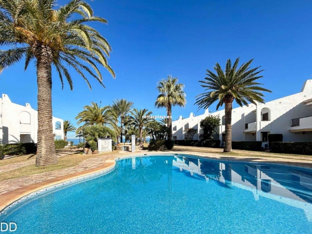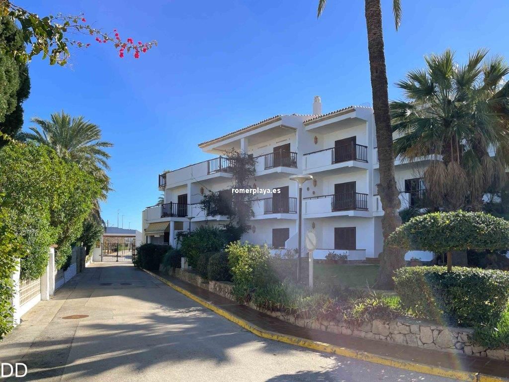 APARTAMENTO en 1-a LINEA DE LA PLAYA DE ARENA. Excelente oportunidad de tener una casa en Denia frente al mar y a tan solo 1 km del centro de Denia. La vivienda está situada en planta baja elevada en el bloque de dos alturas en una de las mejores urbanizaciónes en esta zona de Las Marinas con salida directa a la playa de arena, con jardín y piscina comunitaria, al lado de todos los servicios, así como el supermercado, los restaurantes, peluquería, el Parque municipal con fuentes, zona deportiva con pista de patinaje, parque infantil, el cine de verano etc.. La parada de autobús está en pocos metros de la urbanización, se puede ir andando a todos los sitios, en escasos 25 min llegará al centro de pueblo y al Mercado Múnicipal. La casa esta distribuida en una sola planta, entrando encontramos un recibidor con armario empotrado, el salon comedor es muy amplio, tiene salida a la terraza de la cual podemos acceder a la zona comunitaria, la cocina es cerrada con su galería - lavadero, los tres dormitorios son dobles, un baño con ducha y otro con bañera, dispone de armarios empotrados, aire acondicionado por conductos frio-calor, toldo en la terraza, ventanas de climalit con mallorquinas de aluminio, las puertas lacadas en blanco, es un casa hecha a conciencia, con mucha luz por ser esquinera, familiar y acogedora. Esta en perfecto estado de conservación, recientemente refirmada la cocina, un baño, las ventanas y la puerta principal. La vivienda no está afectada por Ley de Costas.