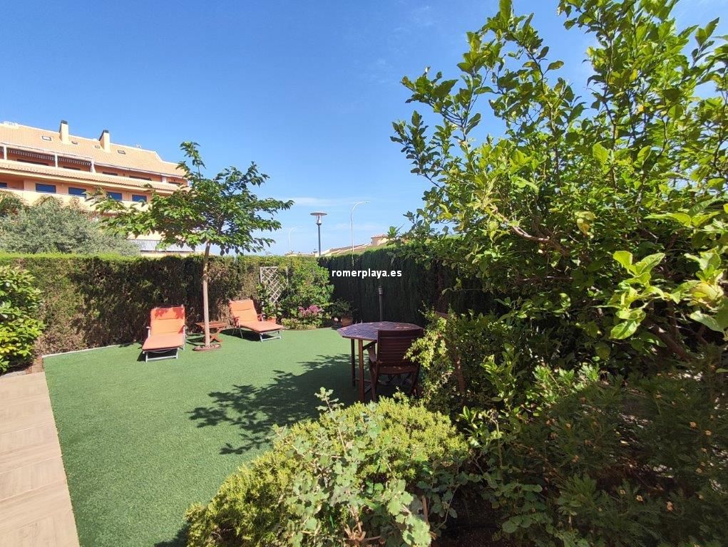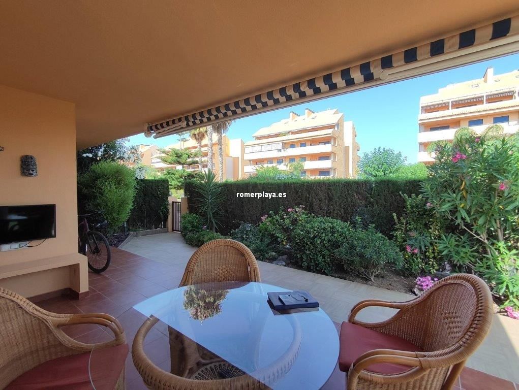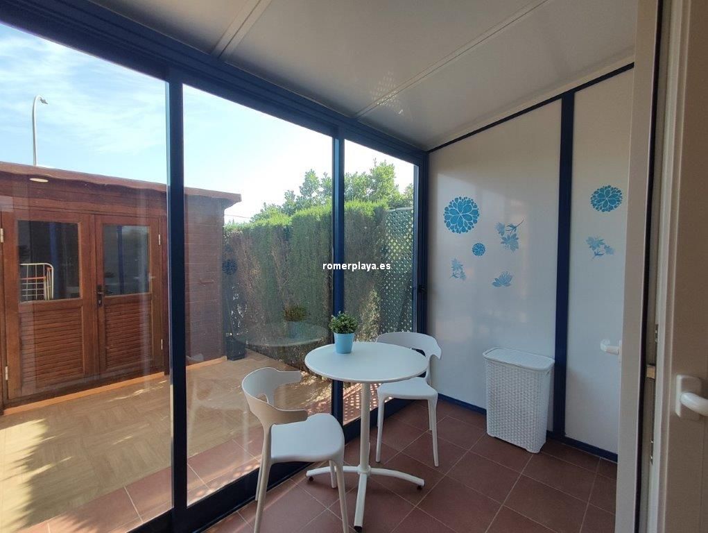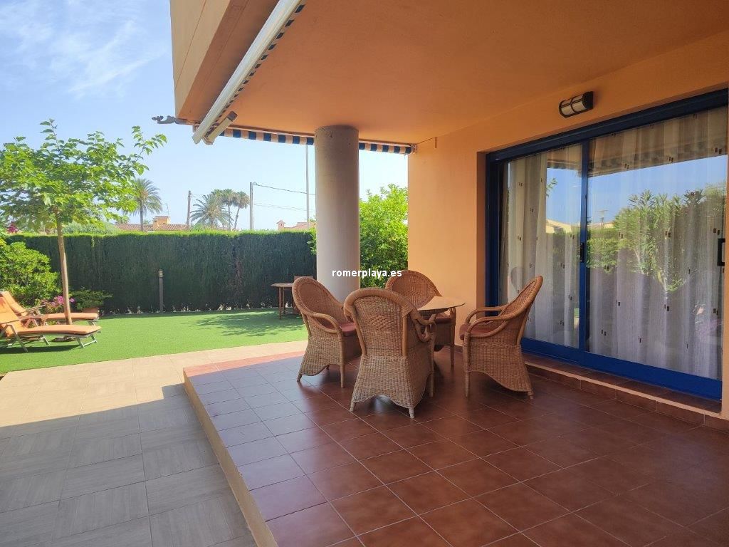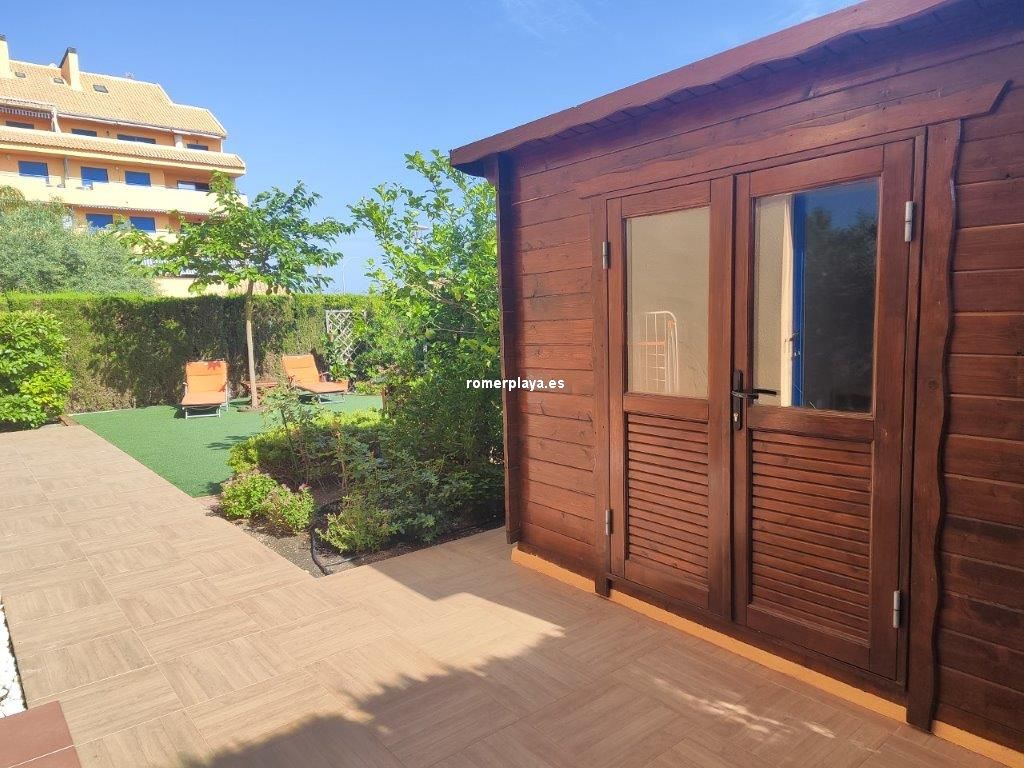 Vivienda en planta baja reformada con jardín privado, a 500 metros de la playa y 1,5 km de Dénia Te presentamos esta estupenda vivienda de planta baja, construida en 2003 y recientemente reformada, ubicada en una urbanización completa y bien cuidada. La vivienda ofrece comodidad, funcionalidad y una excelente ubicación cerca del mar y del centro de Dénia. Distribución y características principales: 2 habitaciones dobles con armarios empotrados, ventiladores de techo y aire acondicionado frío/calor. 2 baños completos: uno en suite y otro de cortesía, ambos con ducha. Cocina independiente con galería anexa. Amplio salón-comedor con salida a un gran porche orientado al oeste, equipado con toldo eléctrico. Porche adicional orientado al norte. Terraza acristalada con acceso directo al jardín privado. Parcela de 200 m², con zonas diferenciadas: césped artificial, suelo de baldosa y jardín con plantas y árboles frutales. Caseta de madera ideal para almacenaje de mobiliario exterior, bicicletas, etc. Persianas eléctricas en el comedor. Urbanización con excelentes servicios: Conserje 24 horas. 2 piscinas comunitarias con baños y duchas. Zonas ajardinadas extensas con árboles y bancos. Zona para bicicletas. Ubicación privilegiada: A tan solo 500 metros de la playa, con acceso a playa de arena fina y aguas cristalinas, ideal para paseos junto al mar. A 1,5 km del centro de Dénia, con todos los servicios a tu alcance. Una propiedad ideal para vivir todo el año o disfrutar como residencia vacacional. ¡Lista para entrar a vivir!