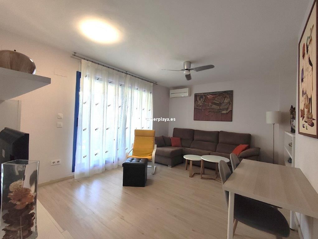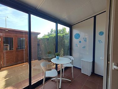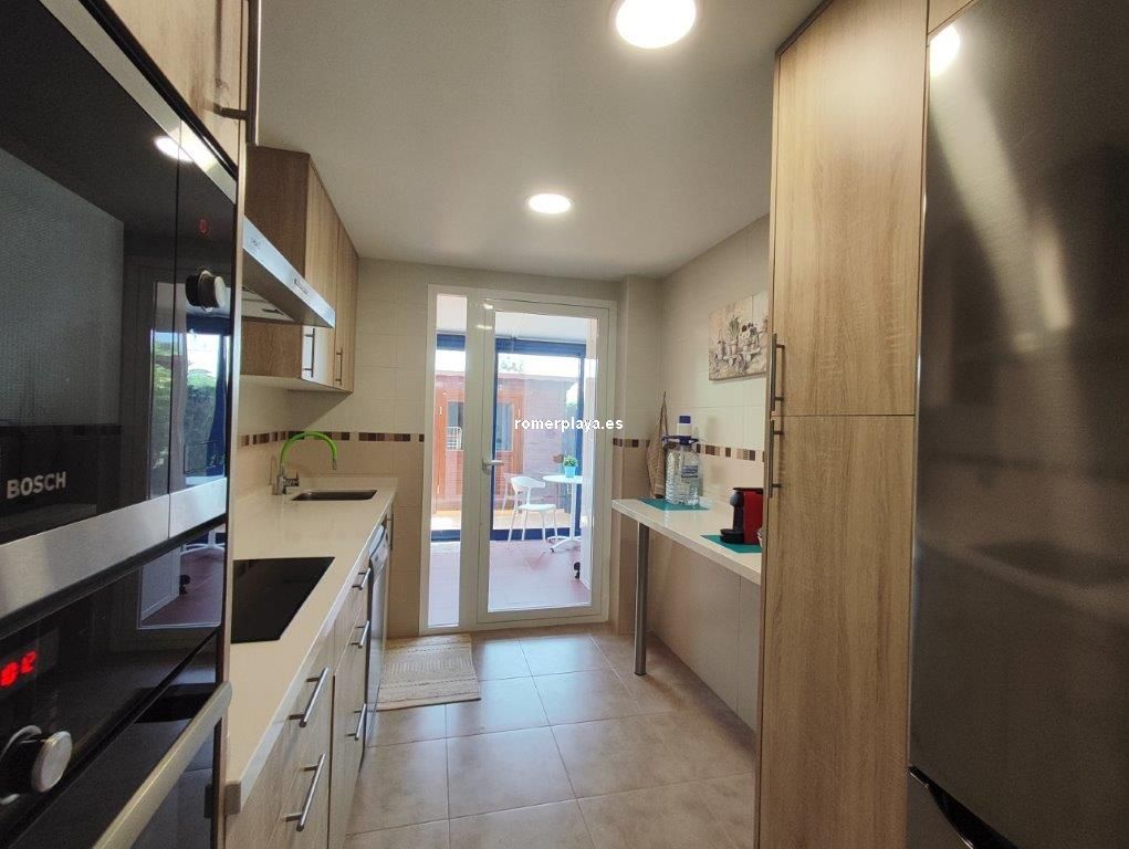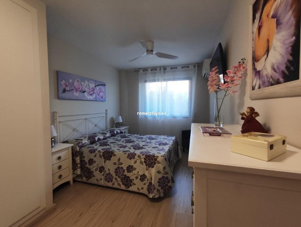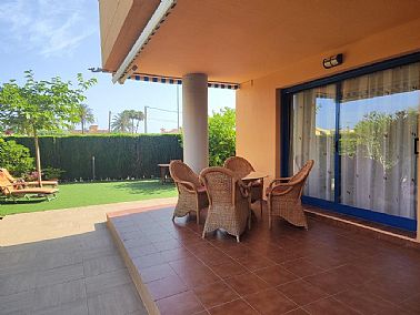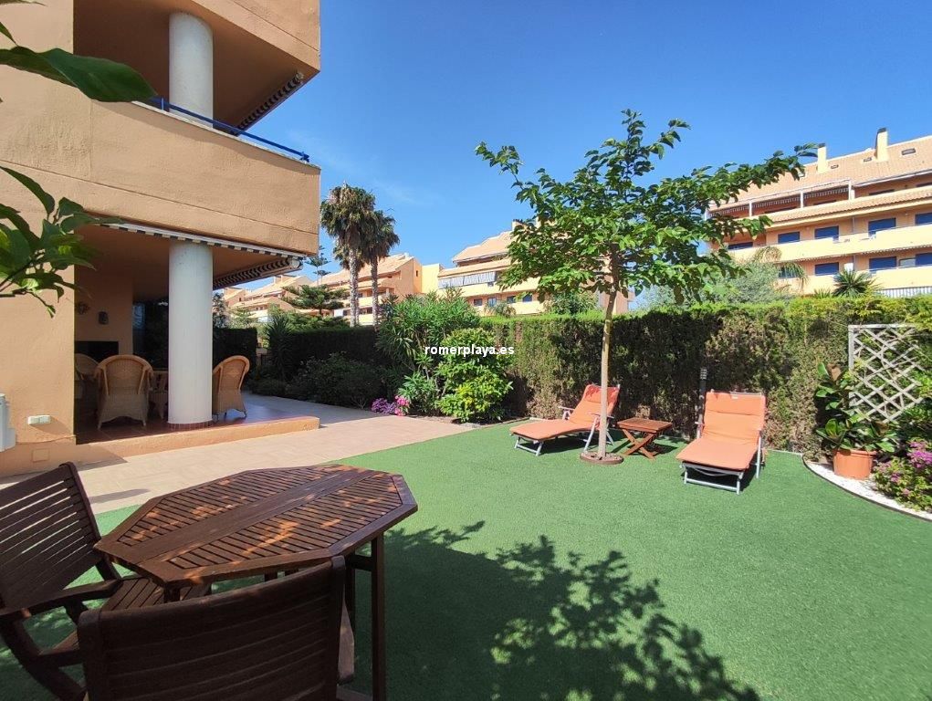 Vivienda en planta baja reformada con jardín privado, a 500 metros de la playa y 1,5 km de Dénia Te presentamos esta estupenda vivienda de planta baja, construida en 2003 y recientemente reformada, ubicada en una urbanización completa y bien cuidada. La vivienda ofrece comodidad, funcionalidad y una excelente ubicación cerca del mar y del centro de Dénia. Distribución y características principales: 2 habitaciones dobles con armarios empotrados, ventiladores de techo y aire acondicionado frío/calor. 2 baños completos: uno en suite y otro de cortesía, ambos con ducha. Cocina independiente con galería anexa. Amplio salón-comedor con salida a un gran porche orientado al oeste, equipado con toldo eléctrico. Porche adicional orientado al norte. Terraza acristalada con acceso directo al jardín privado. Parcela de 200 m², con zonas diferenciadas: césped artificial, suelo de baldosa y jardín con plantas y árboles frutales. Caseta de madera ideal para almacenaje de mobiliario exterior, bicicletas, etc. Persianas eléctricas en el comedor. Urbanización con excelentes servicios: Conserje 24 horas. 2 piscinas comunitarias con baños y duchas. Zonas ajardinadas extensas con árboles y bancos. Zona para bicicletas. Ubicación privilegiada: A tan solo 500 metros de la playa, con acceso a playa de arena fina y aguas cristalinas, ideal para paseos junto al mar. A 1,5 km del centro de Dénia, con todos los servicios a tu alcance. Una propiedad ideal para vivir todo el año o disfrutar como residencia vacacional. ¡Lista para entrar a vivir!