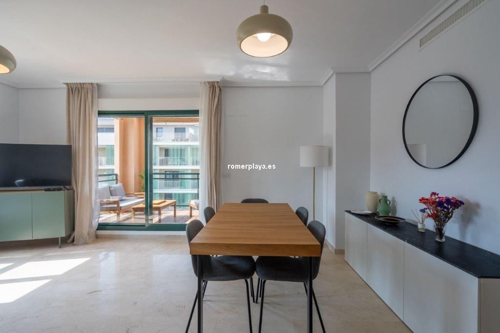 Apartamento con terraza soleada y vistas al Montgó en Denia Este luminoso apartamento de 100 m² se encuentra en la tercera planta de un exclusivo complejo residencial y destaca por su excelente ubicación y comodidad. Dispone de una soleada terraza de 9 m² orientada al sur, ideal para relajarse mientras se disfrutan de las vistas al Montgó, las piscinas y la tranquila calle cercana. Situado en una de las zonas más deseadas de Denia, la propiedad está a solo 200 metros de la playa, del puerto deportivo y del Club Náutico, y a un corto paseo del centro de la ciudad. Además, supermercados, farmacia y otros servicios se encuentran a menos de cinco minutos a pie. Los aeropuertos de Alicante y Valencia se hallan aproximadamente a 100 km, lo que garantiza un fácil acceso. En el interior, el apartamento ofrece un amplio y luminoso salón con acceso directo a la terraza, una cocina independiente totalmente equipada con lavadero, y tres dormitorios dobles con armarios empotrados. Uno de los dos baños es en suite. Entre sus comodidades destacan el sistema de aire acondicionado frío-calor por conductos , un trastero y una plaza de aparcamiento subterráneo, accesibles en ascensor. El complejo cuenta con cuidados jardines y dos piscinas comunitarias —una para adultos y otra para niños— que crean un entorno perfecto para disfrutar en familia. Gracias a su privilegiada ubicación y sus completas prestaciones, este apartamento representa una magnífica oportunidad para vivir el estilo de vida mediterráneo en Denia con la máxima comodidad.