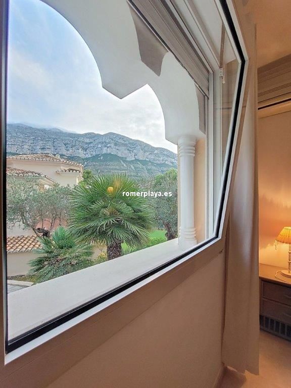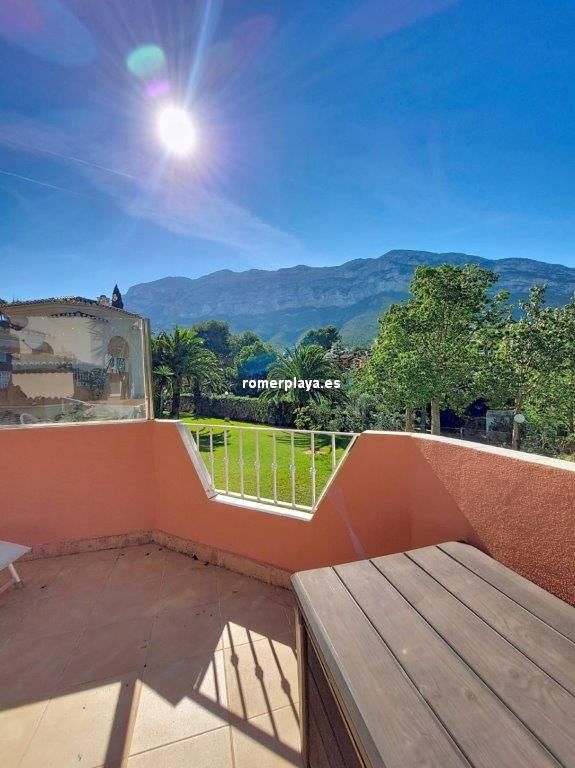 Situado en la cuidada urbanización La Medina, en la zona de Santa Lucía en el Montgó, este encantador chalet ofrece comodidad, vistas y tranquilidad en un entorno muy agradable. La vivienda cuenta con dos dormitorios con armarios empotrados y 2 baños completos, lo que garantiza privacidad y confort para sus ocupantes. Unos pocos escalones separan la zona de descanso de la zona de día, donde se encuentra una cocina cerrada y un salón-comedor muy luminoso que se abre a una bonita terraza con vistas al Montgó. Desde esta terraza se accede, por una escalera exterior, a un gran trastero situado bajo la terraza, perfecto para guardar bicicletas, equipamiento deportivo o todo aquello que no se usa a diario. Delante de la casa hay un espacio de aparcamiento con pérgola, que proporciona sombra durante los meses más cálidos. La vivienda dispone de aire acondicionado en el salón y cada dormitorio, además de persiana eléctrica en el ventanal de acceso a la terraza, toldo eléctrico y ventanas de tipo climalit con apertura oscilobatiente. En buen estado general, esta casa representa una excelente oportunidad para quienes buscan una vivienda cómoda, funcional y lista para entrar a vivir, tanto como residencia habitual como para disfrutar de Denia durante todo el año. Vivir en La Medina es hacerlo en una zona residencial tranquila y cuidada, con calles arboladas, un ambiente sereno y unas vistas preciosas al Montgó, todo ello a pocos minutos del centro de Denia, de sus playas y de todos los servicios.