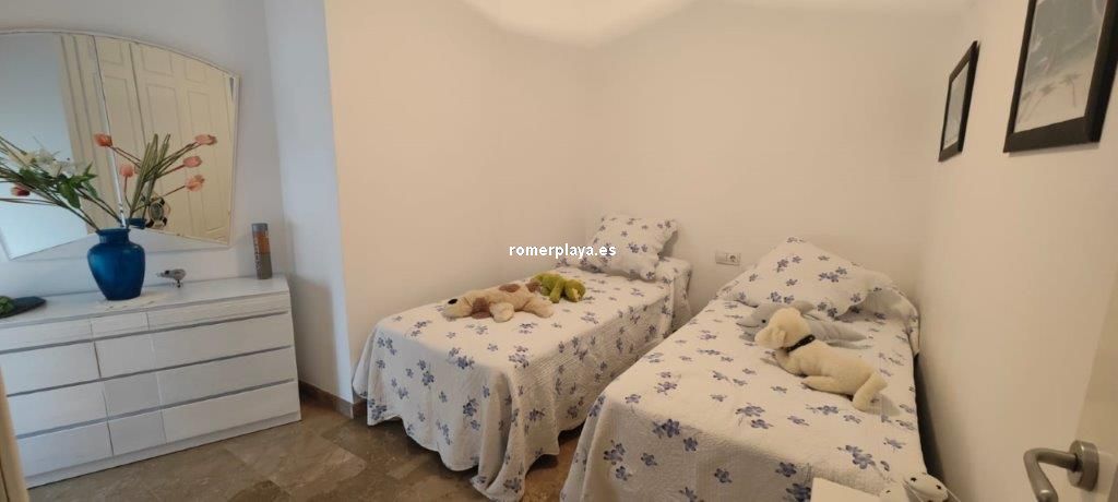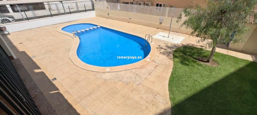 Apartamento en Plaza Benidorm / Miguel Hernandez- a 100 metros de la playa en Denia. Es la primera planta con ascensor. La vivienda está reformada, tiene 2 dormitorios amplios con armarios empotrados, dos baños completos ( 1 en habitacion Suite ), un amplio salón-comedor, cocina independiente y una terraza grande con vistas a la piscina. La vivienda se encuentra en una urbanización con piscina comunitaria, parque infantil y jardín. Plaza de garaje subterranea está incluida en el precio. Ubicado en casco urbano y a 5 min del centro y a 100 metros de la playa, puerto deportivo y cerca de todos los servicios. Llámenos para hacer una visita!
