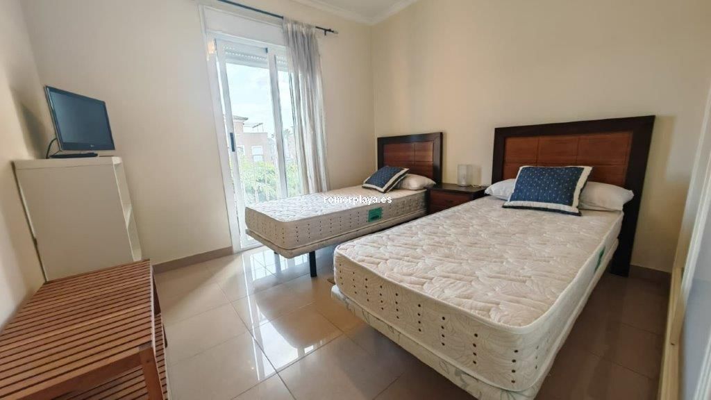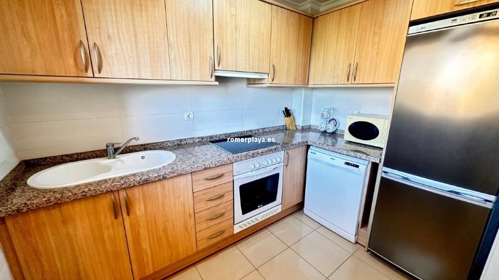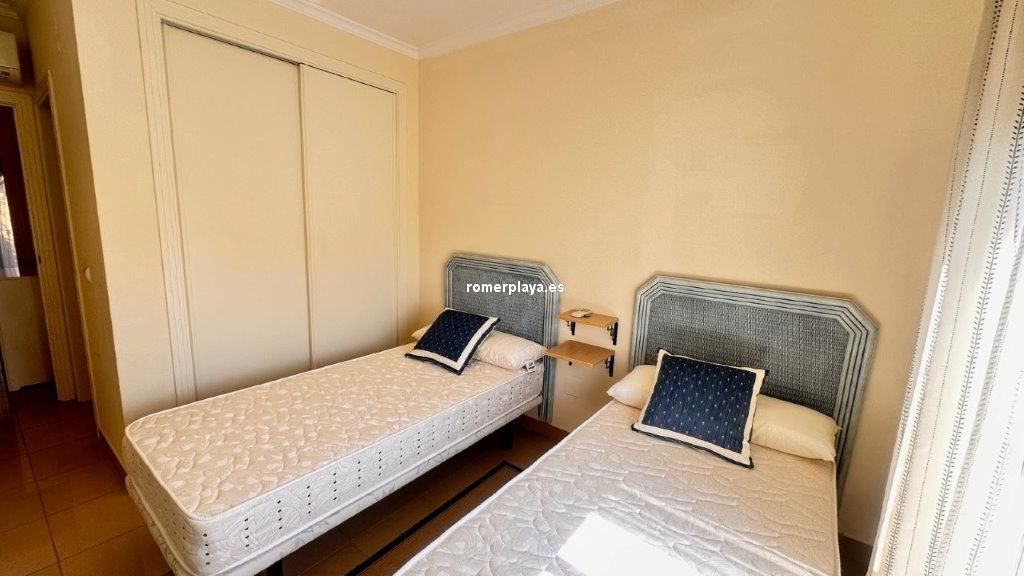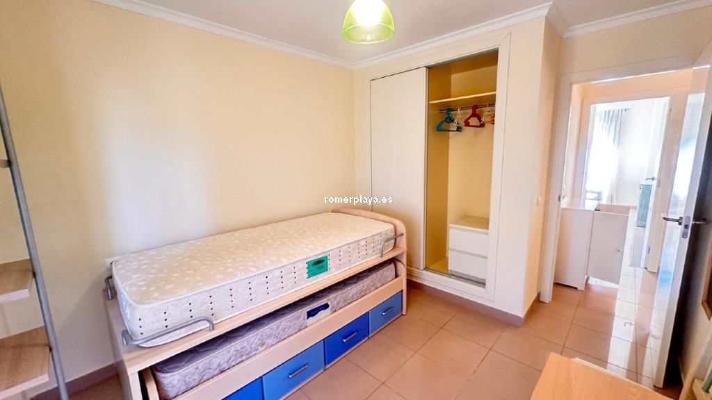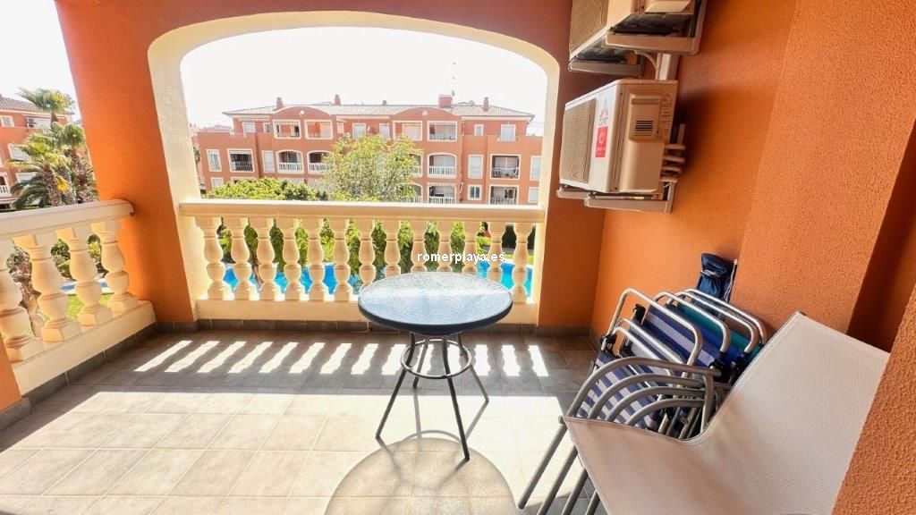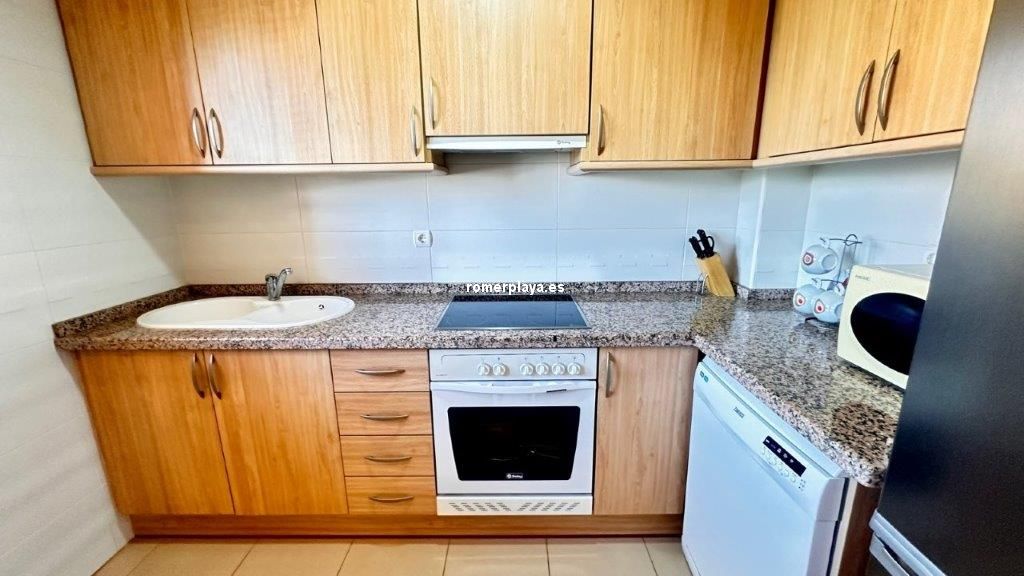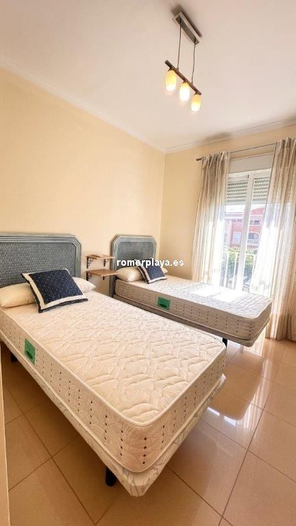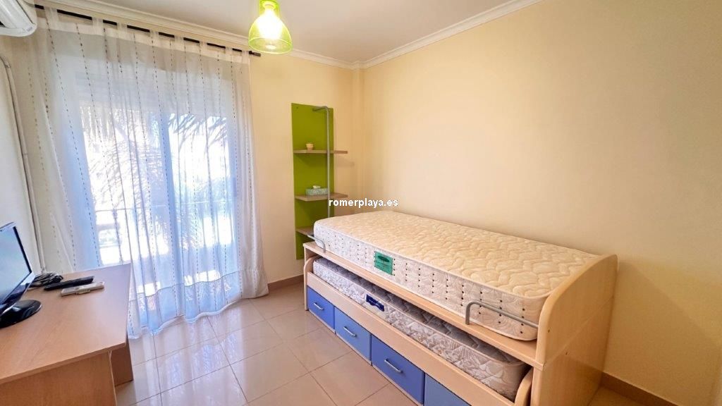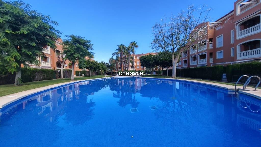 Venta de apartamento en Denia, con plaza de garaje. Se encuentra situado a 1 km. del centro de la población y a escasos minutos de la playa (200m.) cerca del club de tenis, supermercado, tiendas, cafeterías y restaurantes de fama reconocida. El diseño de esta vivienda permite que pueda ser disfrutado todo el año, bien como para vacaciones o vivienda habitual. Situado en zona bonita, tranquila y soleada, urbanización con amplio jardín arbolado, dos piscinas y un jacuzzi, cuenta con tres dormitorios dobles exteriores muy espaciosos, confortables y luminosos con armarios vestidos y puertas correderas, 2 baños completos, uno de ellos en suite, cocina independiente con lavandería, gran salón comedor, terraza/porche con orientación sur y vistas al jardín con panorámicas al Montgó. Cerramiento con doble cristal aislante, A/acondicionado Mitsubishi inverter (frío y calor), puerta blindada con cerradura de seguridad, cocina con lavavajillas y electrodomésticos casi nuevos. Incluye jplaza de parking con cubierta numerada. Este apartamento se entrega amueblado y equipado para entrar a vivir, o bien, si se desea sin amueblar.