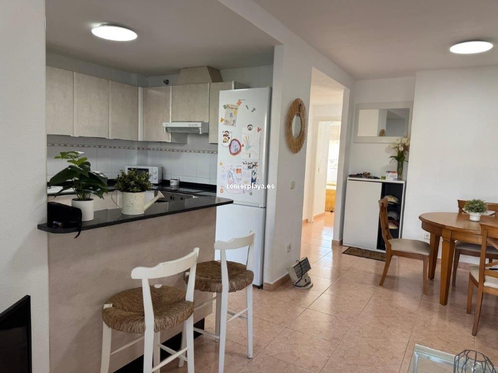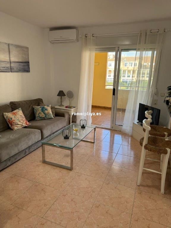 Descubra este encantador apartamento ubicado en las marinas de Denia en el km 2, un espacio que combina comodidad y estilo en un entorno acogedor. Con una superficie construida de 60 m² y 55 m² útiles, este hogar es perfecto para quienes buscan un apartamento tranquilo cerca del mar. El apartamento situado en una primera planta, cuenta con 2 dormitorios y 1 baño, ideal para familias que deseen disfrutar de la vida costera. La cocina abierta se integra a la perfección con el salón, creando un ambiente ideal para socializar y disfrutar de momentos de calidad en familia. A ello se suma una terraza de 12 m², donde podrá relajarse y disfrutar de las vistas mientras toma el sol. El apartamento está equipado con aire acondicionado y calefacción mediante sistemas de split en el salón, asegurando un clima agradable durante todo el año. La construcción de estilo tradicional aporta un toque acogedor, mientras que las ventanas exteriores permiten la entrada de luz natural, creando un ambiente cálido y luminoso. Los residentes también podrán disfrutar de una piscina comunitaria, perfecta para refrescarse en los calurosos días de verano. Además, el inmueble cuenta con un hermoso jardín, servicio de conserjería y estacionamiento para mayor comodidad. La propiedad forma parte de un edificio de uso exclusivo para viviendas, lo que asegura un entorno tranquilo y exclusivo. Situado en Denia, este apartamento se encuentra en una ubicación estratégica, a doscientos metros de una de las mejores playas y ofreciendo buenas comunicaciones con el resto de la ciudad y sus alrededores. Denia, conocida por su encanto y su rica oferta gastronómica, está a solo unos minutos de las playas más hermosas de la Costa Blanca, donde podrá disfrutar del mar y del sol todo el año. El área también cuenta con una amplia gama de servicios, incluyendo tiendas, restaurantes y actividades de ocio, lo que hace que vivir aquí sea realmente placentero.