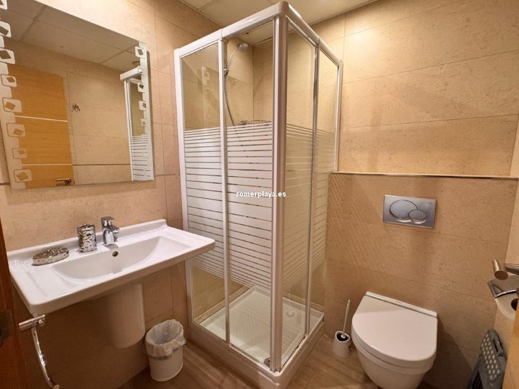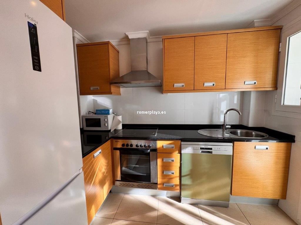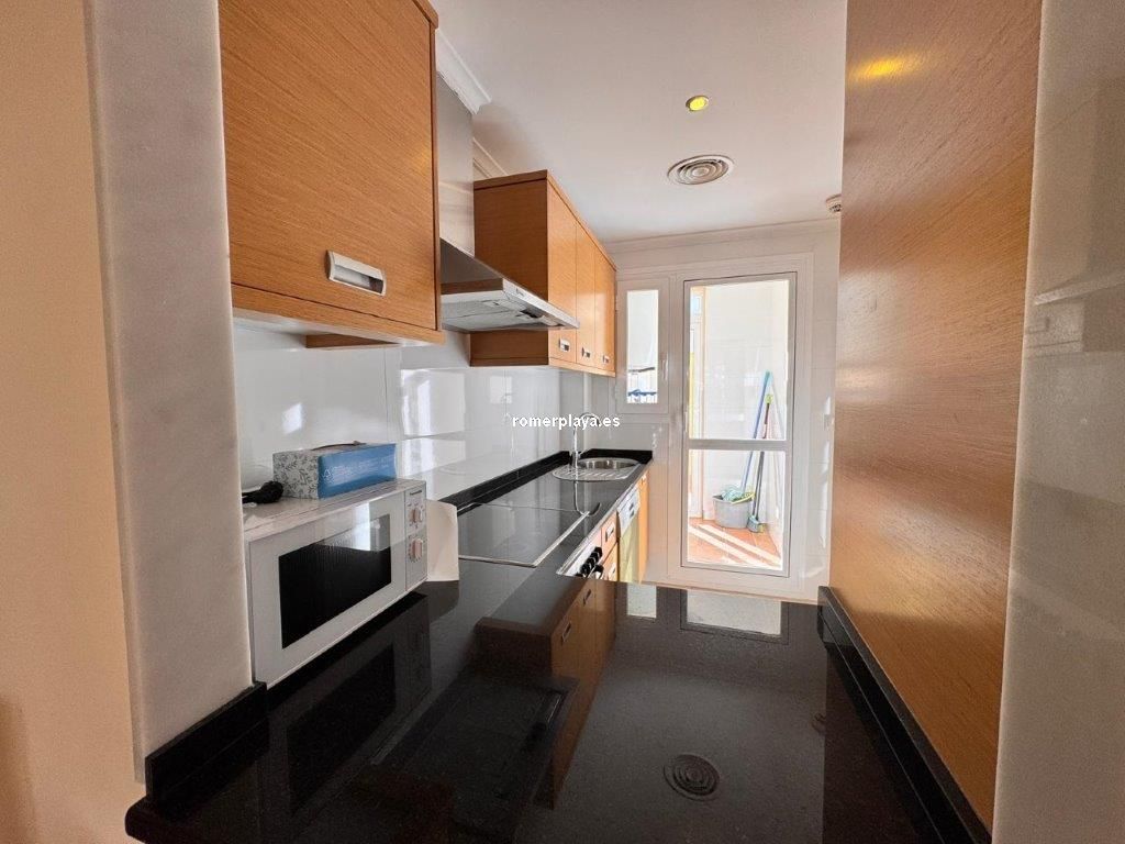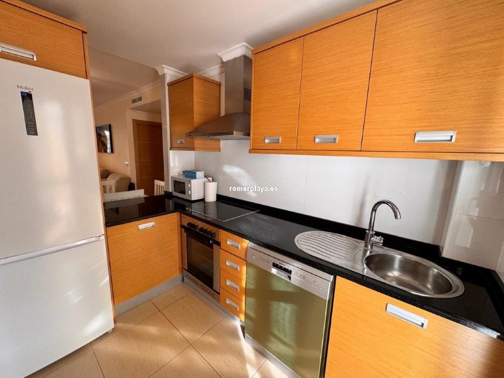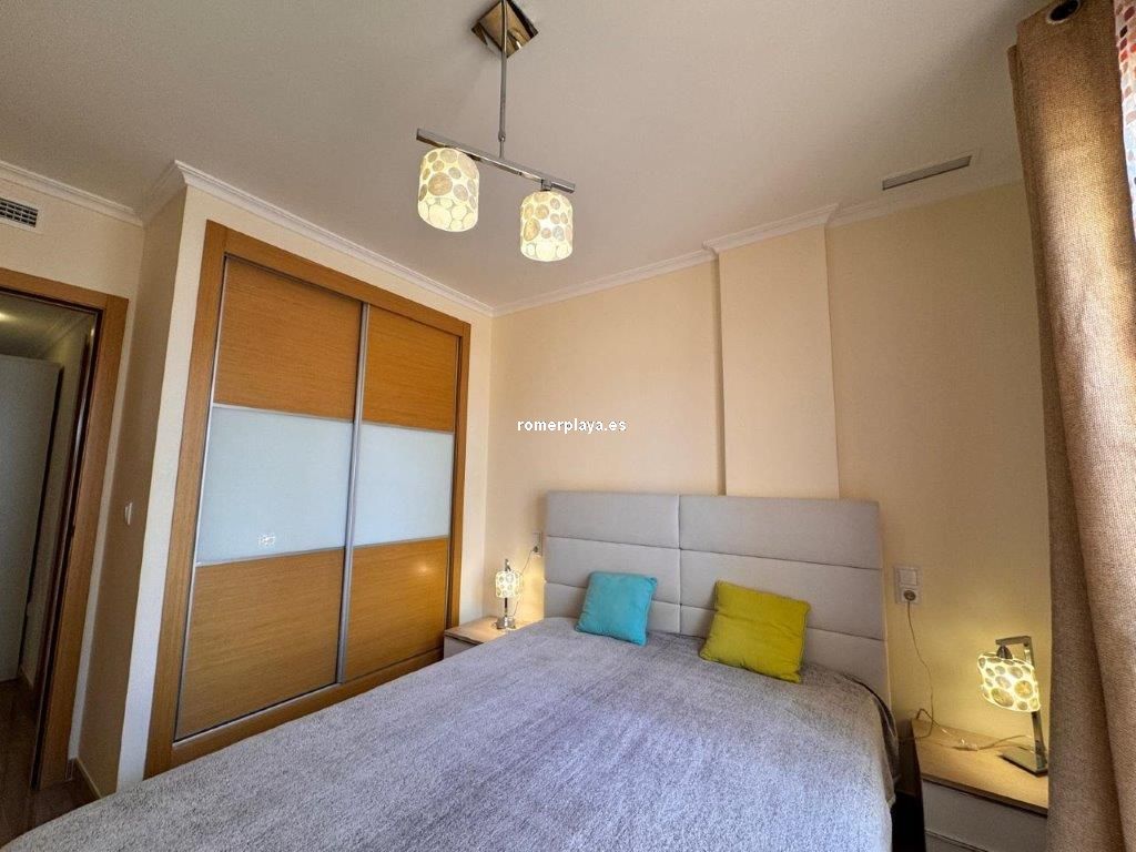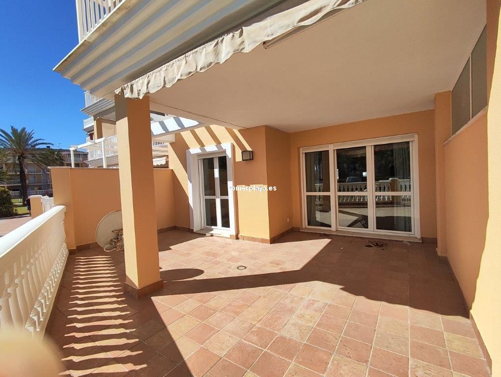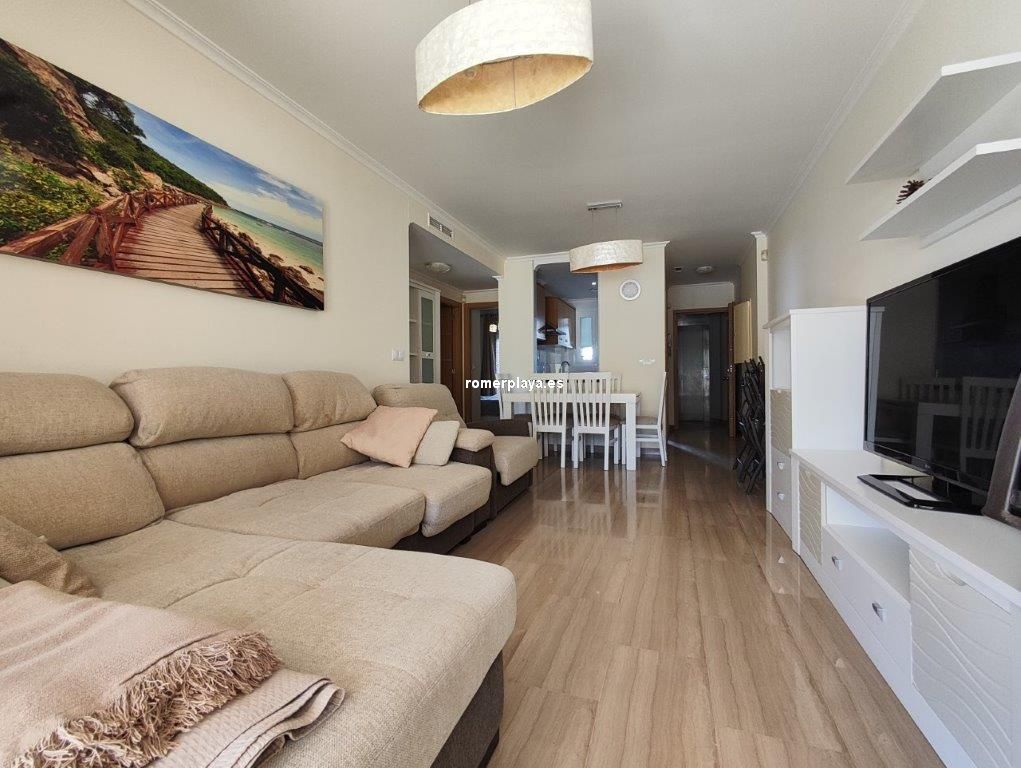 Este luminoso apartamento se encuentra en una exclusiva urbanización en primera línea de la playa, con acceso directo al mar y una ubicación excepcional junto a la parada de autobús, supermercados y una amplia oferta de restaurantes. La urbanización ofrece excelentes servicios: piscina comunitaria, pista de pádel, amplias zonas verdes y conserje durante todo el año. La vivienda cuenta con 60 m² interiores distribuidos en dos dormitorios y dos baños completos, así como dos terrazas que aportan una calidad de vida inmejorable: Terraza principal de 20 m² con salida directa al jardín de la urbanización, ideal para disfrutar del clima mediterráneo. Segunda terraza de 15 m², orientada al oeste, que ofrece sol de tarde y acceso desde la cocina y el segundo dormitorio. Entre sus calidades destacan el suelo de mármol, aire acondicionado, persianas eléctricas y excelente estado de conservación. El precio incluye un garaje subterráneo y un trastero, un valor añadido imprescindible en esta zona. Una propiedad perfecta tanto para vacaciones como para vivir todo el año, en una de las mejores zonas de Dénia y a solo unos pasos del mar