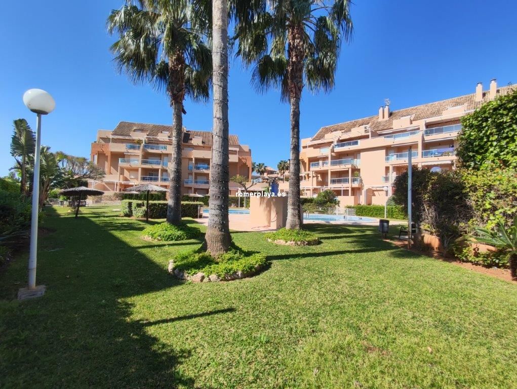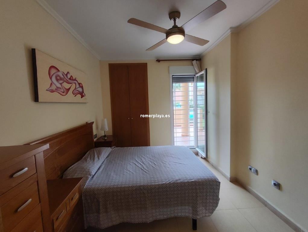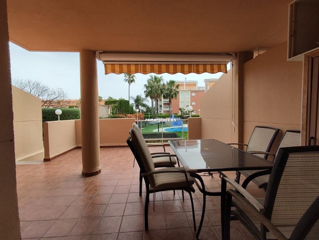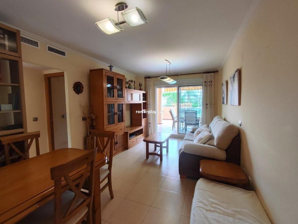 Bonita vivienda en planta baja, con amplia terraza de unos 25 metros y jardín privado de 25 metros, con acceso directo a las piscinas y jardines comunes. Urbanización magníficamente ubicada en la carretera de las Marinas, zona del Hotel los Ángeles, con todo tipo de servicios en la misma zona, y una fantástica playa de arena fina y blanca con aguas cristalinas. La vivienda interiormente se distribuye en hall de entrada, cocina independiente completamente equipada y galería, un gran salón comedir con acceso a la terraza con sol de mañana , y con toldos, además dispone de dos dormitorios y dos cuartos de baño, uno de ellos en la habitación principal en suite. La vivienda dispone de aire acondicionado frio calor, dos plazas de aparcamiento, una subterránea y otra en superficie, y un trastero. En el Km 4 de las Marinas, a 150m de la playa. Y con parada de bus en la puerta.