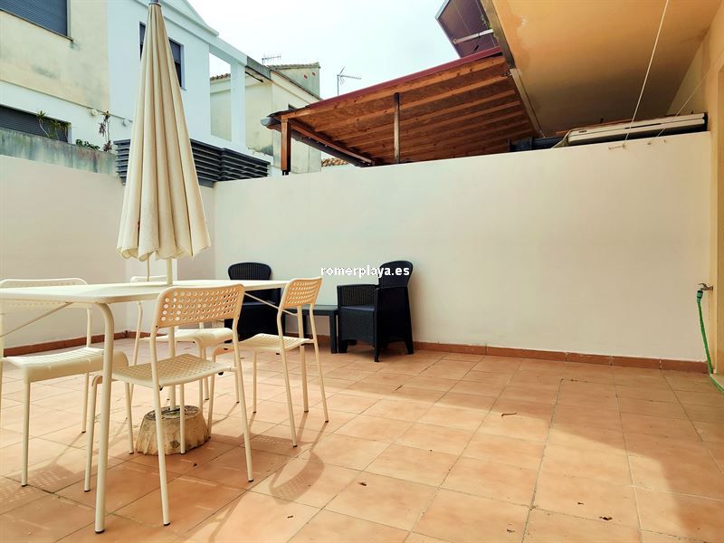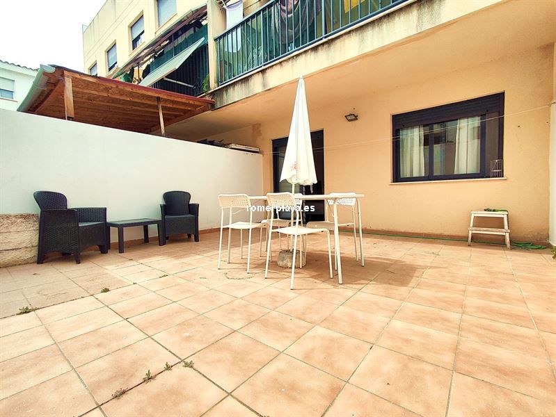 Hermosa planta baja con gran terraza en centro de Miramar, cerca todos servicios , ideal como vivienda habitual. Vivienda de 80,76 m2 construidos, de cuales son útiles 71,52. Salón-comedor amplio ,pasillo, que conecta con todas estancias. Cocina independiente y equipada, con frigorífico, horno, lavaplatos nuevos. Tres dormitorios, dos de cuales dobles, todos con armarios empotrados y vestidos. Dormitorio principal con vestidor y con baño en suite , con salida a la amplia terraza que mide unos 26 metros cuadrados. Dormitorio simple con salida a pequeño patio interior. Segundo baño con bañera. Preinstalación para aire acondicionado por conductos. Se vende amueblado y con electrodomésticos. Plaza de parking en semisótano incluida en precio. Año construcción 2007.