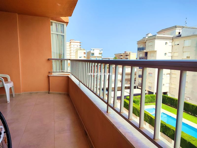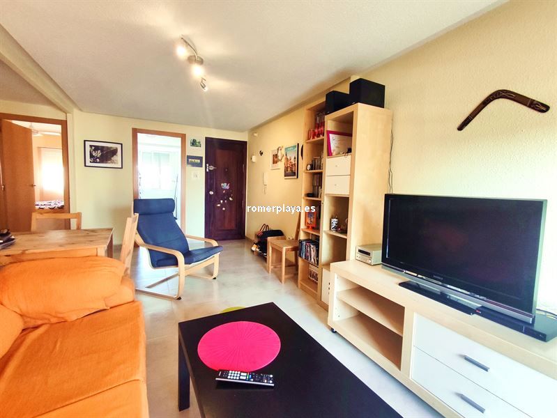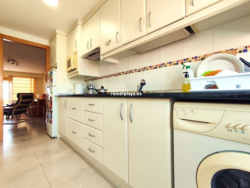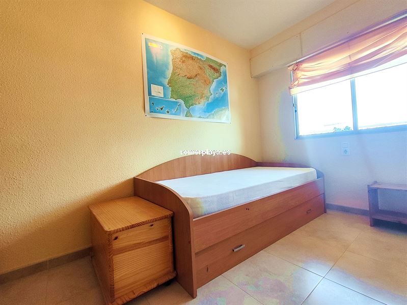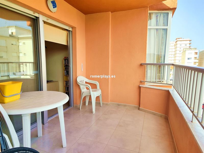 Hermosa cuarta planta con terraza con vistas abiertas a unos 200 metros del mar. Vivienda de 70 m2 construidos según catastro. Salón-comedor amplio con salida a la terraza y con aire acondicionado.Cocina independiente y equipada. Dos dormitorios dobles con armarios empotrados . Un baño con plato de ducha. Se vende semi amueblado y con electrodomésticos. Edificio sin ascensor. Año construcción 1978.