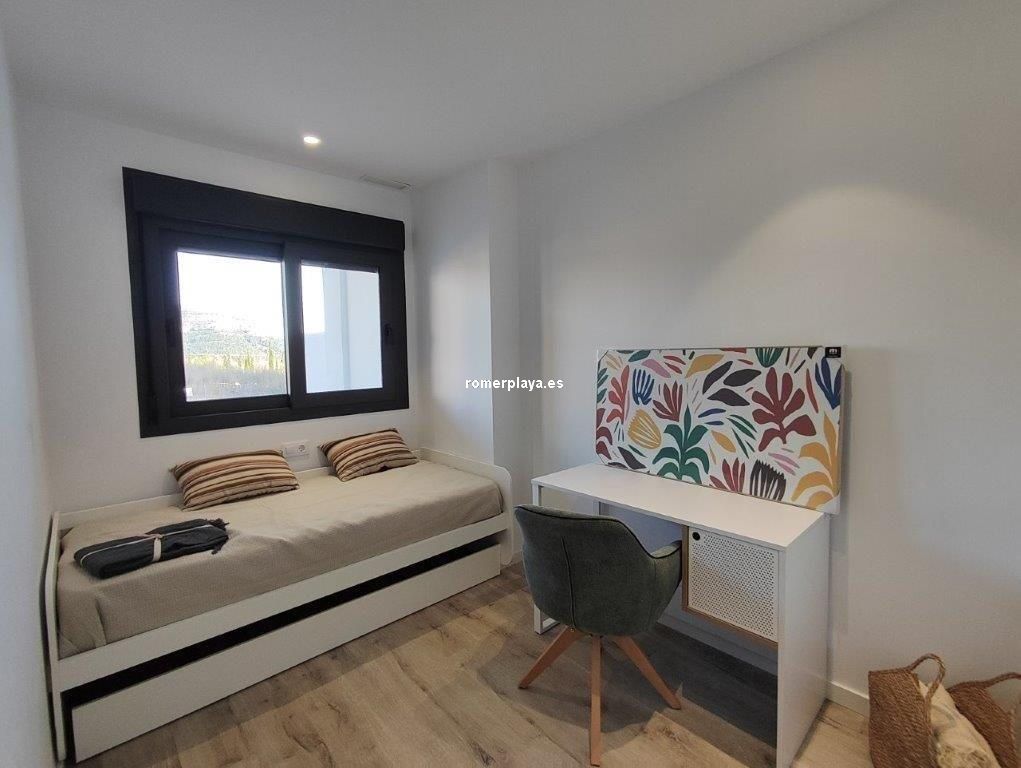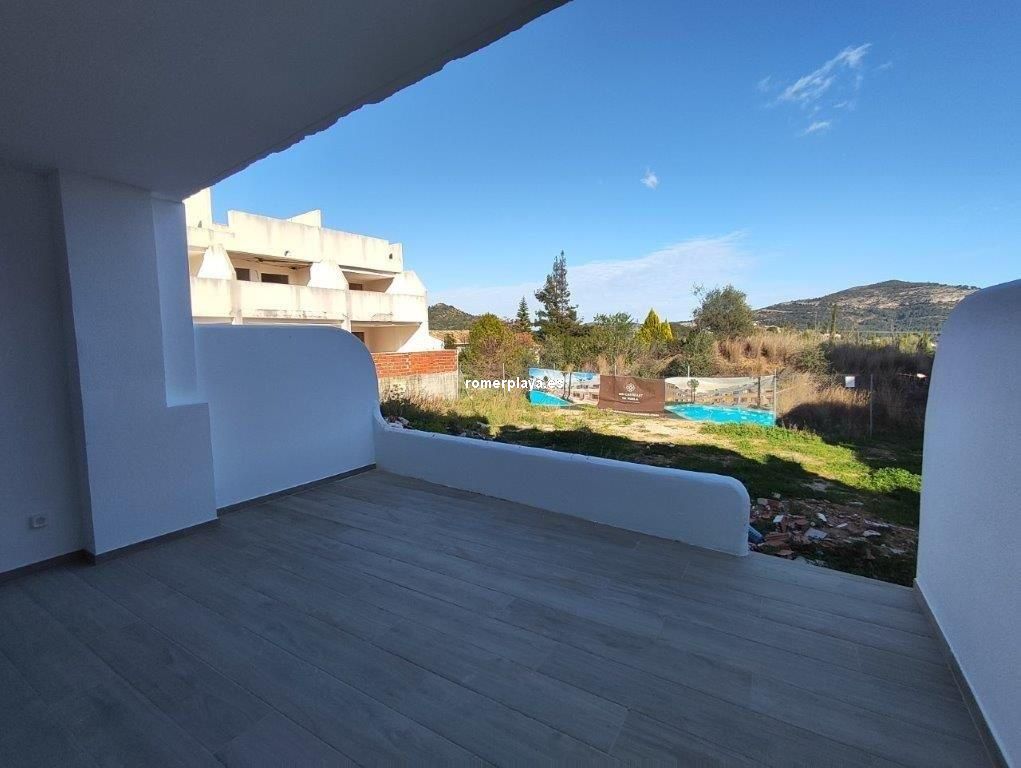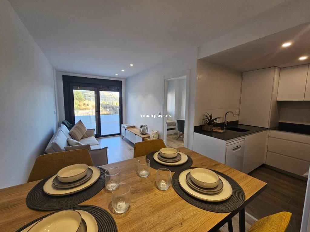 COMPLEJO DE APARTAMENTOS DE OBRA NUEVA de 2 y 3 dormitorios con piscina y jardín comunitario. Se trata de una urbanización cerrada que consta de 36 apartamentos, 18 de los cuales están en planta baja, dónde se sitúan la piscina y jardín comunitarios, y los otros 18 en planta alta. Los apartamentos de la planta baja disponen de 2 terrazas, una de las cuales da acceso directo a la zona comunitaria. Los apartamentos de la planta alta disponen de terraza pero además de un amplio solarium privado y trastero en la planta superior de los mismos, lo que les da un valor añadido. Tanto la urbanización como los apartamentos se terminarán con altas calidades de construcción tal y como se vé en las imágenes. Los apartamentos dispondrán de cocina y baños completamente terminados. En la cocina se incluye también campana extractora, horno y placa de cocción. Los cerramientos de puertas y ventanas serán de aluminio con doble cristal y rotura térmica. También se incluyen persianas en las habitaciones. Existe un piso piloto para poder ser visitado y comprobar los acabados y calidades. En el mismo Valle de Jalón se encuentra Murla, una localidad tranquila pero al mismo tiempo cerca de cualquier servicio. A tan sólo unos minutos en coche están Orba y Jalón, centros neurálgicos de la zona. A sólo 15 minutos en coche llegamos a Benissa donde podemos coger la autovía A7 que conecta directamente con las ciudades de Valencia y Alicante y sus aeropuertos. A unos 20-25 minutos de Murla encontramos fantásticas playas de arena. Pida más información o llámenos para una visita sin compromiso.