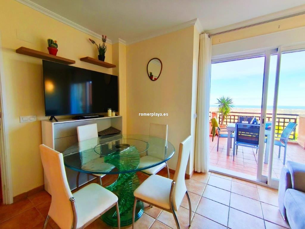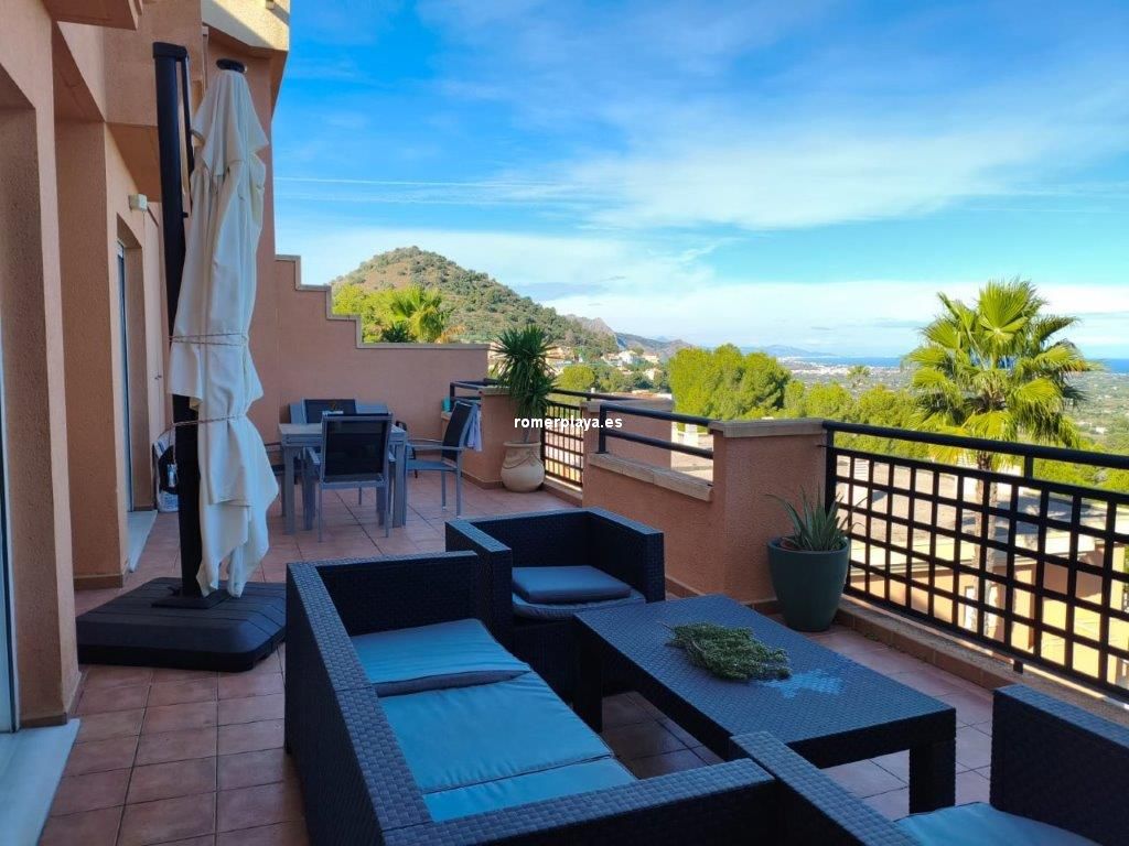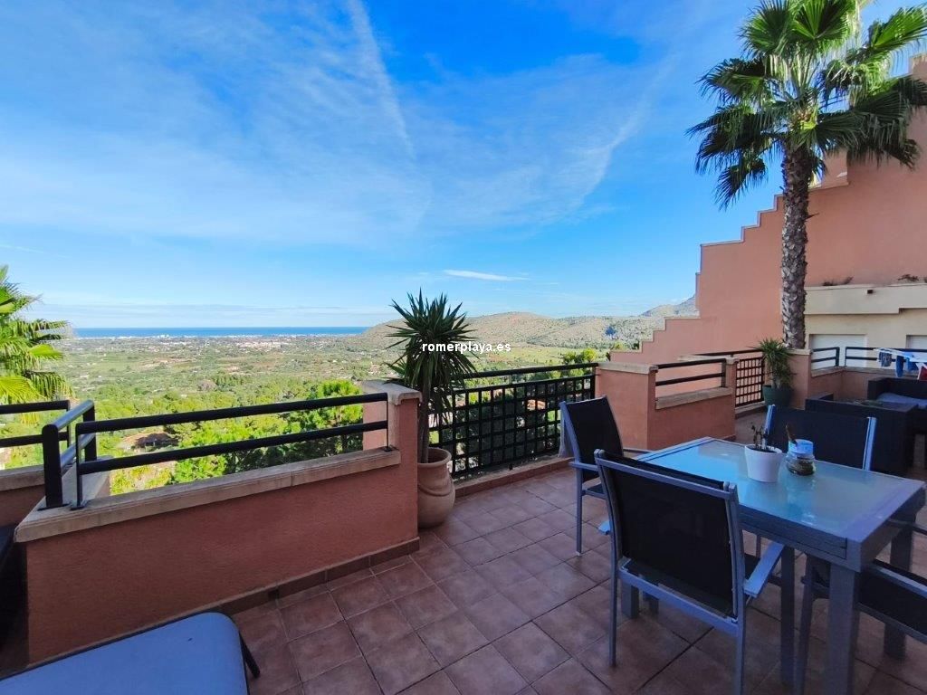 Apartamento en buen estado con vistas al mar en La Sella. Dispone de dos habitaciones dobles con dos baños, uno en suite. Cocina americana y una gran terraza para disfrutar de las vistas. En un recinto urbanizado privado, con piscina comunitaria y parking privado. Un lugar tranquilo y seguro cerca de los servicios y cerca de la playa.