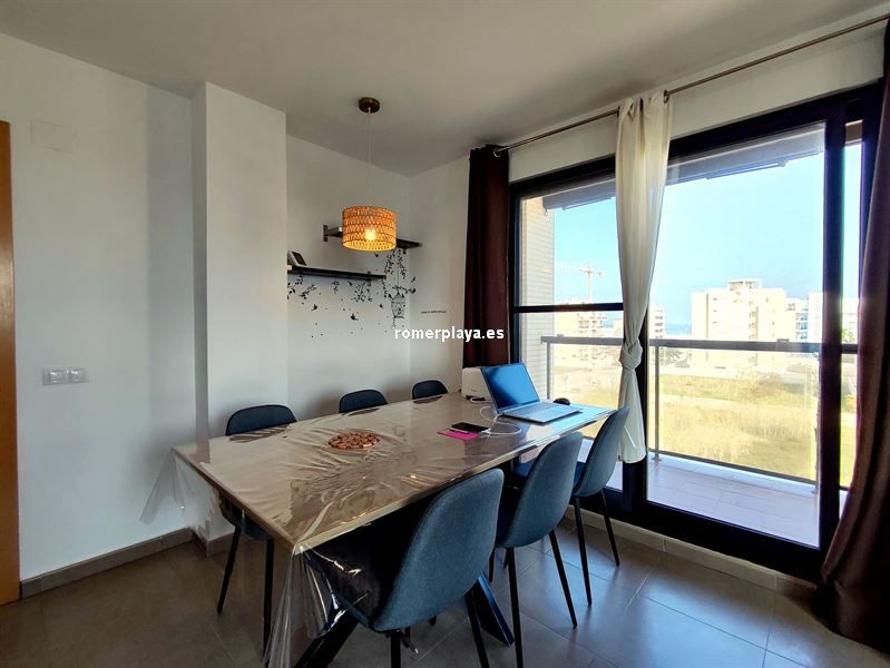Apartamento moderno, luminoso y con vistas despejadas al mar Mediterráneo y Montgó. Vivienda de 76 m2 construidos y 64 m2 útiles. Salón-comedor amplio con salida directa a la terraza . Cocina independiente totalmente equipada y con salida a la misma terraza. Terraza con toldos. Dos dormitorios dobles con armarios empotrados. Un baño completo con plato de ducha. Todo exterior. Apartamento en perfectas condiciones, listo para entrar a disfrutar. Suelos de gres, ventanas climalit con persianas y mosquiteras, carpintería interior de madera, puerta de seguridad, aire acondicionado frio/calor. Se vende amueblado. Plaza de parking incluida en el precio. Edificio con ascensor, ducha exterior, trastero comunitario para dejar bicicletas y terraza comunitaria para tender ropa. Orientacion : este, sur Distancia al mar 250m. Año construcción 2009. Playa de Piles se encuentra en un marco natural envidiable, tranquila y limpia, muy familiar , arena fina y fondo del mar plano. Es un lugar para descansar de todo el ruido de la ciudad.
