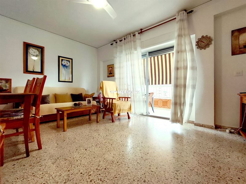 Amplio apartamento a unos 200 metros del mar con salón comedor con salida a la amplia terraza con vistas abiertas, tres dormitorios ( dos de ellos con armarios empotrados), cocina independiente totalmente equipada con galería y un baño completo . Dormitorios con ventiladores de techo. Nuevas puertas, grifería, persianas de aluminio y mosquiteras. Todo exterior. Se vende amueblado y con electrodomésticos. Edificio renovado. Planta tercera sin ascensor. Gastos comunidad tan solo 250€ al año. Año construcción 1968. Playa de Piles se encuentra en un marco natural envidiable. Playa tranquila y limpia, muy familiar , arena fina y fondo del mar plano. Es un lugar para descansar de todo el ruido de la ciudad.
