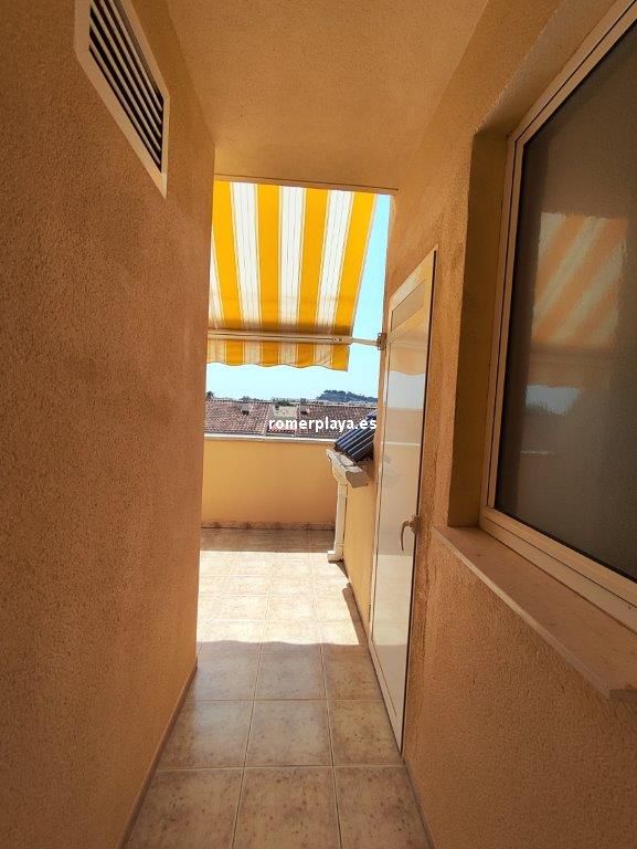 Presentamos este luminoso ático dúplex ubicado en la segunda planta de un residencial sin ascensor, a tan solo 200 metros de la playa. Situado en una zona privilegiada, cerca de todos los servicios y con un entorno ideal tanto para vivir todo el año como para disfrutar de vacaciones. En la planta principal encontramos un acogedor recibidor, un aseo de cortesía, cocina independiente completamente equipada, y un amplio salón-comedor con salida a una soleada terraza orientada al oeste, desde la que se puede disfrutar de vistas abiertas, el Parque de Les Bassetes y bonitos atardeceres con el mar al fondo. Subiendo a la planta superior, accedemos a una estancia que ha sido acondicionada como zona de estar con salida a una segunda terraza, más tranquila y con vistas aún más despejadas. En esta planta también encontramos un baño con ducha y un gran dormitorio principal con salida a una tercera terraza orientada al este, desde donde se contempla el Montgó y el Castillo de Dénia. Esta última terraza cuenta con trastero y lavadero. La vivienda ofrece un total de 80 m² interiores y tres terrazas privadas de 14 m², 16 m² y 4 m² respectivamente, todas ellas con toldos instalados. Equipada con aire acondicionado frío/calor por splits. La urbanización cuenta con amplias zonas comunes: piscina con jardín, pista de tenis, zona infantil, y espacio para guardar bicicletas. En las inmediaciones encontrarás todo lo necesario: restaurantes, cafeterías, deportes acuáticos, zonas de ocio, un gran parque con petanca, aparatos de ejercicio al aire libre y zona de patinaje. Además, justo en la puerta de la urbanización está la parada de autobús, y a solo 600 metros tienes supermercados como Aldi o Rossman.