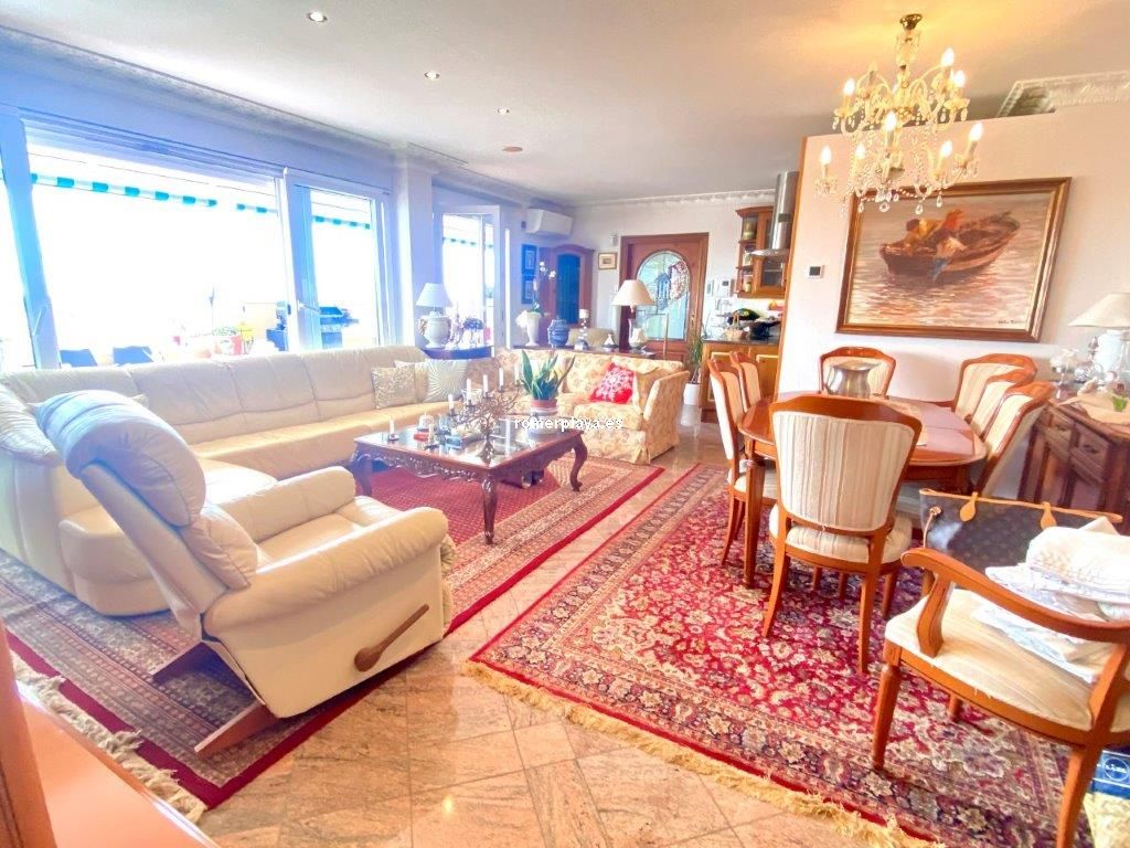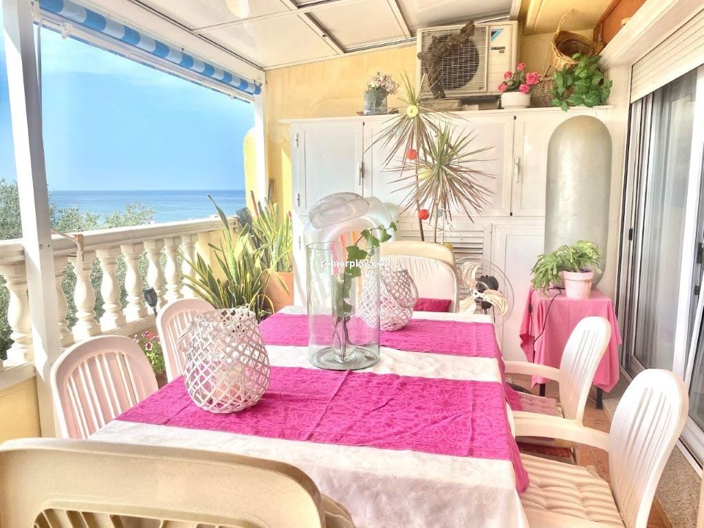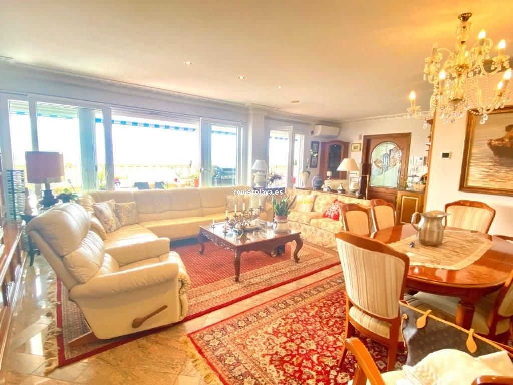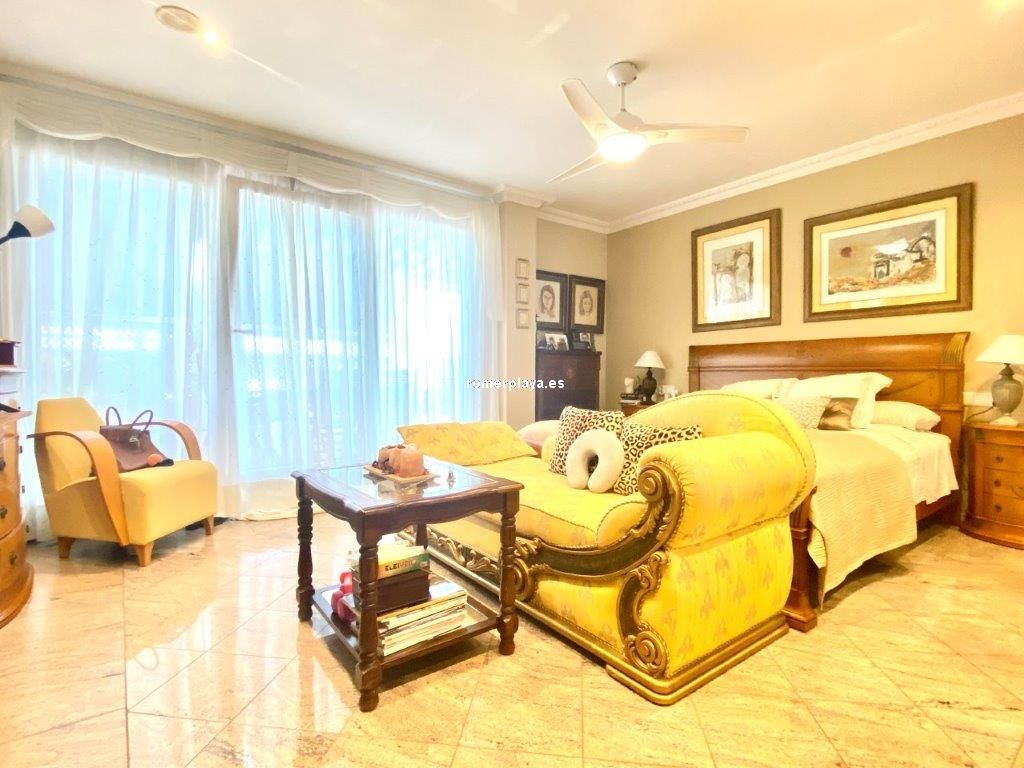 Atico de lujo 1ª línea vistas al mar Puerto Denia Espectacular ático de lujo con vistas al mar situado en primerísima línea de playa del Raset junto al Puerto de Denia. Tiene una superficie construida de 180 m2, y 150m2 de terrazas con orientaciones Este, Oeste y Sur. Se distribuye en amplio salón-comedor con cocina gran abierta, despacho abierto al salón, 2 dormitorios dobles con sus correspondientes baños en suite, el gran dormitorio principal-suite con más de 25 m2 y su baño amplio dispone de ducha y gran bañera de hidromasaje, aseo de cortesía. La terraza principal con vistas al mar orientada al Oeste tiene cubierta retráctil y toldos, la terraza al Este tiene también toldos techados y laterales. La Terraza con vistas al Sur tiene una bonitas vistas abiertas con vista al Castillo de Denia. La vivienda dispone de Aire acondicionado frio/calor, Calefacción por suelo radiante, y estufa de pelets. Los materiales son de primerísima calidad, suelos de granito, puertas de madera maciza. Parking techado, trastero-estudio opcional, piscina comunitaria y salida directa a la amplia playa de arena. Situado a escasos metros del Puerto y de todos los servicios. Sin duda una vivienda muy especial para vivir cómodamente, es posiblemente para muchos la mejor zona de Denia.