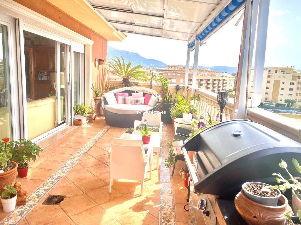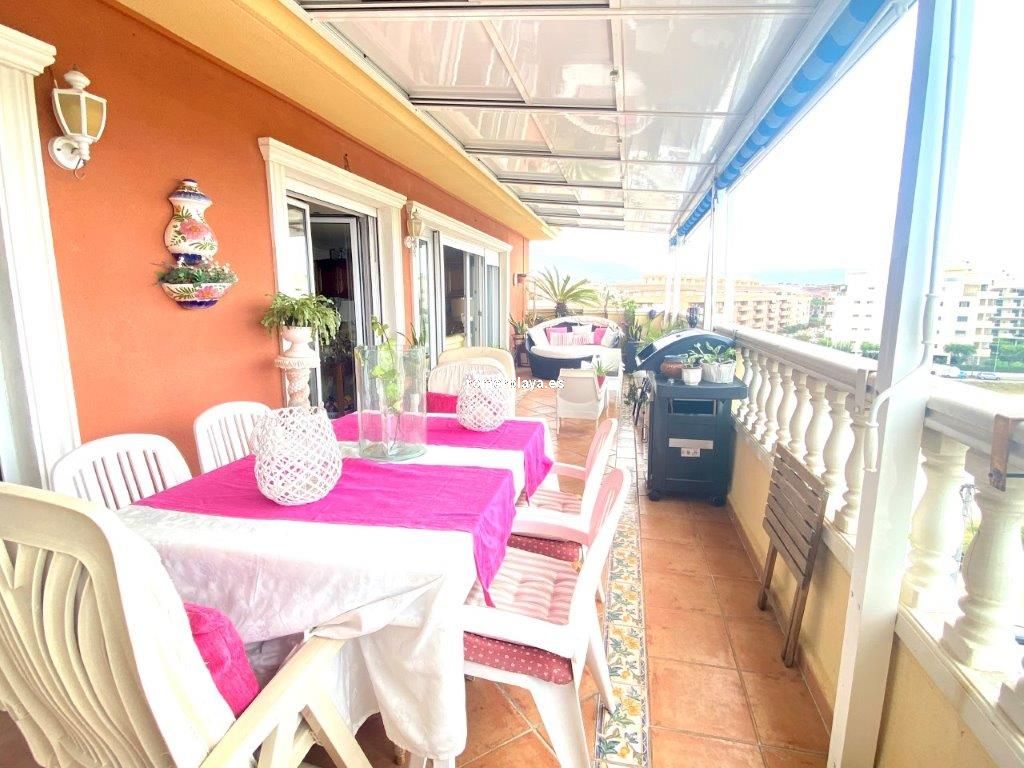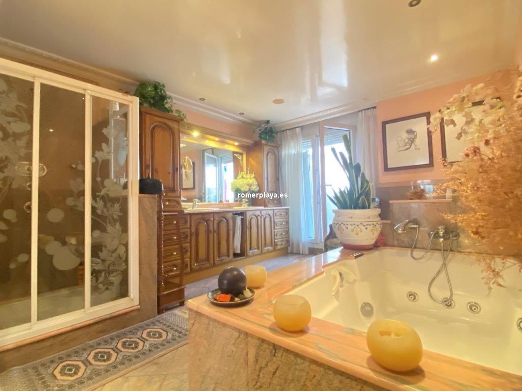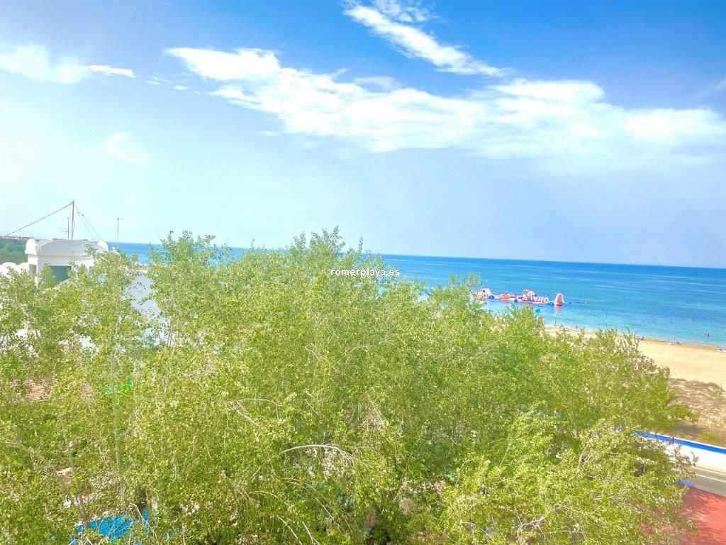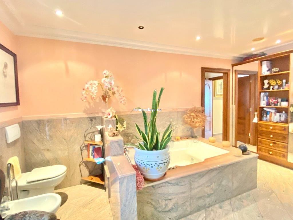 Atico de lujo 1ª línea vistas al mar Puerto Denia Espectacular ático de lujo con vistas al mar situado en primerísima línea de playa del Raset junto al Puerto de Denia. Tiene una superficie construida de 180 m2, y 150m2 de terrazas con orientaciones Este, Oeste y Sur. Se distribuye en amplio salón-comedor con cocina gran abierta, despacho abierto al salón, 2 dormitorios dobles con sus correspondientes baños en suite, el gran dormitorio principal-suite con más de 25 m2 y su baño amplio dispone de ducha y gran bañera de hidromasaje, aseo de cortesía. La terraza principal con vistas al mar orientada al Oeste tiene cubierta retráctil y toldos, la terraza al Este tiene también toldos techados y laterales. La Terraza con vistas al Sur tiene una bonitas vistas abiertas con vista al Castillo de Denia. La vivienda dispone de Aire acondicionado frio/calor, Calefacción por suelo radiante, y estufa de pelets. Los materiales son de primerísima calidad, suelos de granito, puertas de madera maciza. Parking techado, trastero-estudio opcional, piscina comunitaria y salida directa a la amplia playa de arena. Situado a escasos metros del Puerto y de todos los servicios. Sin duda una vivienda muy especial para vivir cómodamente, es posiblemente para muchos la mejor zona de Denia.
