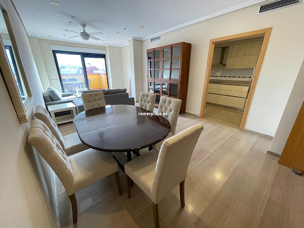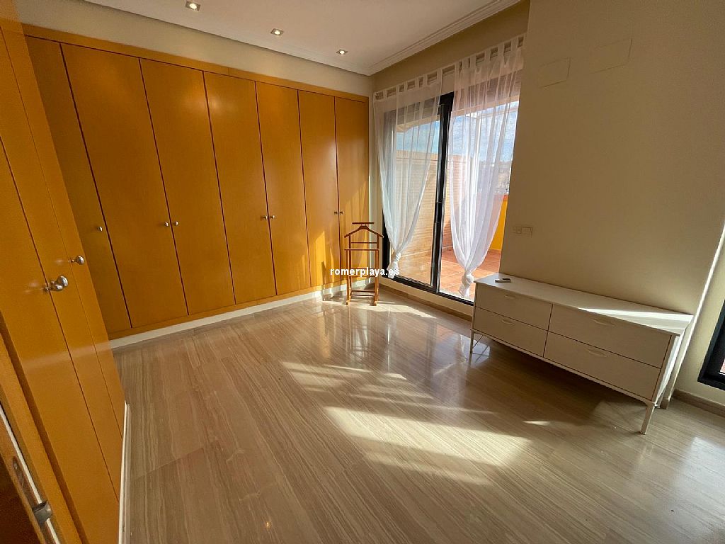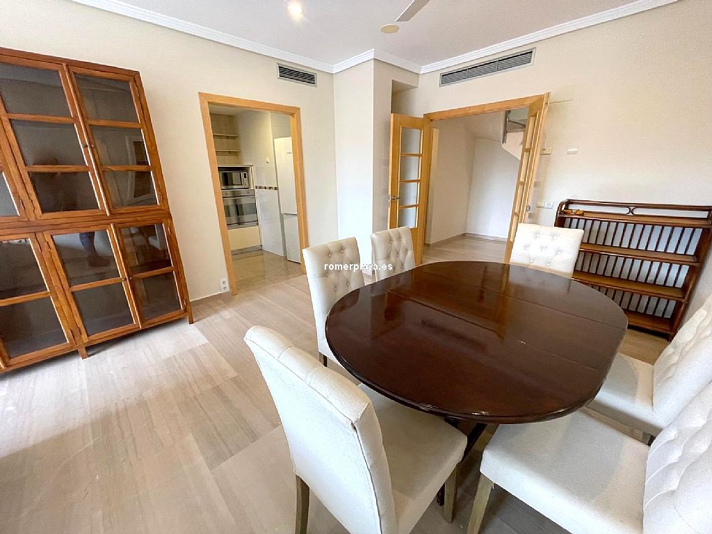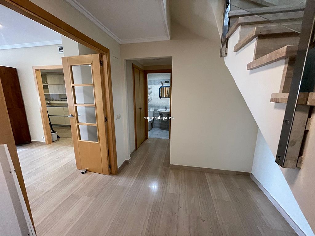 Ático dúplex muy amplio ubicado en centro urbano de Denia, a un paso de todos los servicios. Vivienda luminosa y con acabados de gran calidad. Se encuentra en una 5ª planta con ascensor y su distribución es la siguiente: La planta baja tiene un amplio salón-comedor con acceso a una gran terraza, cocina independiente reformada con galería, un dormitorio y un cuarto de baño. La planta alta cuenta con un dormitorio individual, uno doble que cuenta con vestidor propio y acceso a una terraza, además de un baño en suite. Dispone de aire acondicionado, ventiladores de techo, suelo de mármol y puerta blindada. Además, cuenta con una plaza de garaje doble. Urbanización bien cuidada, con zonas verdes y piscina de gran tamaño. Muy cerca de todos los servicios necesarios y a escasos metros de la playa.