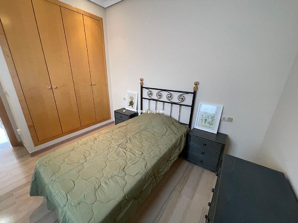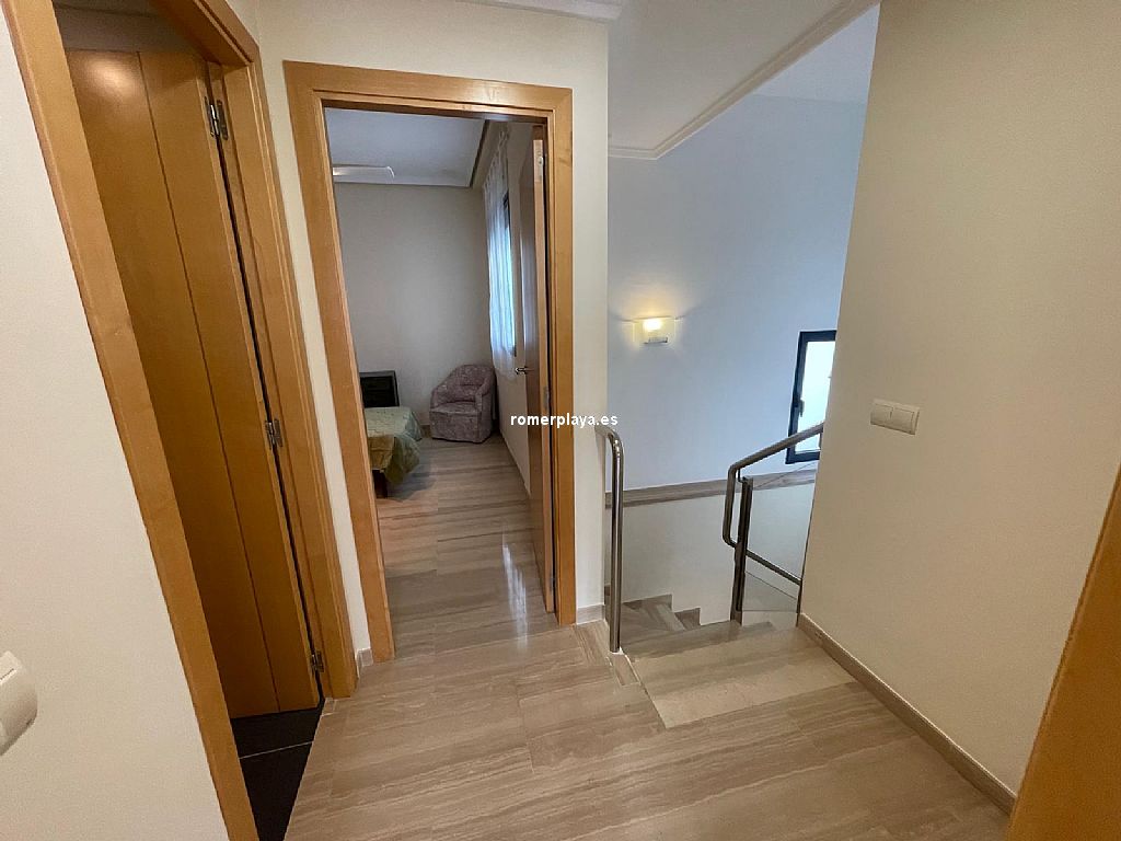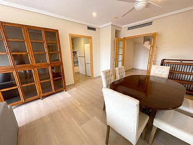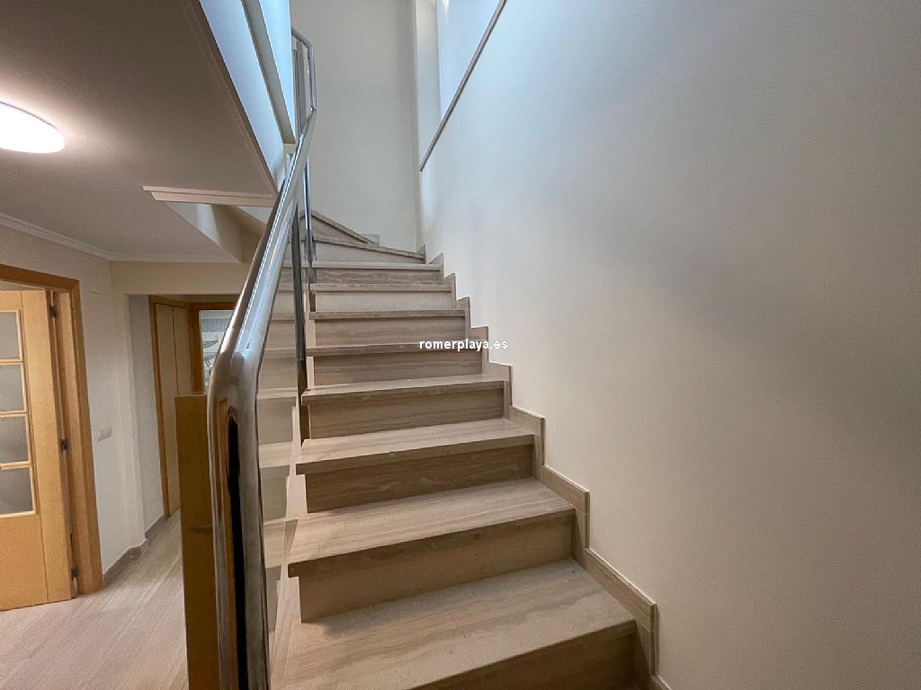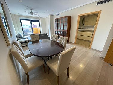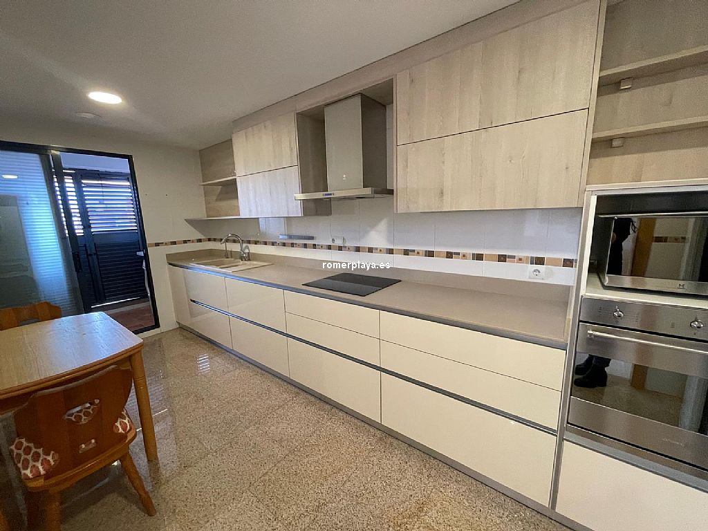 Ático dúplex muy amplio ubicado en centro urbano de Denia, a un paso de todos los servicios. Vivienda luminosa y con acabados de gran calidad. Se encuentra en una 5ª planta con ascensor y su distribución es la siguiente: La planta baja tiene un amplio salón-comedor con acceso a una gran terraza, cocina independiente reformada con galería, un dormitorio y un cuarto de baño. La planta alta cuenta con un dormitorio individual, uno doble que cuenta con vestidor propio y acceso a una terraza, además de un baño en suite. Dispone de aire acondicionado, ventiladores de techo, suelo de mármol y puerta blindada. Además, cuenta con una plaza de garaje doble. Urbanización bien cuidada, con zonas verdes y piscina de gran tamaño. Muy cerca de todos los servicios necesarios y a escasos metros de la playa.