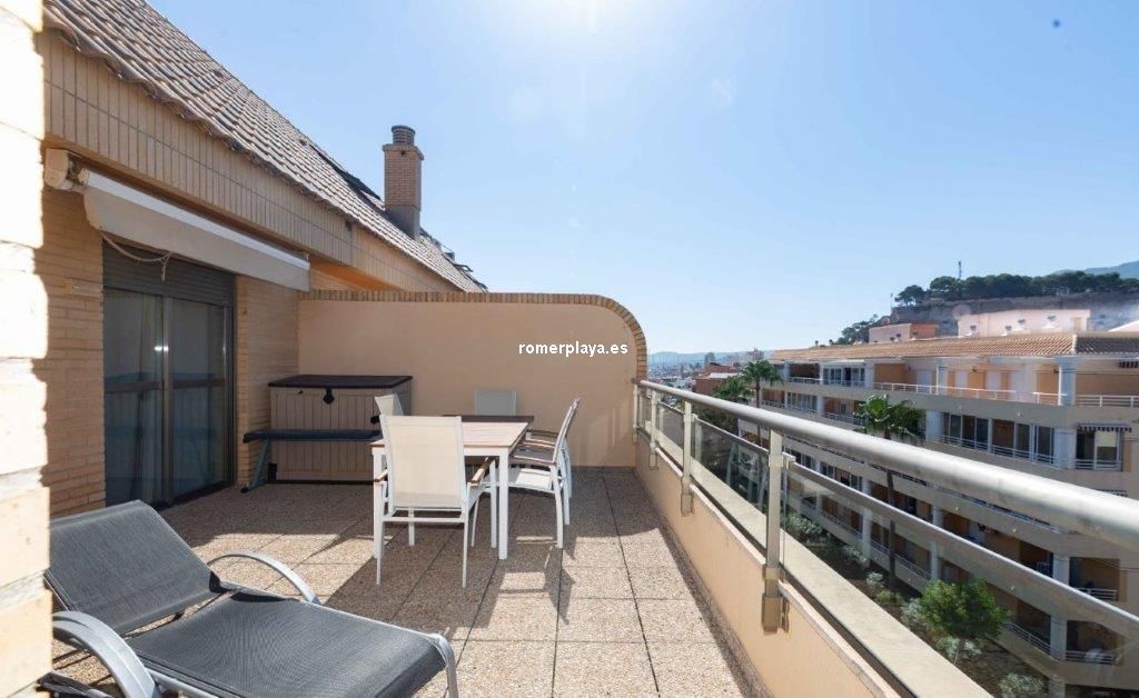 Te ofrecemos este exclusivo atico frontal al mar, situado en un enclave privilegiado a escasos 500 metros del centro de la ciudad y a un paso de una de las estupendas playas Dianenses. El atico cuenta con dos grandes terrazas , una de ellas perfecta para disfrutarla en Verano por sus increibles vistas y orientacion y la otra muy soleada en invierno para poder disfrutarla. Consta de un gran salon comedor con cocina incorporada y salida a las dos terrazas, dos habitaciones y dos baños en la planta baja y una habitacion con vestidor y otro baño en la parte alta. ademas cuenta con una plaza de parking en superficie pero techado (todas en la urbanizacion son similares ) Su enclave privilegiado lo convierte en una vivienda unica ,si buscas una vivienda de estas caracteristicas no dejes pasar la oportunidad y visitala