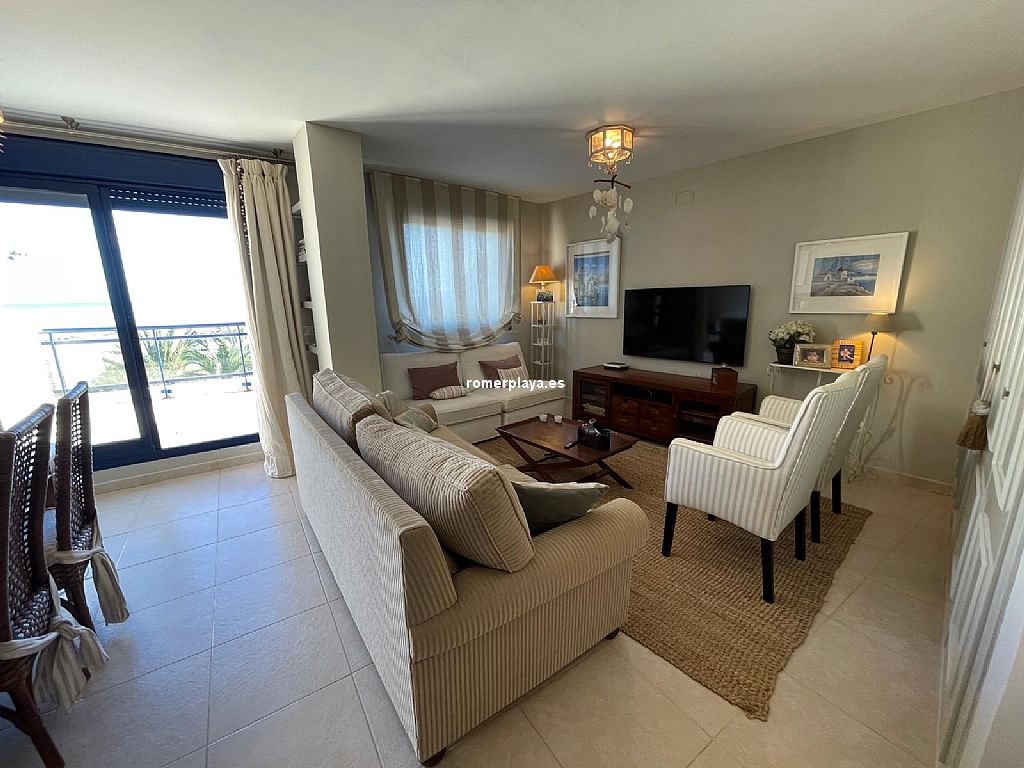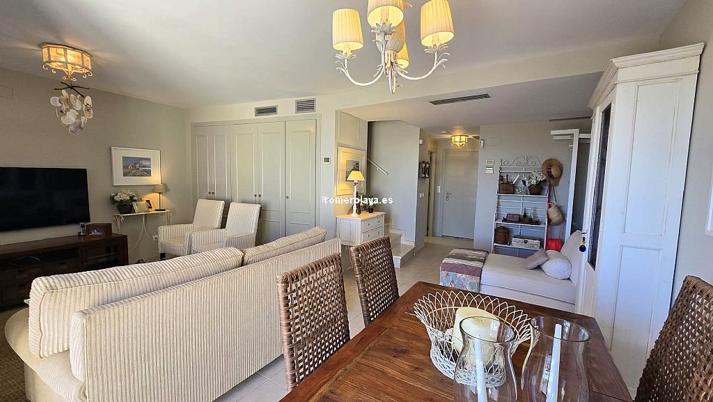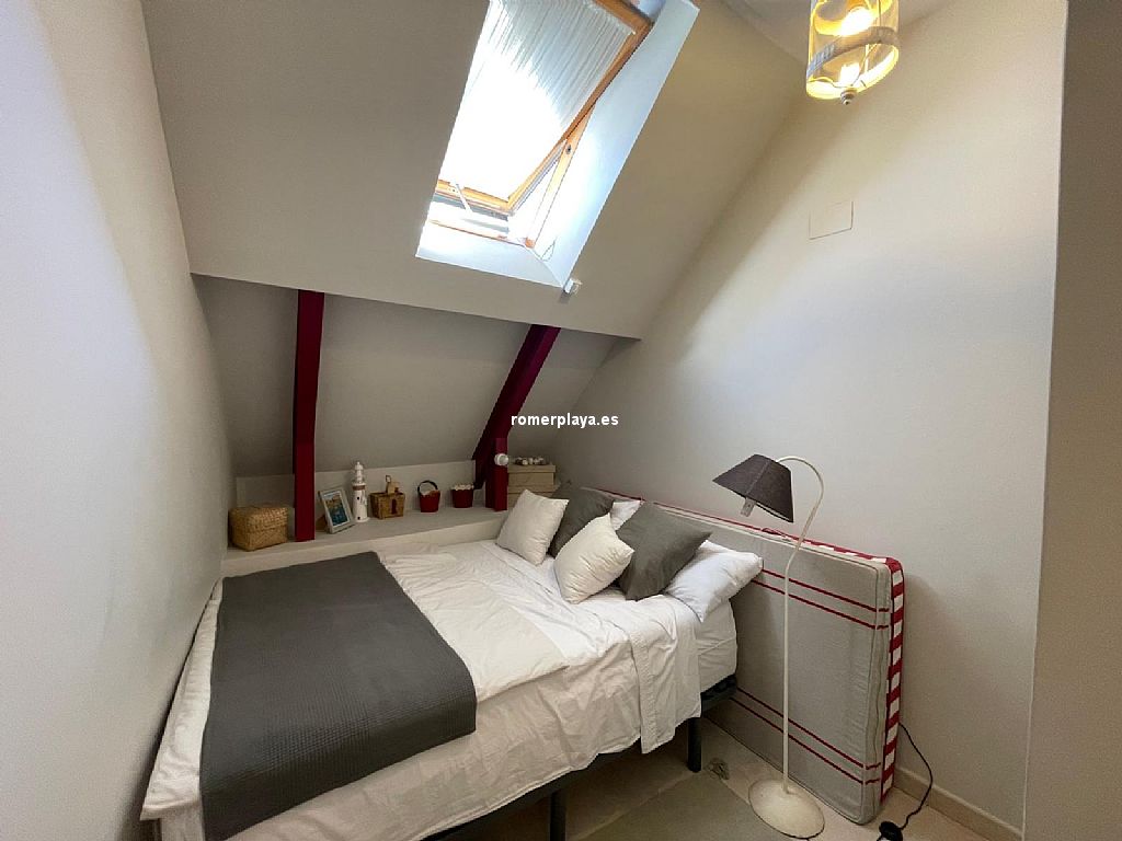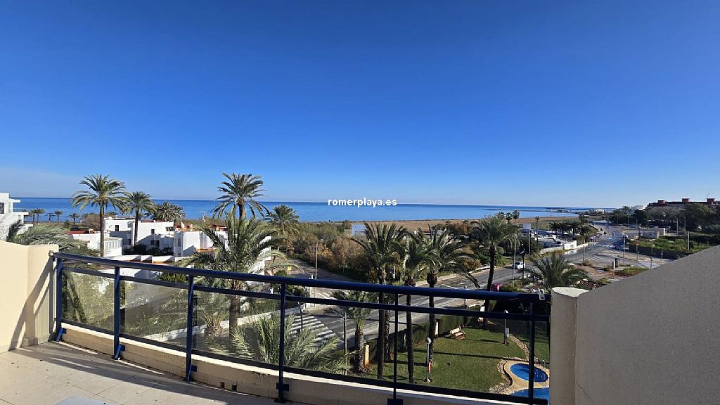 Bonito ático dúplex con vistas panorámicas al mar ubicado cerca del puerto de Denia y a unos 80m de la playa. La vivienda se encuentra en una 4ta planta con ascensor. Su distribución es la siguiente: la planta principal cuenta con un amplio salón-comedor con acceso a una terraza, cocina independiente con pequeña terraza y un cuarto de baño completo. En la planta alta encontramos tres dormitorios y un cuarto de baño. Dispone de: aire acondicionado por conductos, calefacción y armarios empotrados. Además, de una plaza de parking. La urbanización tiene piscina de adultos y niños, parque infantil, jardines, gimnasio con sauna y conserjería. Se encuentra en la zona de Las Marinas a 500m de casco urbano.