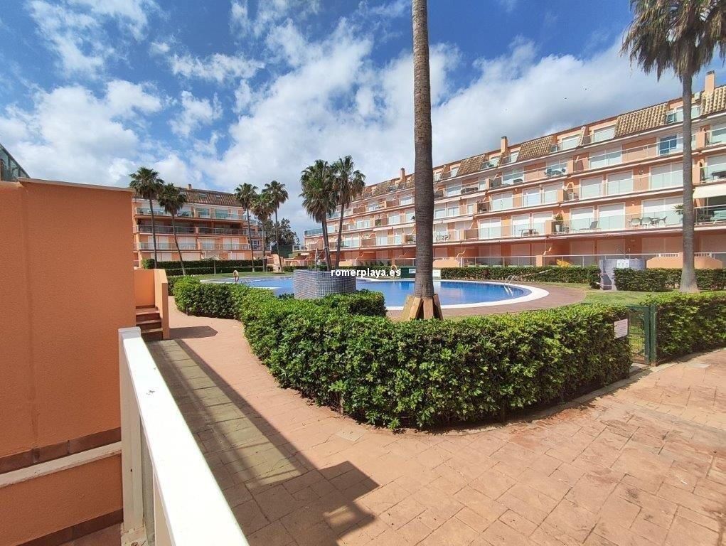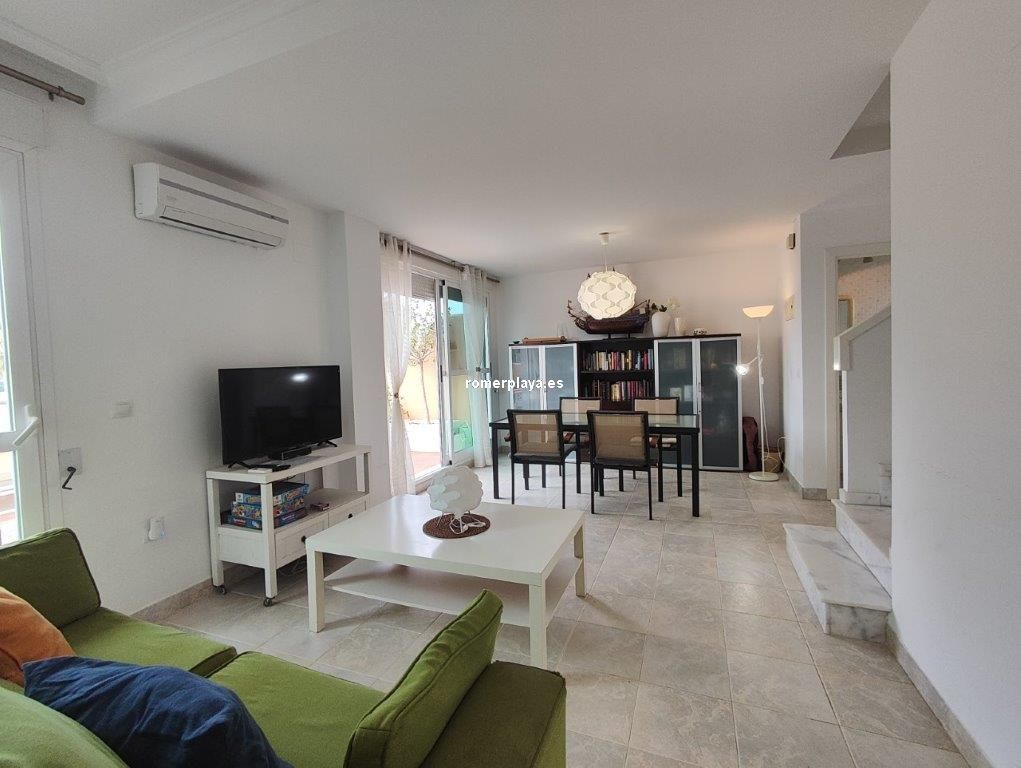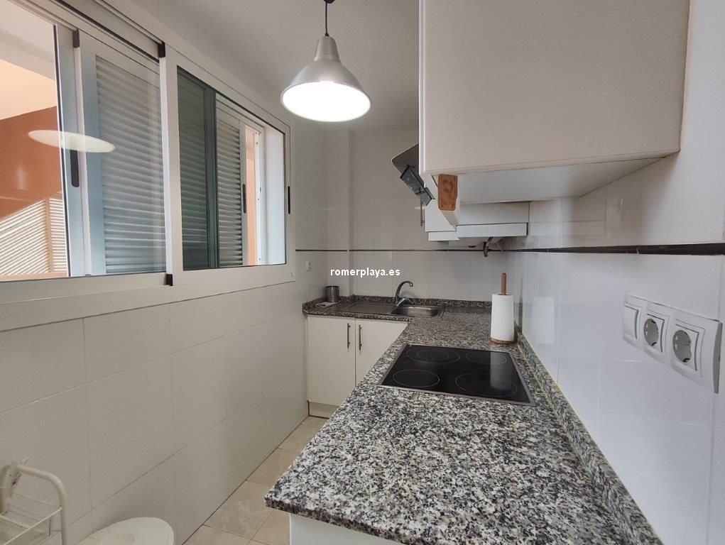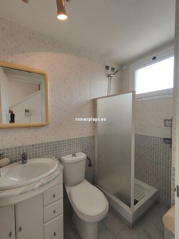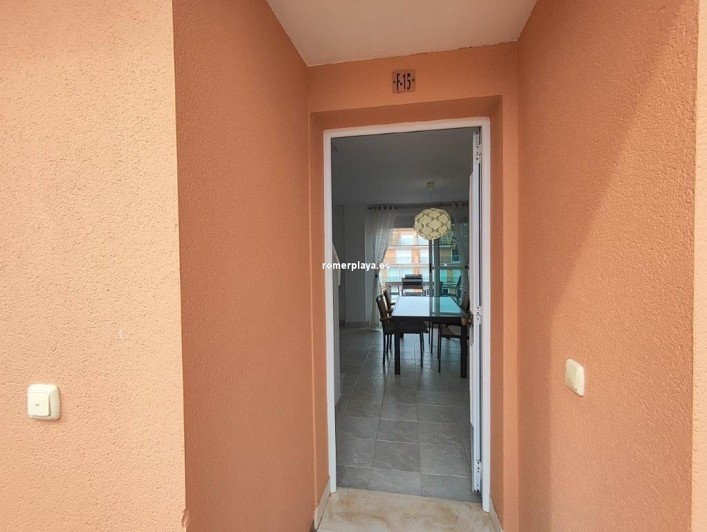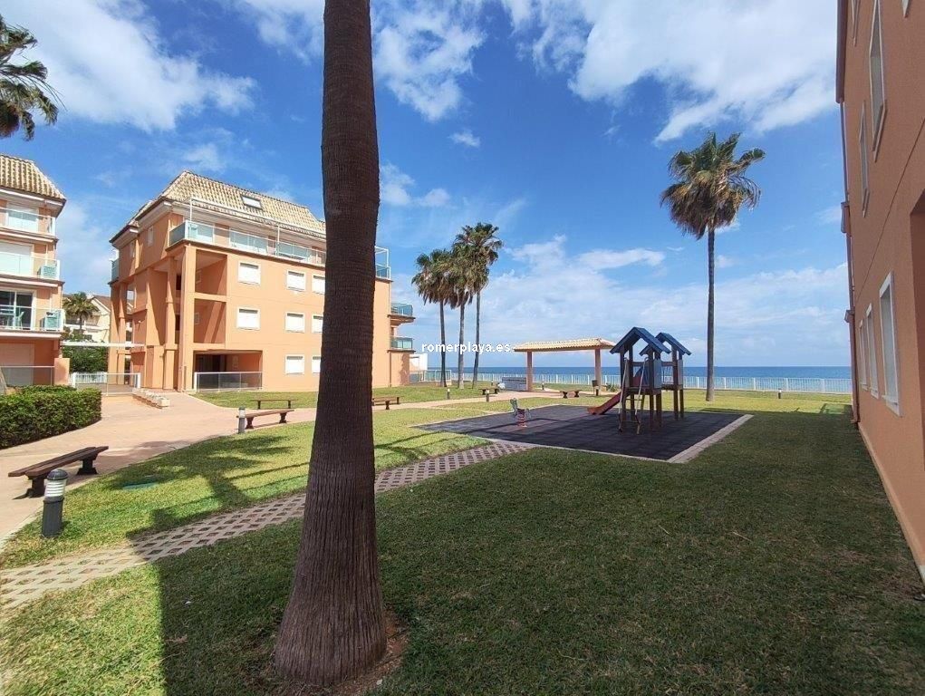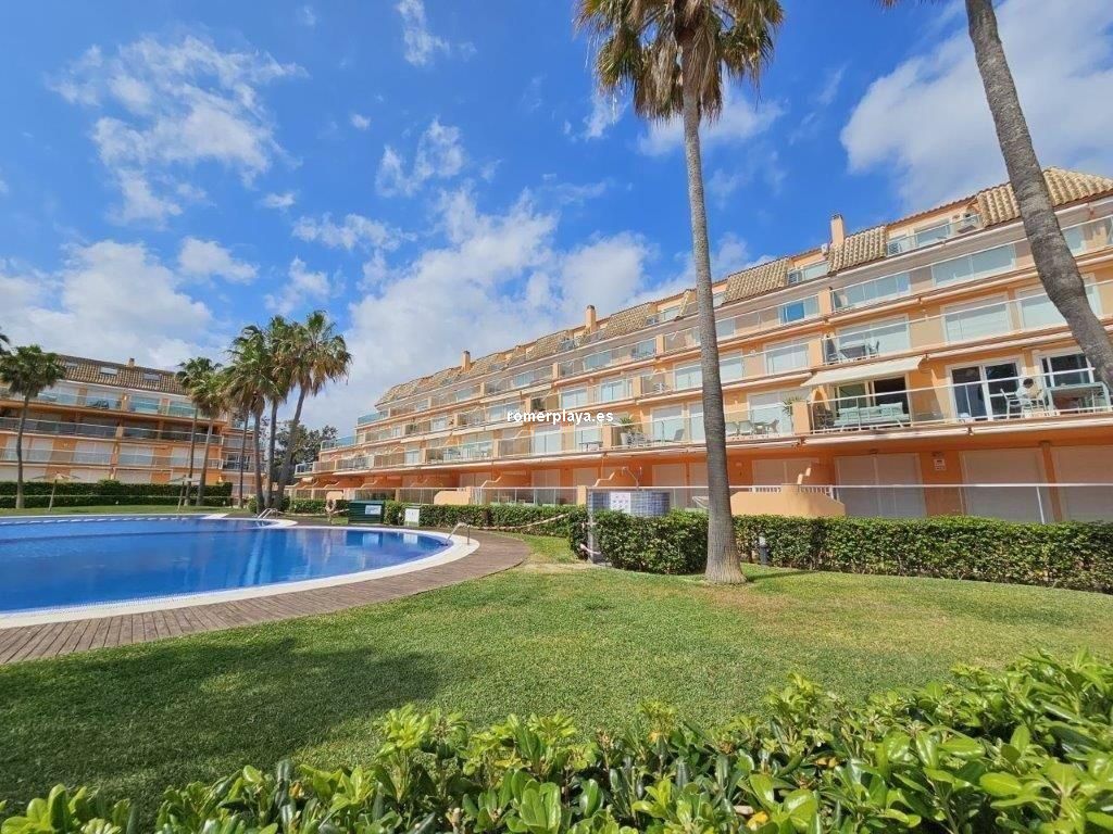 Ático- dúplex con fantásticas vistas al mar, en primera línea de playa, ubicado en el km 7,5 de las marinas con salida directa desde el complejo a la playa de arena fina y aguas cristalinas. La vivienda en 3ª planta y bajo cubierta, en la planta principal disponemos de un amplio salón comedor, desde al que se accede a una imponente terraza con toldos de unos 25 metros cuadrados, cocina independiente completamente equipada, aseo con plato de ducha y una habitación sencilla con literas . Por unas escaleras de marmol muy cómodas accedemos a la planta superior donde disponemos de dos amplios dormitorios dobles con armarios empotrados y dos terrazas, además de un espacioso cuarto de baño con bañera. Toda la vivienda dispone de Aire acondicionado frio calor, unas maravillosas vistas al mar y a la montaña. El residencial dispone de unas bonitas y cuidadas zonas comunes, donde hay una gran piscina con diferentes profundidades, zona infantil, pista de paddel. La vivienda dispone de una plaza de garaje subterránea de 15 metros y trastero de 10 metros cuadrados. Se accede directamente por el ascensor desde la planta de la vivienda al sótano. Este ático está en una zona muy valorada de las marinas, cerca de supermercados, restaurantes y parada de autobús. No deje de verlo.