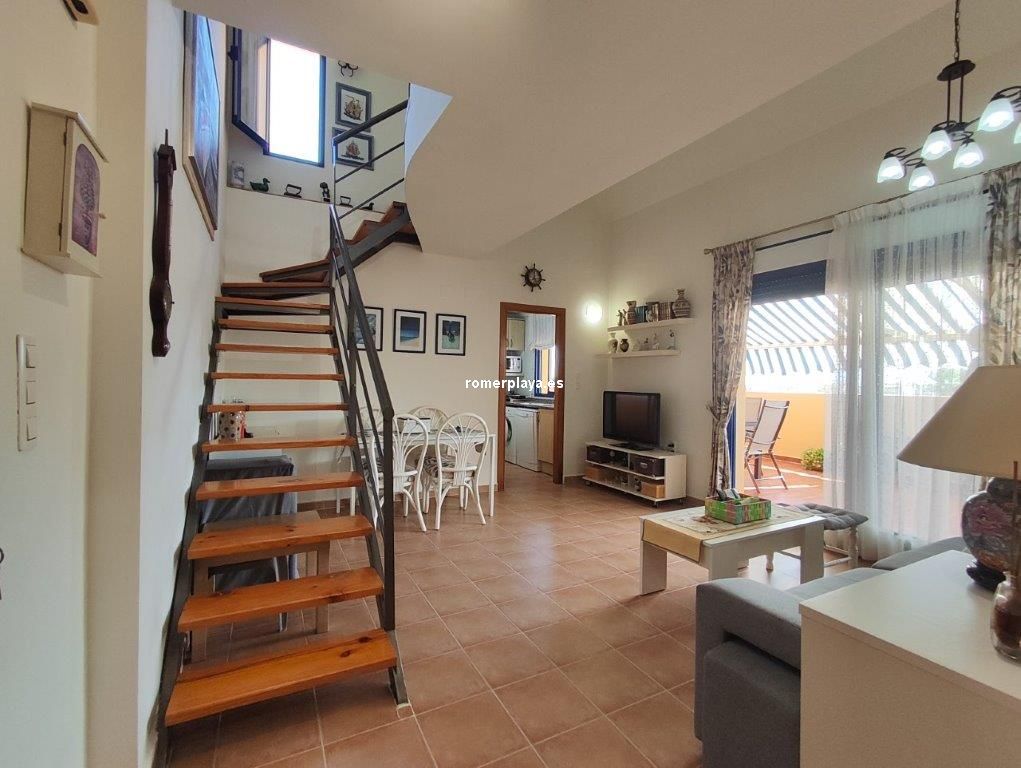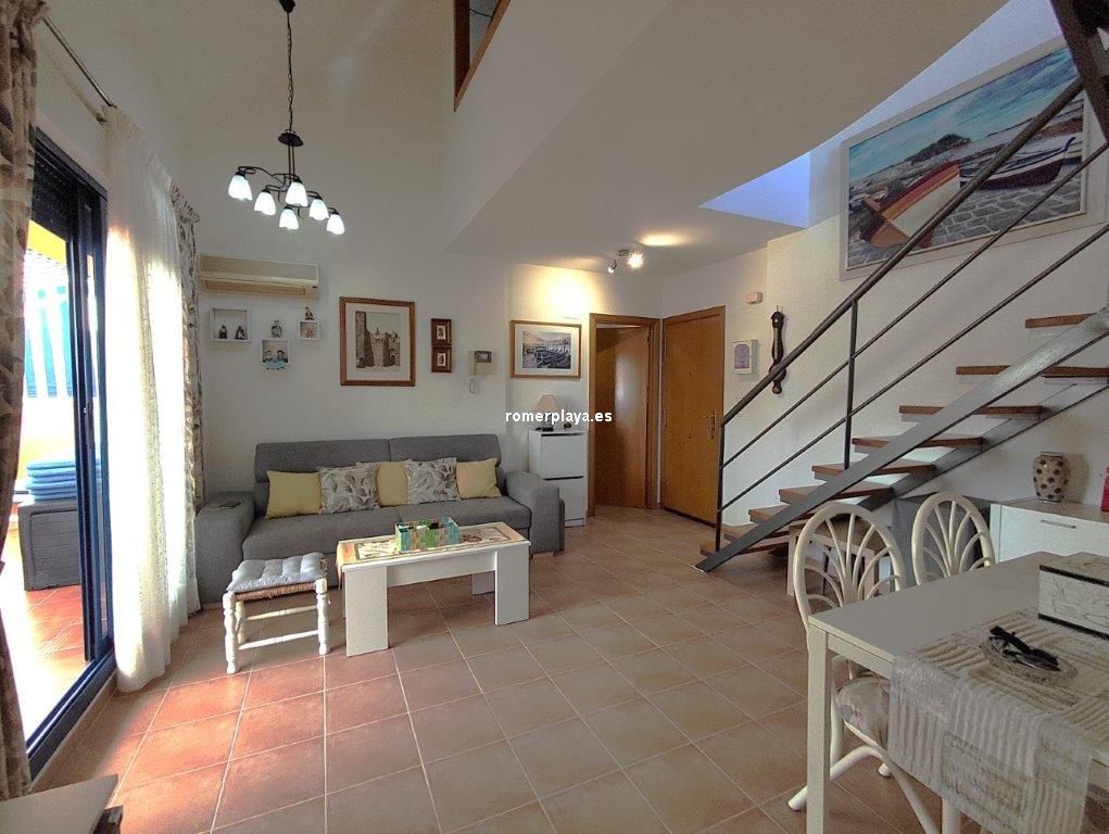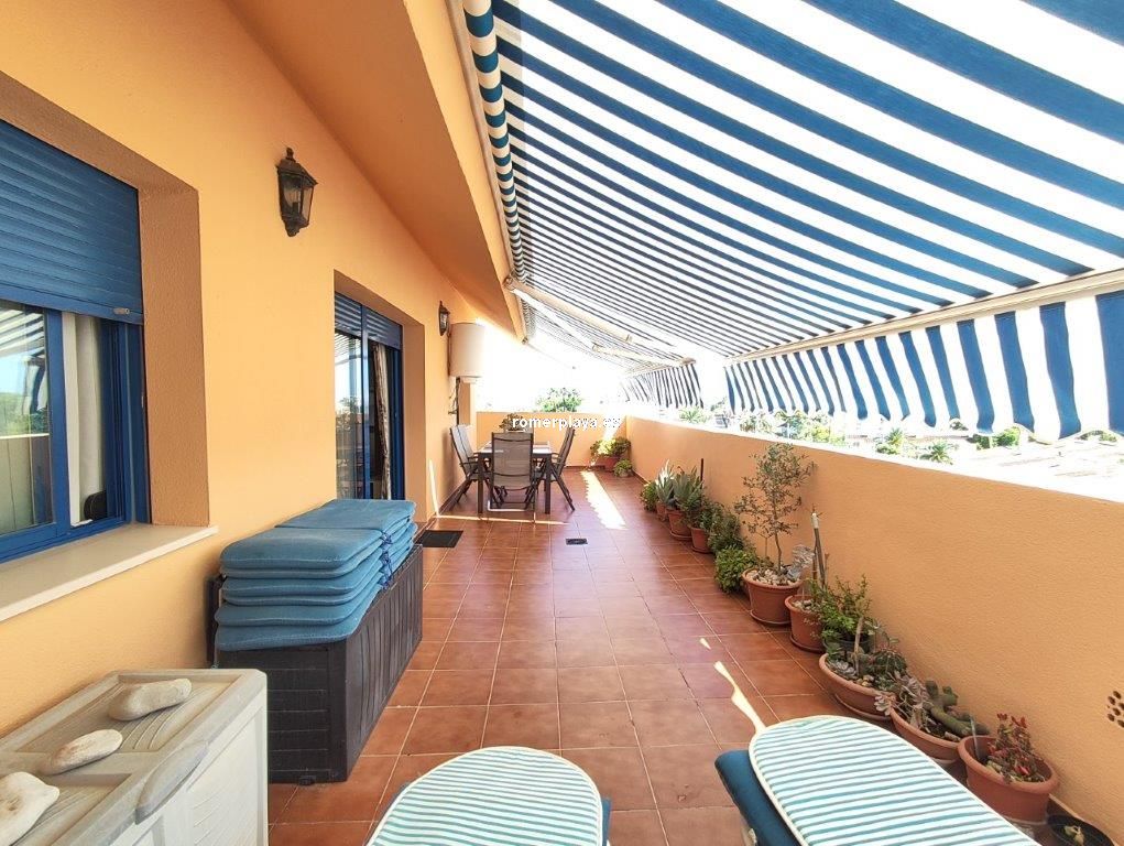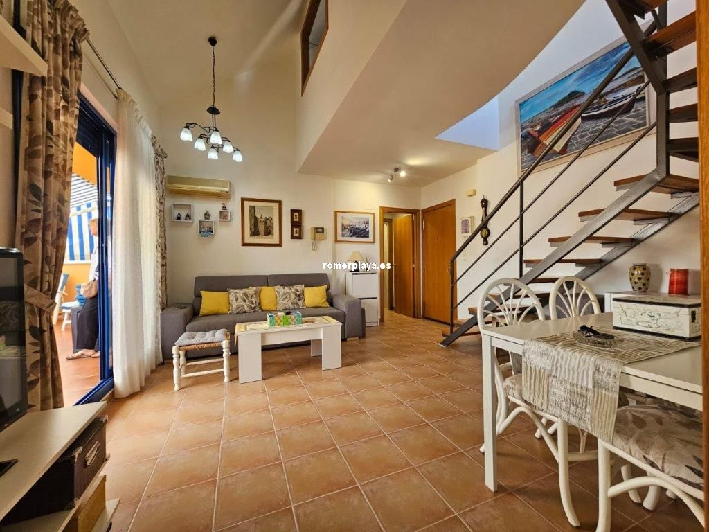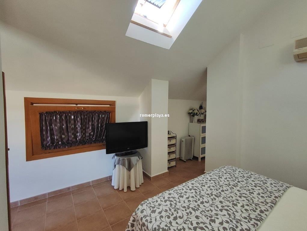 Bonito ático dúplex construido en 2004, en perfecto estado de uso y conservación. Con unas vistas 360 grados panorámicas de Denia, el Castillo, El Mar y el Montgo. La vivienda está distribuida en dos plantas, en la planta baja, disponemos de un amplio y luminoso salón comedor, cocina independiente completamente equipada, un dormitorio doble con armario empotrado y ventilador, y un baño con ducha. Desde el salón salimos a la impresionante y privada terraza de 36 metros con orientación este, con toldos, desde donde podemos disfrutar de las vistas. A través del salón comedor y por unas cómodas escaleras accedemos a la parte alta de la vivienda donde hay una gran habitación con dos generosos armarios empotrados y baño con bañera en suite. La vivienda dispone de Aire acondicionado frío calor, dispone de ascensor, acceso adaptado en todo el complejo. Incluido en el precio, dispone de una amplia plaza de parking con tejado para un vehículo. La urbanización cuenta con servicio de conserjería las 24 horas del día, además de dos piscinas (adultos y niños) baños y duchas, zonas de parking de bicicletas y una extensa zona ajardinada con arbolada y bancos. Situada a 1,5 Km de Denia y a 500 metros de la playa. A un paso de la zona de dotaciones deportivas de Denia ( campo de fútbol, trinquet, centro deportivo, piscinas cubiertas, spa, etc.). La playa es de arena fina donde podrás disfrutar de su agua cristalina y paseos por la orilla del mar. La zona cuenta con todo tipo de servicios todo el año, supermercados, restaurantes, etc.