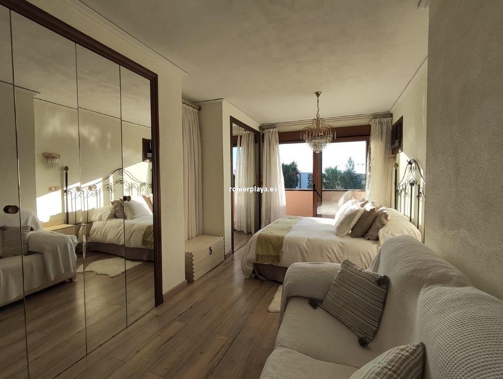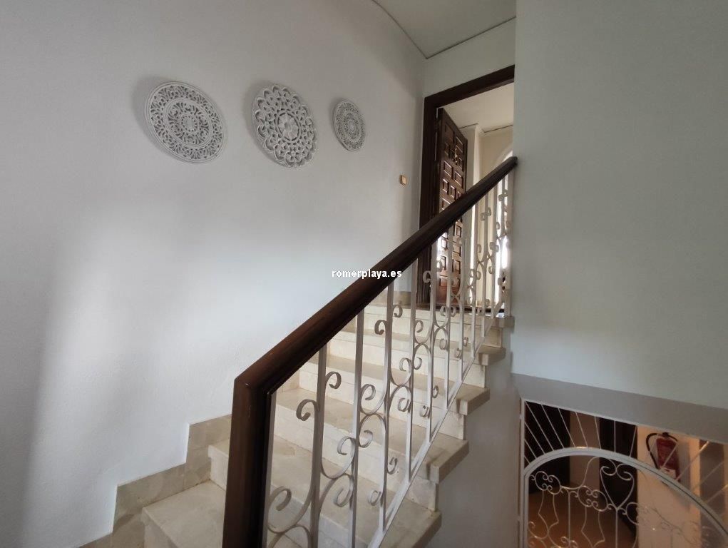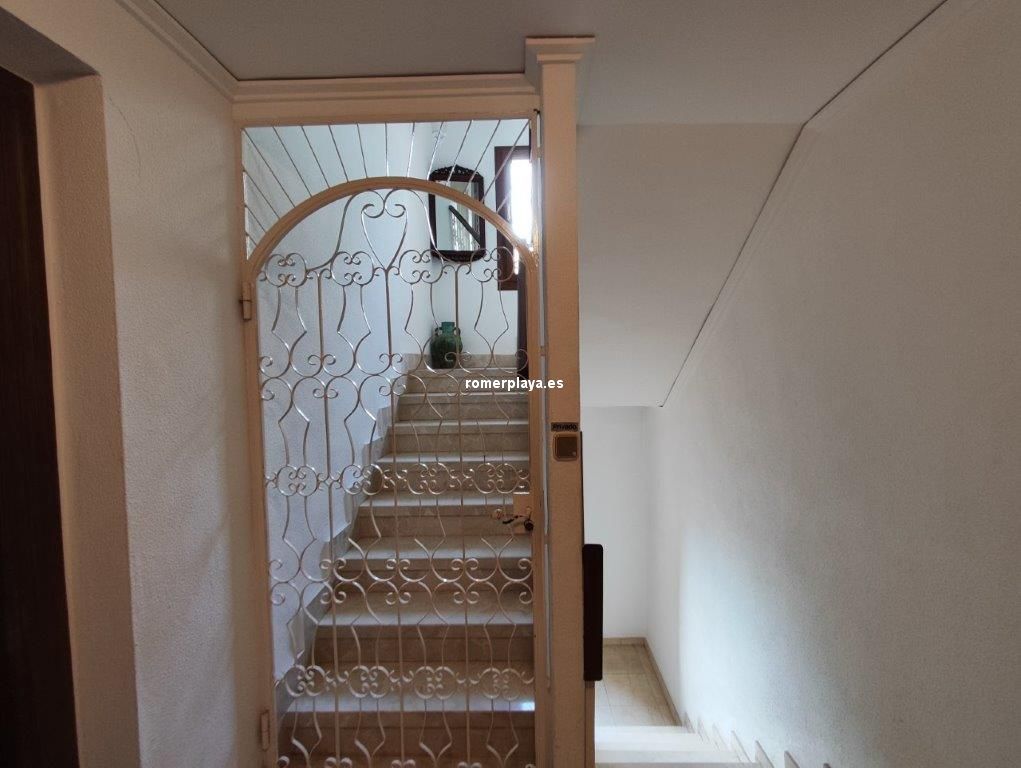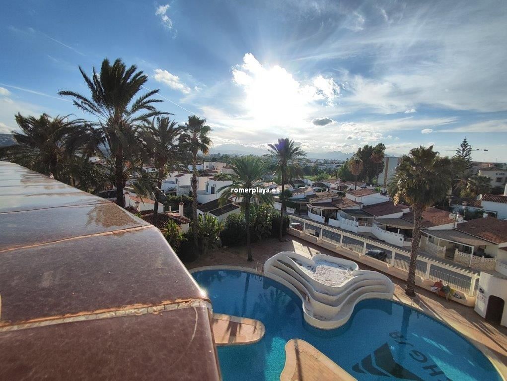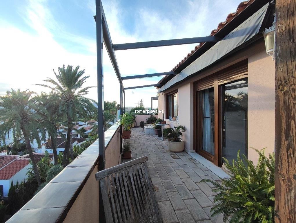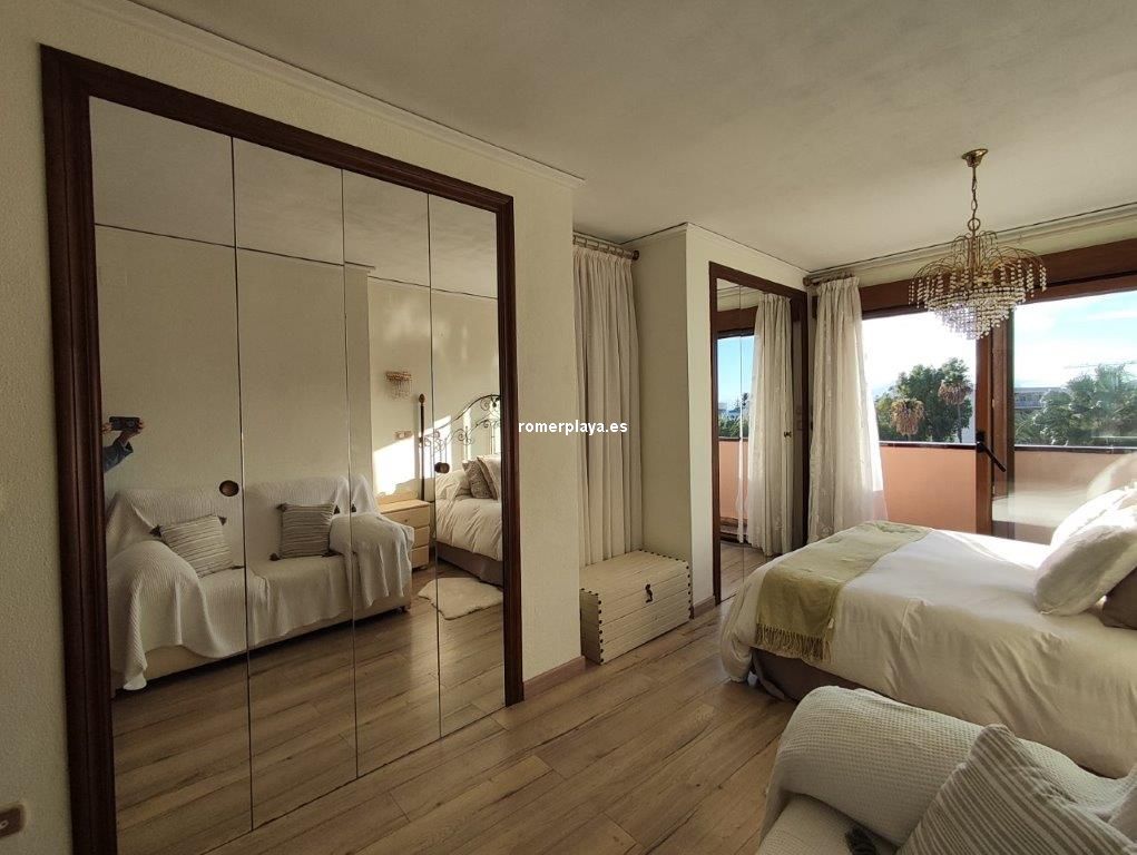 Ático en km 2,5 de las marinas a 100 metros de la playa, junto a supermercados y restaurantes, la vivienda en 3ª planta sin ascensor con 128m vivienda mas 54m de terrazas, está distribuida en dos habitaciones dobles con armarios empotrados y sus baños correspondientes en suitte , salón comedor con chimenea y cocina americana con salida a la gran terraza que da la vuelta a la casa, con lo que se puede entrar y salir desde el comedor y la cocina, ventanas de doble climalit y A/A F/C , la urbanización , piscina, jardín, parking comunitario.