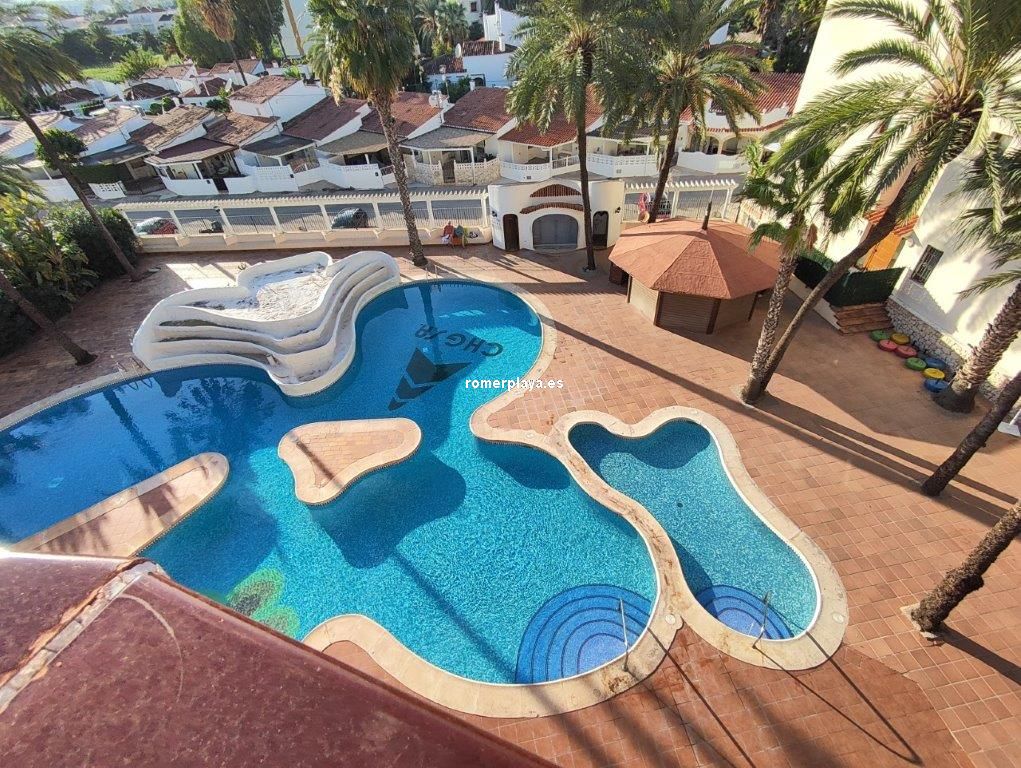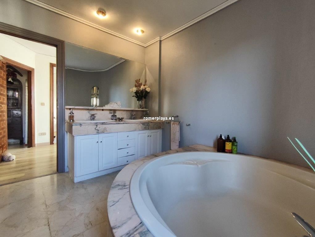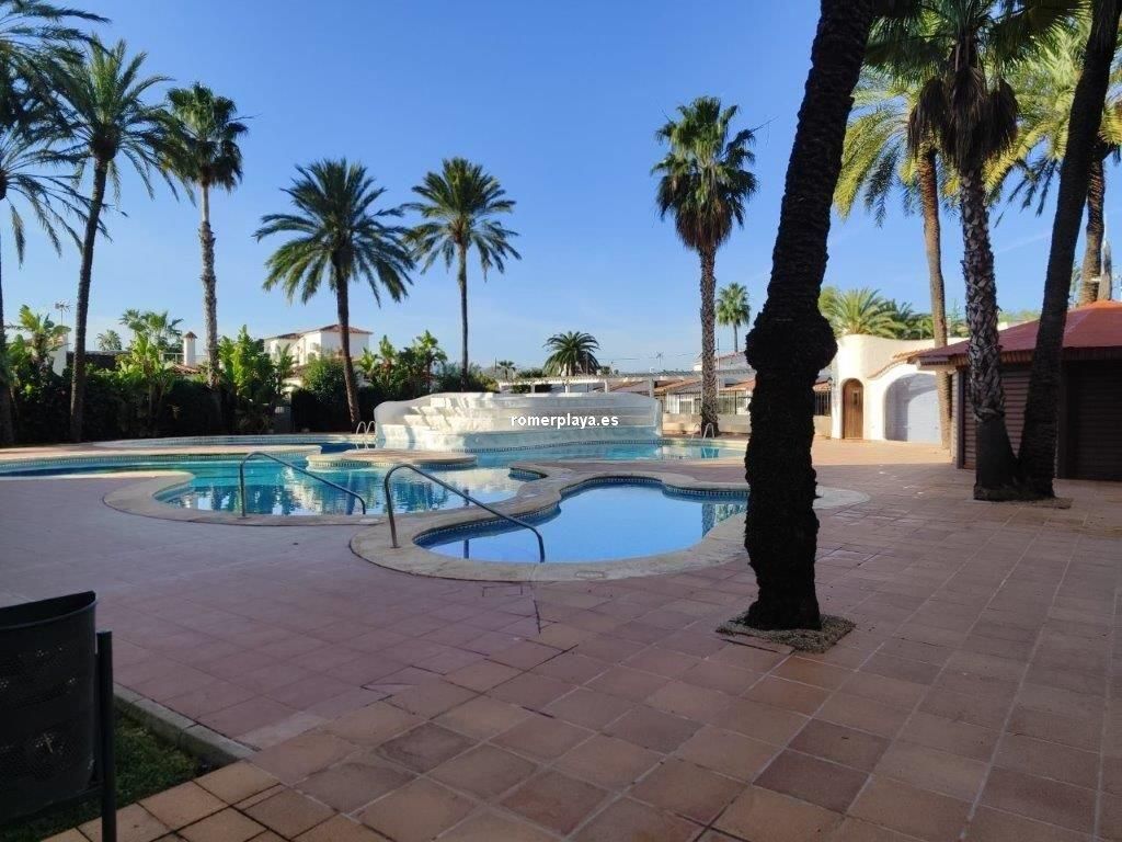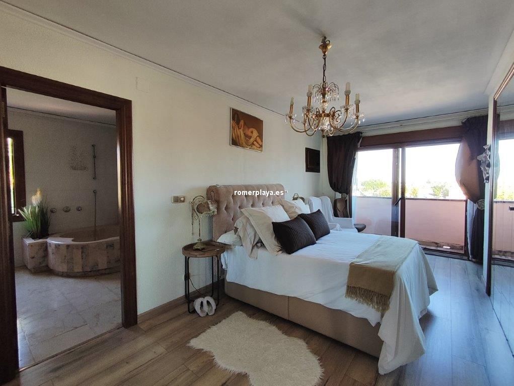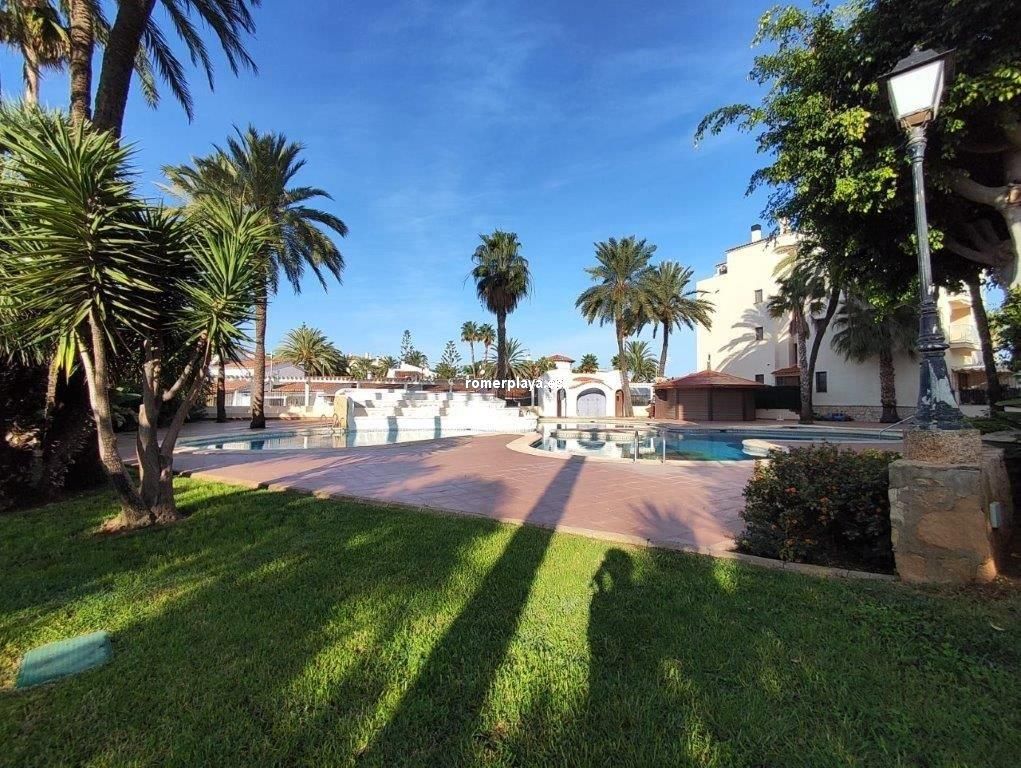 Ático en km 2,5 de las marinas a 100 metros de la playa, junto a supermercados y restaurantes, la vivienda en 3ª planta sin ascensor con 128m vivienda mas 54m de terrazas, está distribuida en dos habitaciones dobles con armarios empotrados y sus baños correspondientes en suitte , salón comedor con chimenea y cocina americana con salida a la gran terraza que da la vuelta a la casa, con lo que se puede entrar y salir desde el comedor y la cocina, ventanas de doble climalit y A/A F/C , la urbanización , piscina, jardín, parking comunitario.