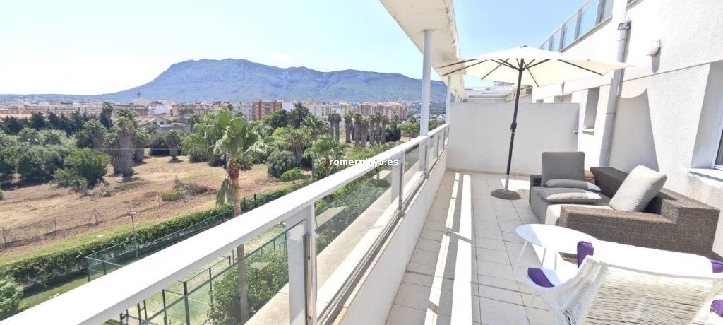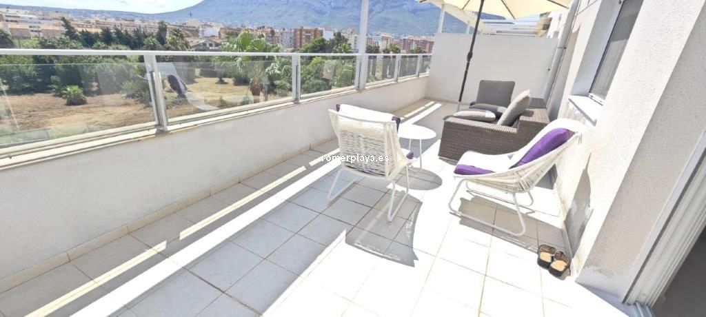 Ático con vistas ABIERTAS a Montaña, Castillo y Mar, ubicado en la encantadora ciudad de Denia. Vivienda con 1 dormitorio y ( con espacio para otra cama ) con 1 baño, 3 terrazas abiertas 2 de 25metros y 1 de 56metros. La vivienda viene completamente amueblada asi como la cocina totalmente equipada ademas tambien incluye una PLAZA DE GARAJE IMCLUIDO.- Es la opción ideal para quienes buscan comodidad y estilo de vida mediterráneo. Con un diseño moderno y funcional, cuenta con un espacio construido de 66 m² que se adapta perfectamente a las necesidades de una vida contemporánea. Dispone de una acogedora habitación y un baño completo con bañera, ideal para disfrutar de la tranquilidad y el confort. La cocina abierta permite una interacción fluida entre los espacios, perfecta para aquellos que valoran la socialización y la convivencia. Desde la cocina, se puede acceder de manera sencilla a las áreas de descanso, creando un ambiente cálido y acogedor. La propiedad cuenta con aire acondicionado con sistema frío/calor y calefacción por conductos, garantizando un clima agradable durante todo el año. Los ventanales de doble acristalamiento no solo aportan luz natural al interior, sino que también contribuyen a la eficiencia energética del hogar. El estado de conservación es excelente, lo que permite disfrutar de un espacio listo para habitar. Además cuenta con 3 terrazas abiertas con vistas a la piscina, al mar y a la montaña.