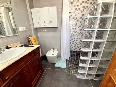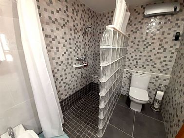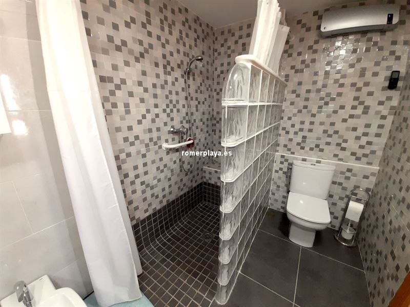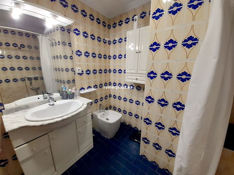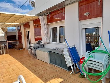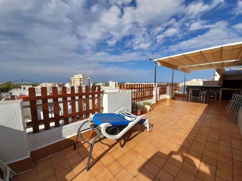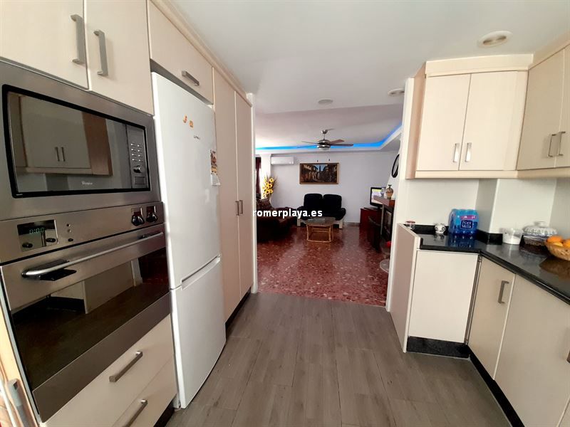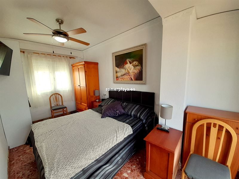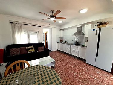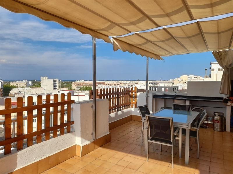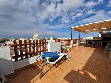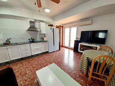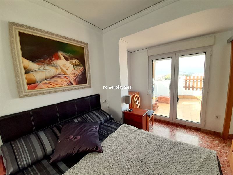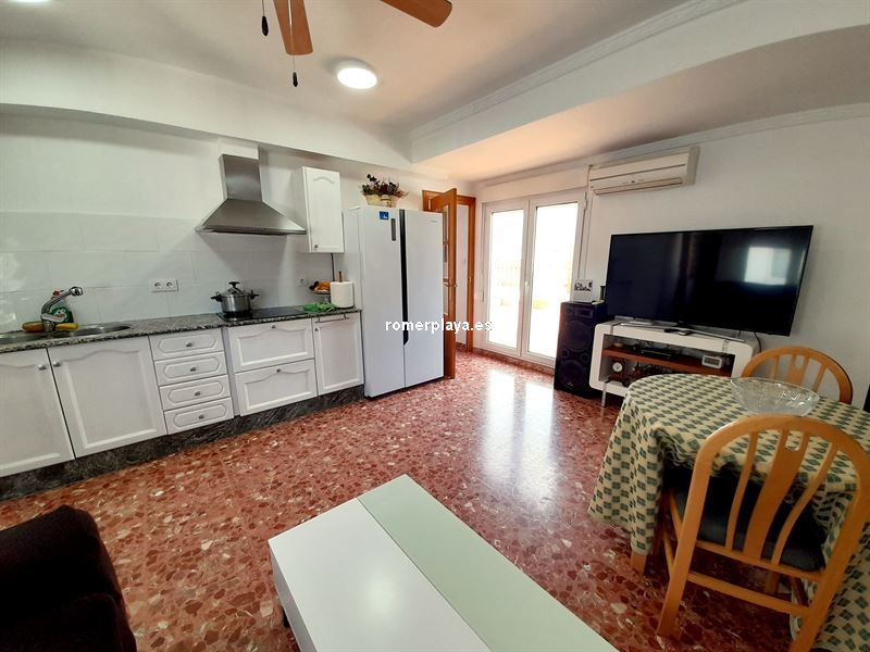 Una de las viviendas se distribuye en 2 habitaciones (una de ellas con salida a terraza), baño completo con plato de ducha, cocina abierta al salón comedor y acceso a terraza 50 metros con toldos, fregadero, paellero y vistas panorámicas al mar y a la montaña.