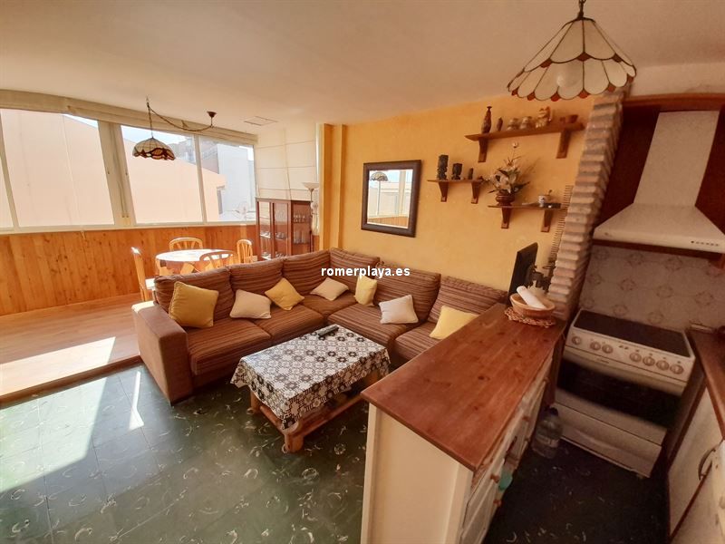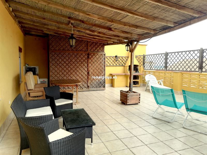 La vivienda se distribuye en 3 habitaciones, baño con plato de ducha, cocina americana, salón comedor y terraza 70 metros con pérgola y BBQ.