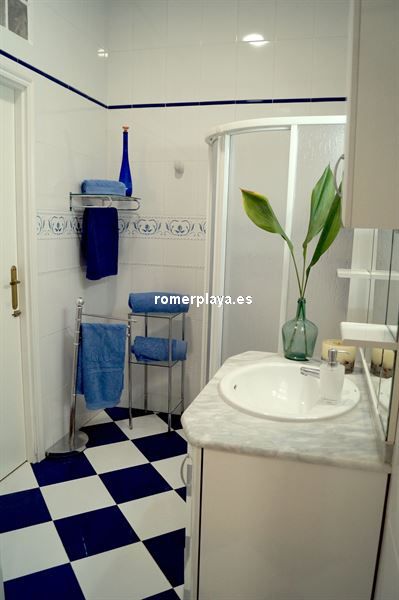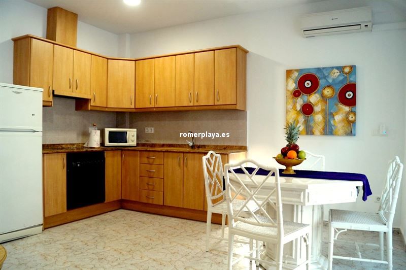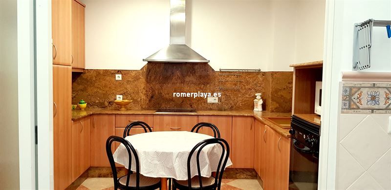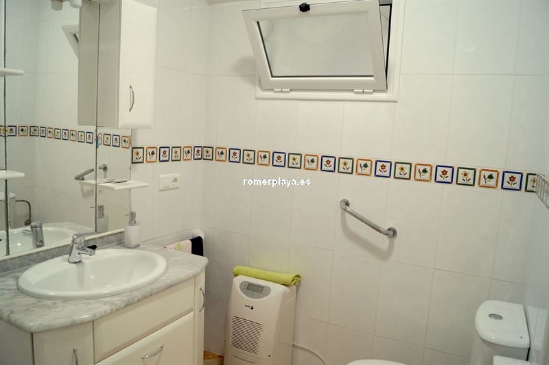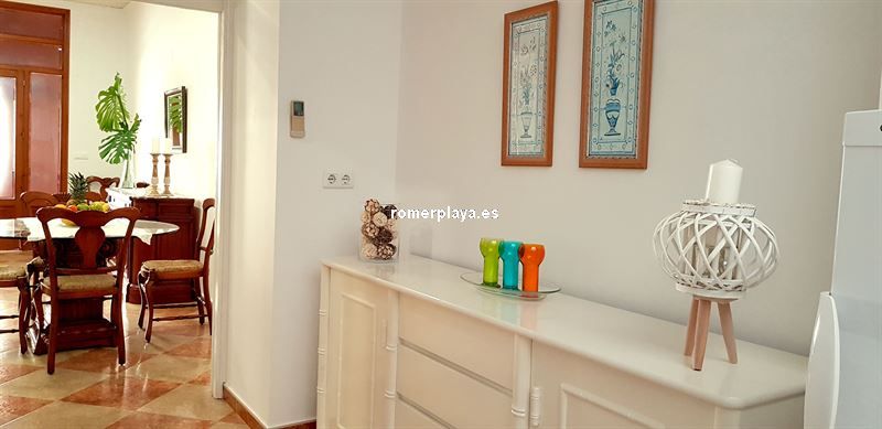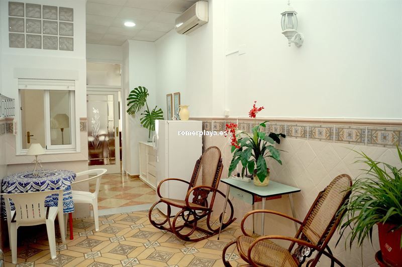 Planta baja: casa principal de 120 mts, 2 dormitorios, 2 baños, cocina, salón comedor, patio interior con cristalera corredera en el techo, 2 aires acondicionados Split frio y calor, puerta de entrada de madera seguido de cristalera con madera para acceder a la casa (cancela), ventanas interiores de aluminio. Vivienda con entrada independiente.
