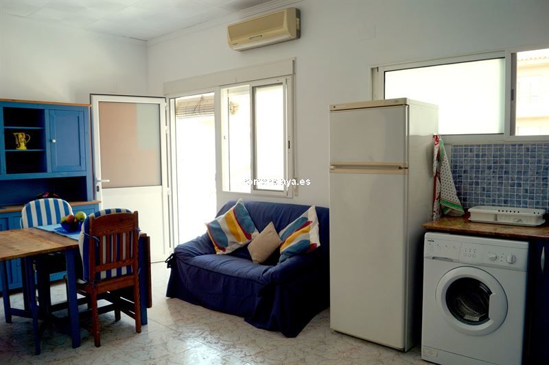 Piso 1ª planta, 80 mts aprox. 2 dormitorios cada uno con balcón con puertas de madera, 1 baño, salón comedor con cocina americana, patio con cristalera de aluminio, lavadero independiente en el patio. 1 aire acondicionado frío y calor.