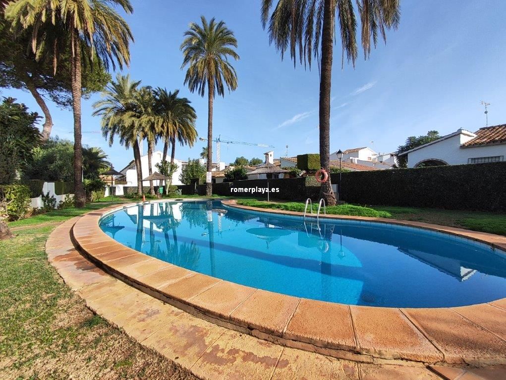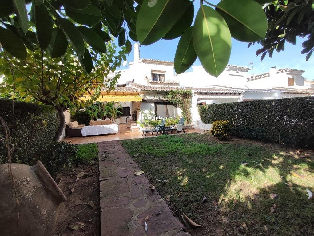 Chalet dúplex pareado con 170 m incluido el garaje cerrado y parcela de 256 m. Dispone de tres habitaciones, dos años, cocina independiente, salón comedor con chimenea, dos terrazas, una en parte delantera y otra trasera con jardín y salida directa a las zonas comunes. Garaje cerrado dos plazas. Sen encuentra en el Km. 5 de Las Marinas, en primera línea de playa.