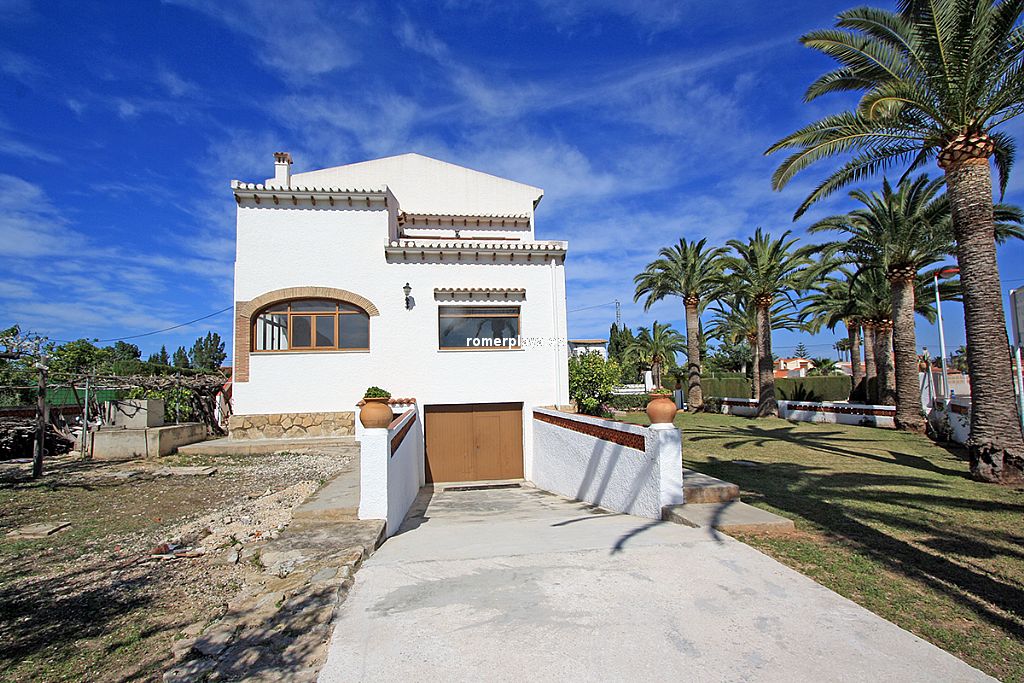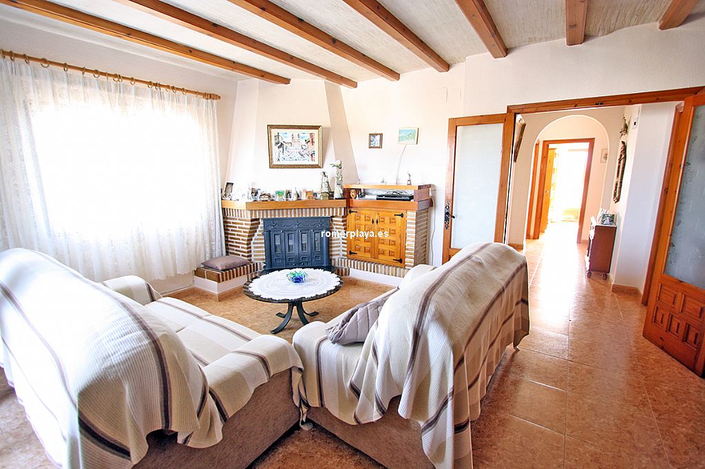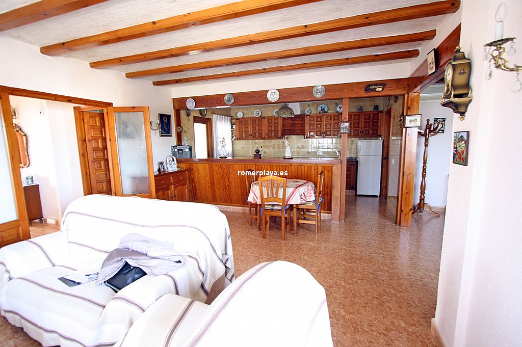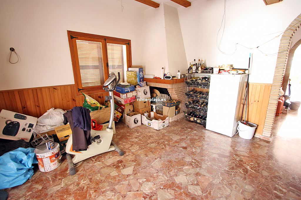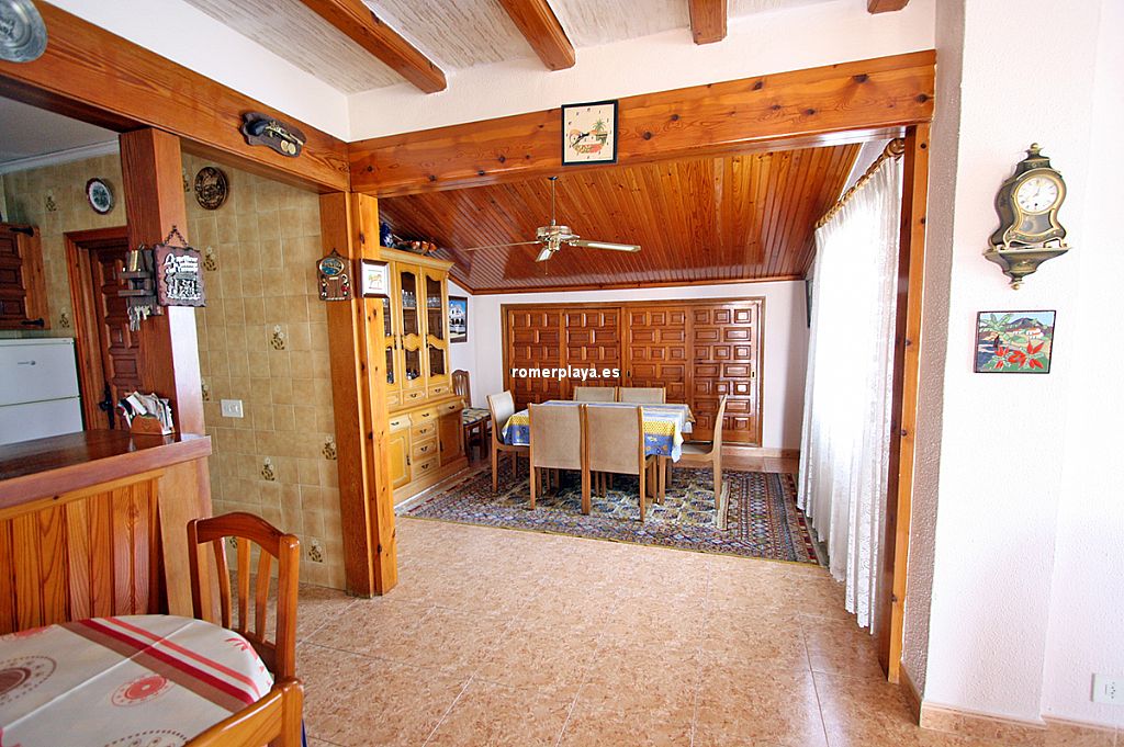 Chalet a la venta en Els Poblets de estilo rústico mediterráneo. La vivienda está construida sobre una parcela plana de 1.200 M2 totalmente vallada, se compone de dos plantas, amplio sótano destinado a garaje con espacio para varios vehículos y con dos accesos. La planta alta se distribuye en hall, 3 dormitorios, 2 de ellos con salida a una amplia terraza con bonitas vistas a la montaña. Todos los dormitorios con armarios empotrados, 1 cuarto de baño, 1 aseo, salón con chimenea, comedor, cocina abierta americana totalmente equipada, despensa y lavadero. La planta baja a la que se desciende por escalera interior se encuentra diáfana con dos aseos , 1 dormitorio con salida a una terraza con bonitas vistas, amplia cocina (ya que estaba asignada para ser un restaurante), chimenea. Tiene salida a dos amplios porches a los cuales también se acceden por el exterior por unas escaleras. En la parte exterior se encuentra la cocina de verano con horno de leña, un baño exterior con ducha, un pequeño estudio con 1 dormitorio y una cocina y otro dormitorio aparte. Dispone también de amplia bodega. El jardín con césped, varios árboles y plantas autóctonas cuenta con muchas posibilidades. Ubicación junto a todos los servicios , al borde del casco urbano y a sólo 1.5 km de la playa.
