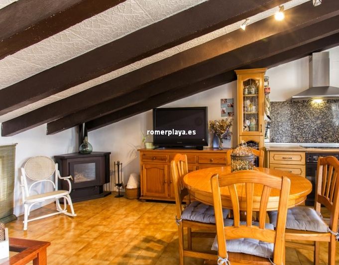 Existen en ella un recibidor, un salón-comedor con chimenea, dos dormitorios con baño en suite, un tercer dormitorio doble, un tercer baño, una cocina y una despensa. Además, la casa dispone de un apartamento en altillo de más de 40 m² con acceso exterior. Este espacio, que puede ser destinado a acoger a familiares o amigos, ofrece un salón-comedor con cocina integrada y chimenea, un dormitorio con baño en suite y una terraza abierta.