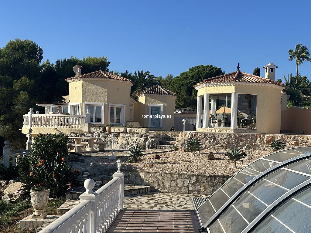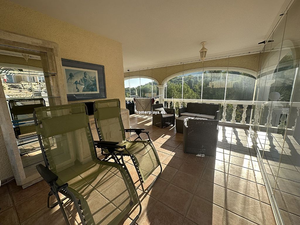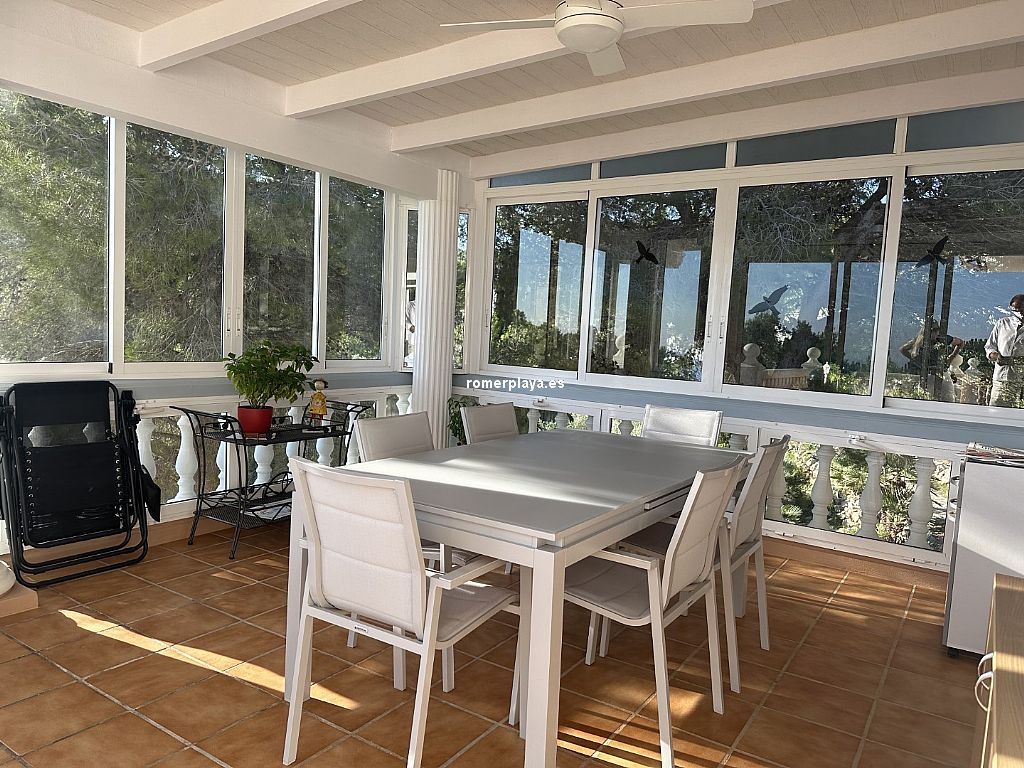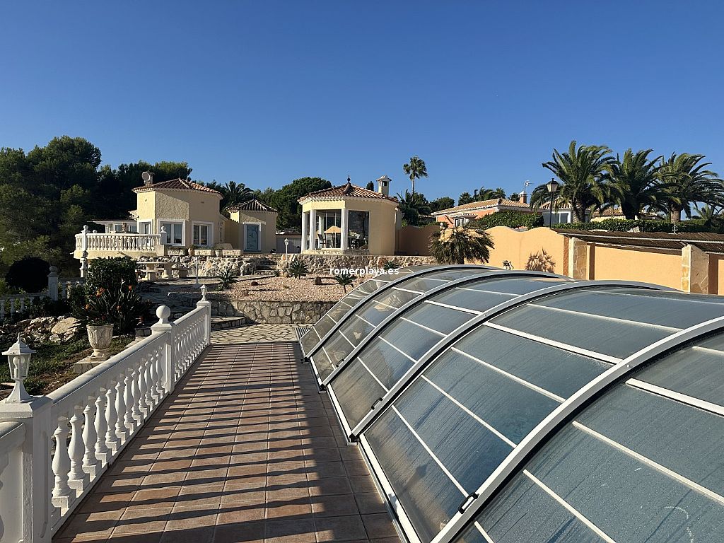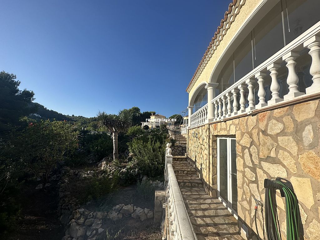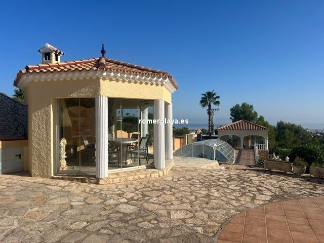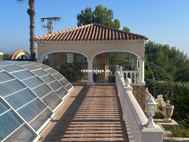 Villa en venta en Denia con vistas panorámicas. Esta propiedad, de aproximadamente 2.000 m² en una ubicación soleada con vistas a la montaña y al mar, ofrece todo lo necesario. La casa ofrece 3 dormitorios, 3 baños, 1 aseo, salón con chimenea de aire acondicionado, cocina americana independiente, una amplia entrada, un invernadero, calefacción por suelo radiante con bomba de calor y aire acondicionado en toda la casa. También dispone de una caseta de barbacoa y zonas de estar al aire libre. Un garaje, una cochera y varias plazas de aparcamiento en el patio. La amplia zona de piscina consta de una piscina de 5 x 10 m con cubierta interior, ducha exterior, caseta de piscina con sauna, ducha y aseo. Trasteros en el sótano. También opcio de una parcela edificable independiente de aproximadamente 1.000 m². ¡Contáctenos para más información o para concertar una visita!