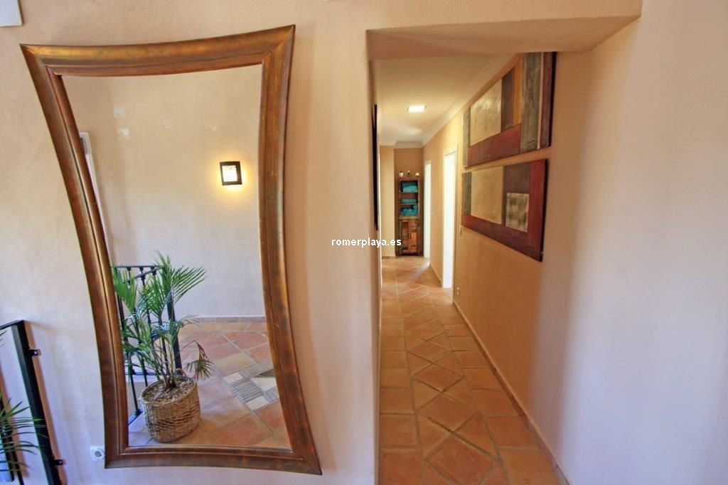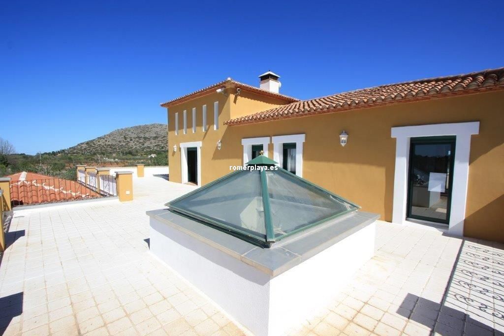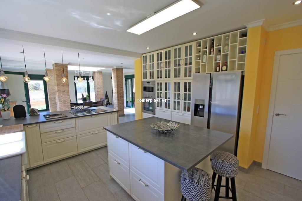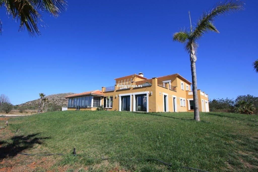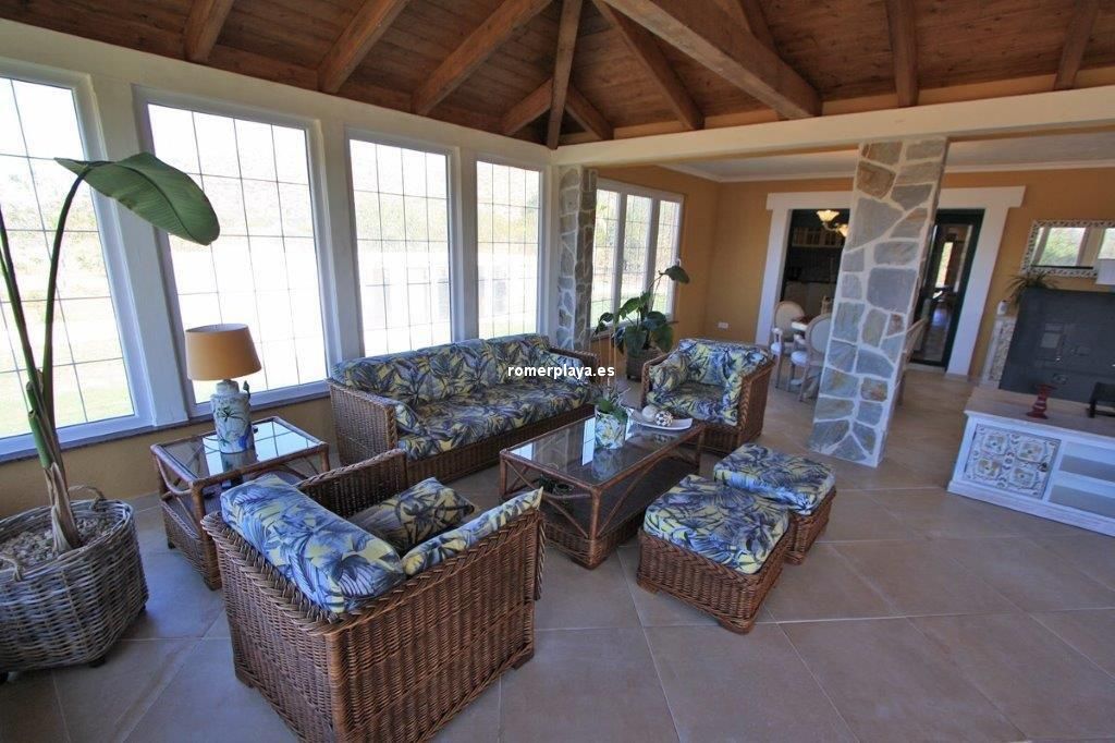 A la venta esta impresionante Villa-Mansión en el término municipal de Pedreguer pero que en realidad está mucho más cerca de La Jara - Dénia. Parcela rústica de más de 8.000 m2 completamente vallados con una vivienda en dos plantas con la siguiente distribución: Hall de entrada junto al primer salón con chimenea, 1 aseo de cortesía, cocina abierta con despensa y lavadero que conecta con el comedor con cúpula - tragaluz cenital, salida a una amplia terraza completamente acristalada donde se ha acondicionado otro comedor y otro salón/sala de estar. Por escalera interior de mármol ascendemos al dormitorio master con baño de hidromasaje ensuite incorporado, balcón interior con vestidor además de salida a una amplia terraza descubierta con vistas panorámicas a las montañas. En esta misma planta existen otros 3 dormitorios todos con armarios y salida a la misma terraza antes mencionada y otro cuarto de baño completo con ducha y bañera de hidromasaje. A señalar que en la planta baja, en el ala este y oeste existen 2 estudios independientes cada uno con 1 dormitorio, 1 baño y 1 cocina independientes. Acabados con los mejores materiales: Suelo de barro, gres, mármol, madera, ventanas de aluminio con doble cristal y persianas eléctricas, aire acondicionado frío-calor individual, cocinas completamente equipadas etc... La propiedad dispone de amplias zonas verdes, carpot cubierto para varios vehículos y está orientado a los 4 puntos cardinales sin problemas de sombras, siempre soleado y con la tranquilidad de vivir en el campo sin ruido alguno. Zona agricola a escasos 7 km de Dénia y sus playas o a 5 km del centro comercial El Portal de La Marina junto a la autopista A-7.