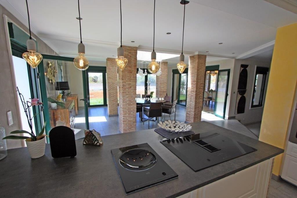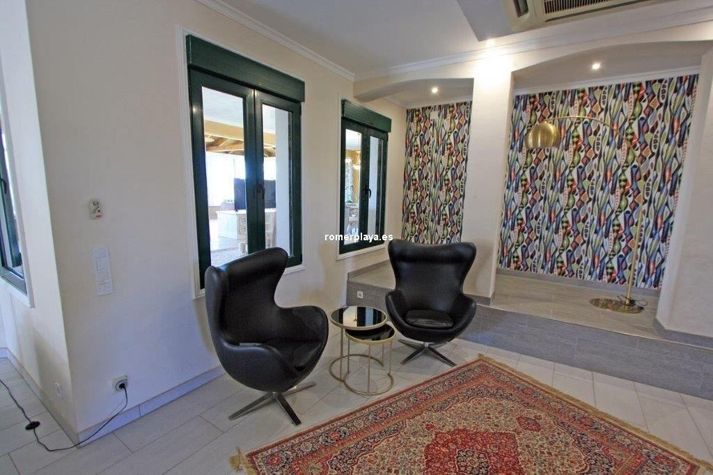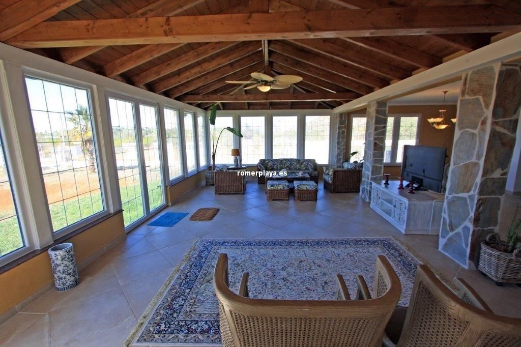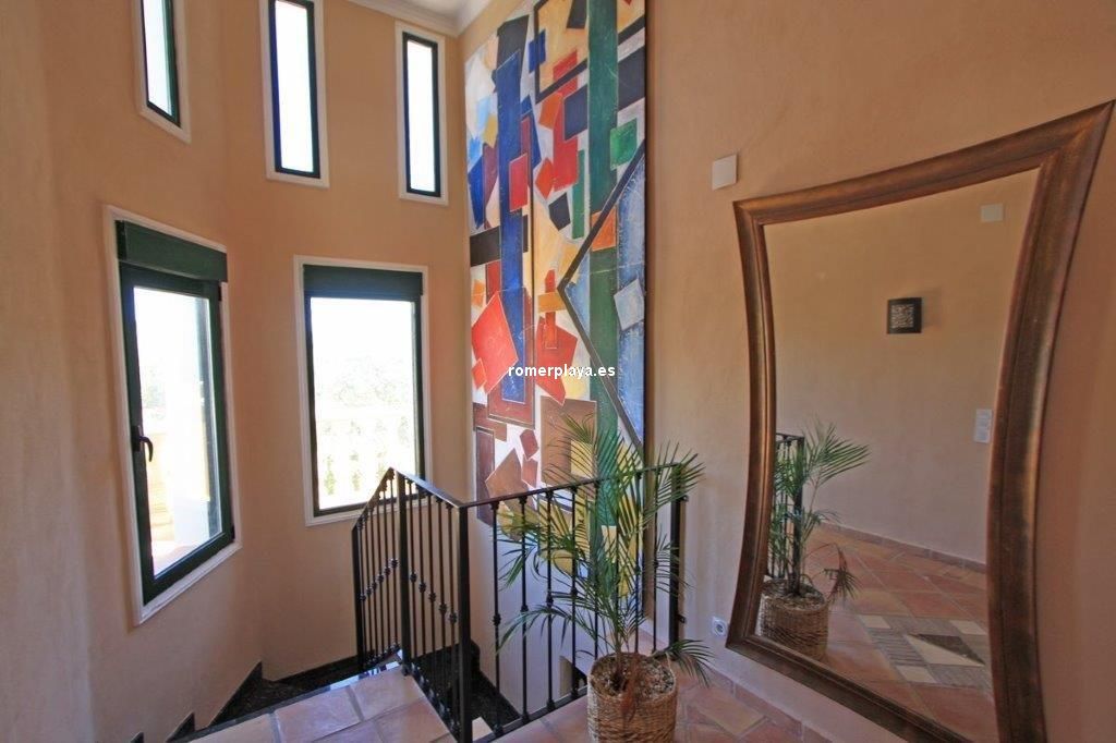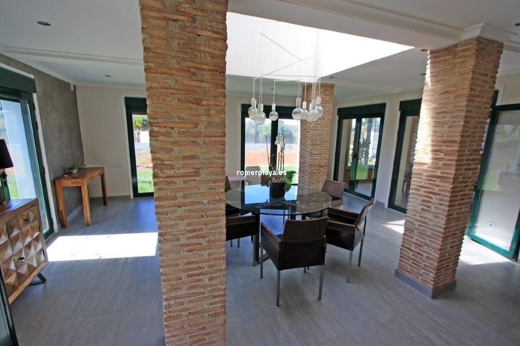 A la venta esta impresionante Villa-Mansión en el término municipal de Pedreguer pero que en realidad está mucho más cerca de La Jara - Dénia. Parcela rústica de más de 8.000 m2 completamente vallados con una vivienda en dos plantas con la siguiente distribución: Hall de entrada junto al primer salón con chimenea, 1 aseo de cortesía, cocina abierta con despensa y lavadero que conecta con el comedor con cúpula - tragaluz cenital, salida a una amplia terraza completamente acristalada donde se ha acondicionado otro comedor y otro salón/sala de estar. Por escalera interior de mármol ascendemos al dormitorio master con baño de hidromasaje ensuite incorporado, balcón interior con vestidor además de salida a una amplia terraza descubierta con vistas panorámicas a las montañas. En esta misma planta existen otros 3 dormitorios todos con armarios y salida a la misma terraza antes mencionada y otro cuarto de baño completo con ducha y bañera de hidromasaje. A señalar que en la planta baja, en el ala este y oeste existen 2 estudios independientes cada uno con 1 dormitorio, 1 baño y 1 cocina independientes. Acabados con los mejores materiales: Suelo de barro, gres, mármol, madera, ventanas de aluminio con doble cristal y persianas eléctricas, aire acondicionado frío-calor individual, cocinas completamente equipadas etc... La propiedad dispone de amplias zonas verdes, carpot cubierto para varios vehículos y está orientado a los 4 puntos cardinales sin problemas de sombras, siempre soleado y con la tranquilidad de vivir en el campo sin ruido alguno. Zona agricola a escasos 7 km de Dénia y sus playas o a 5 km del centro comercial El Portal de La Marina junto a la autopista A-7.